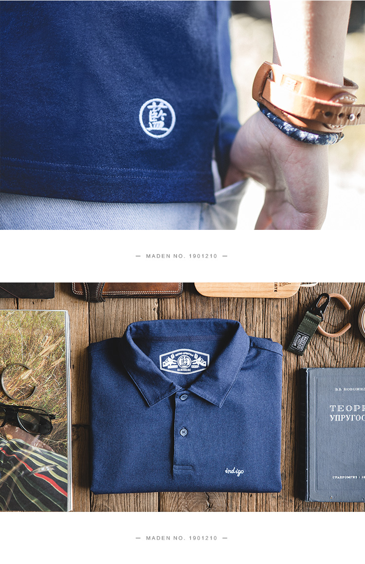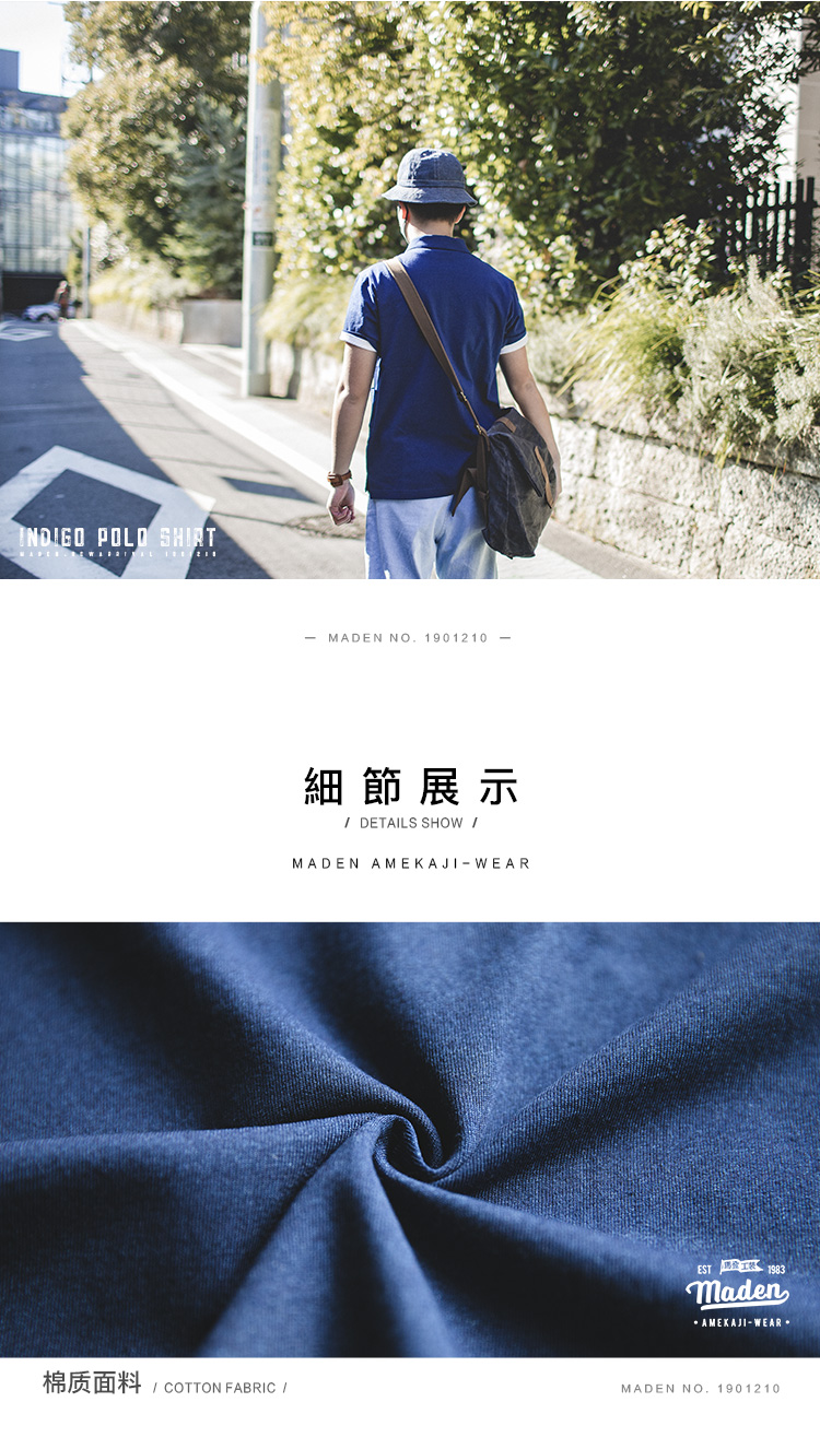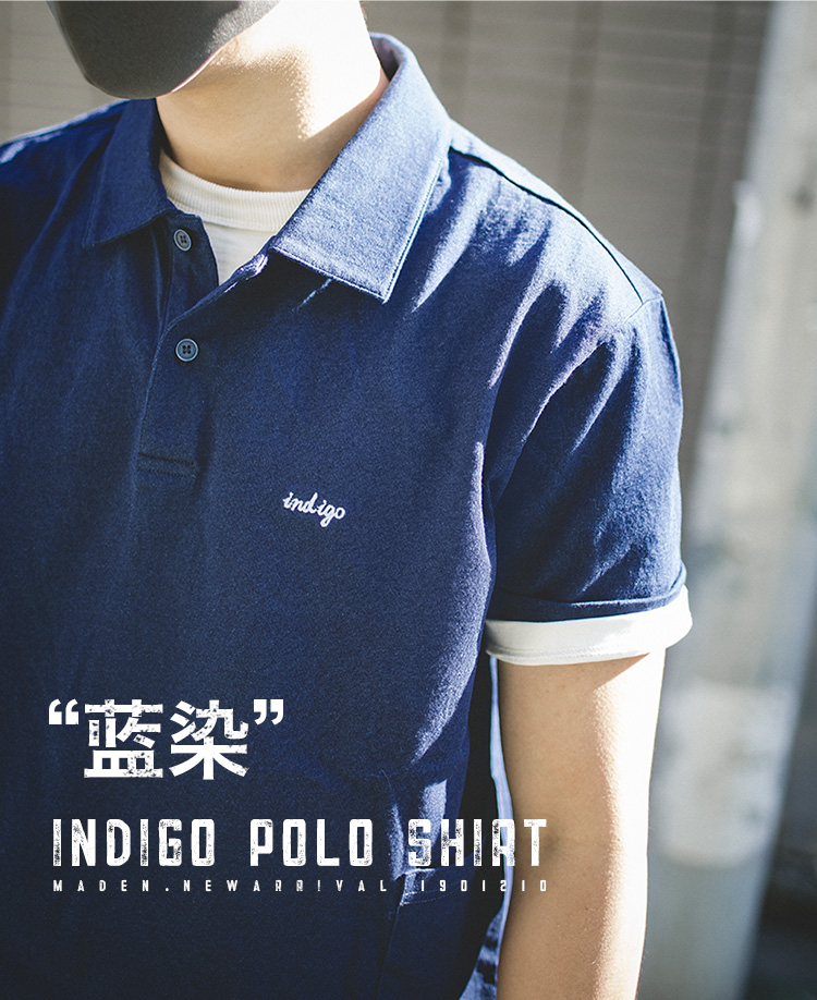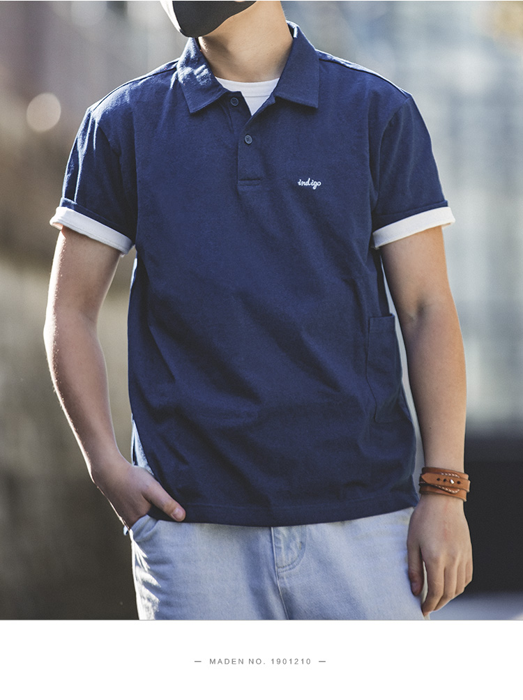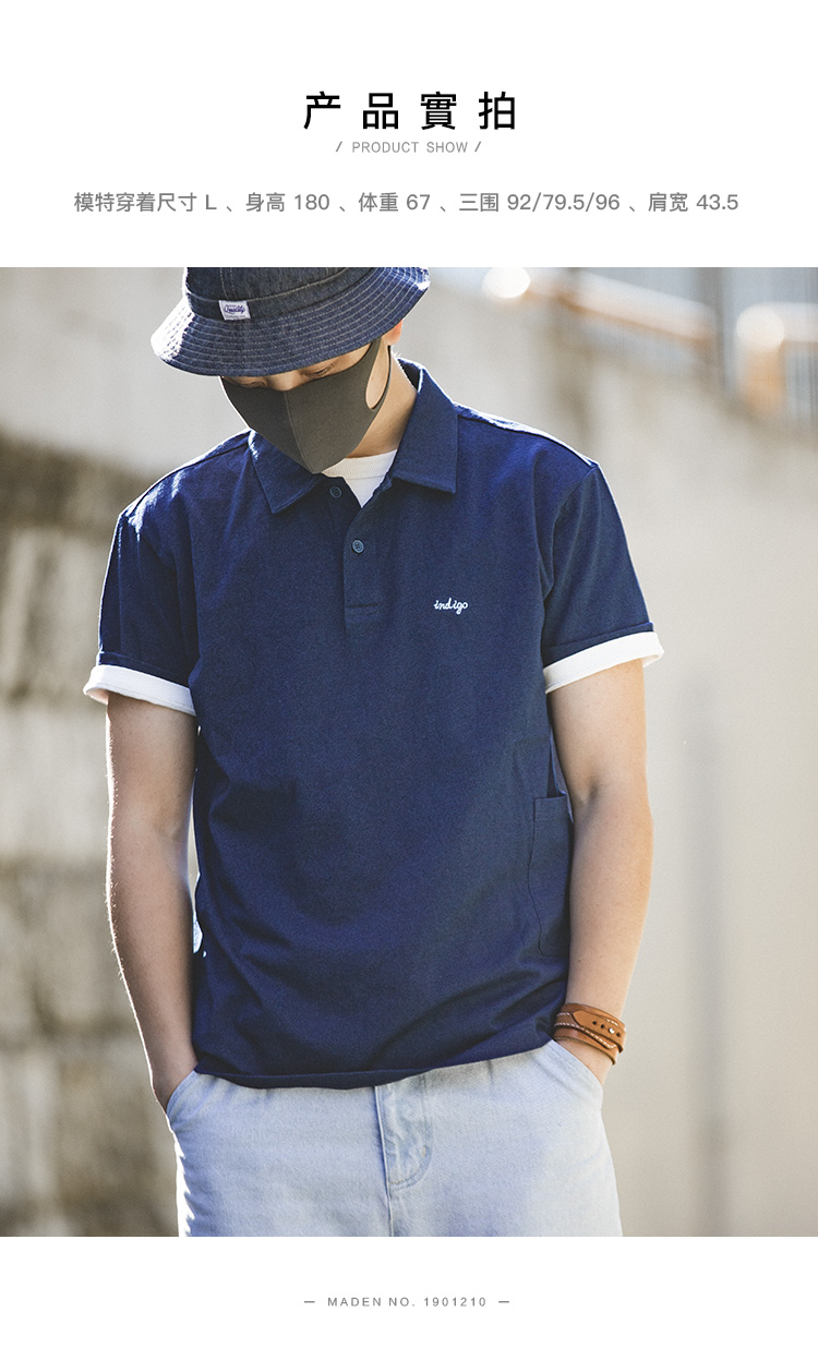 工装优选 美式复古蓝染翻领POLO衫T恤克莱因蓝短袖纯棉打底衫男夏