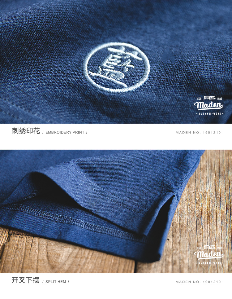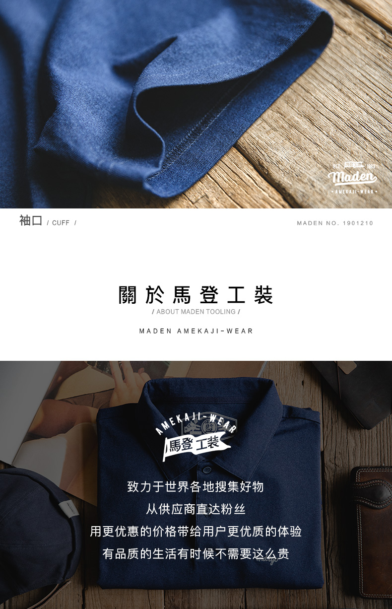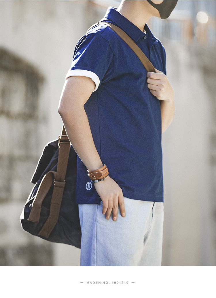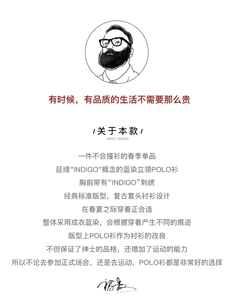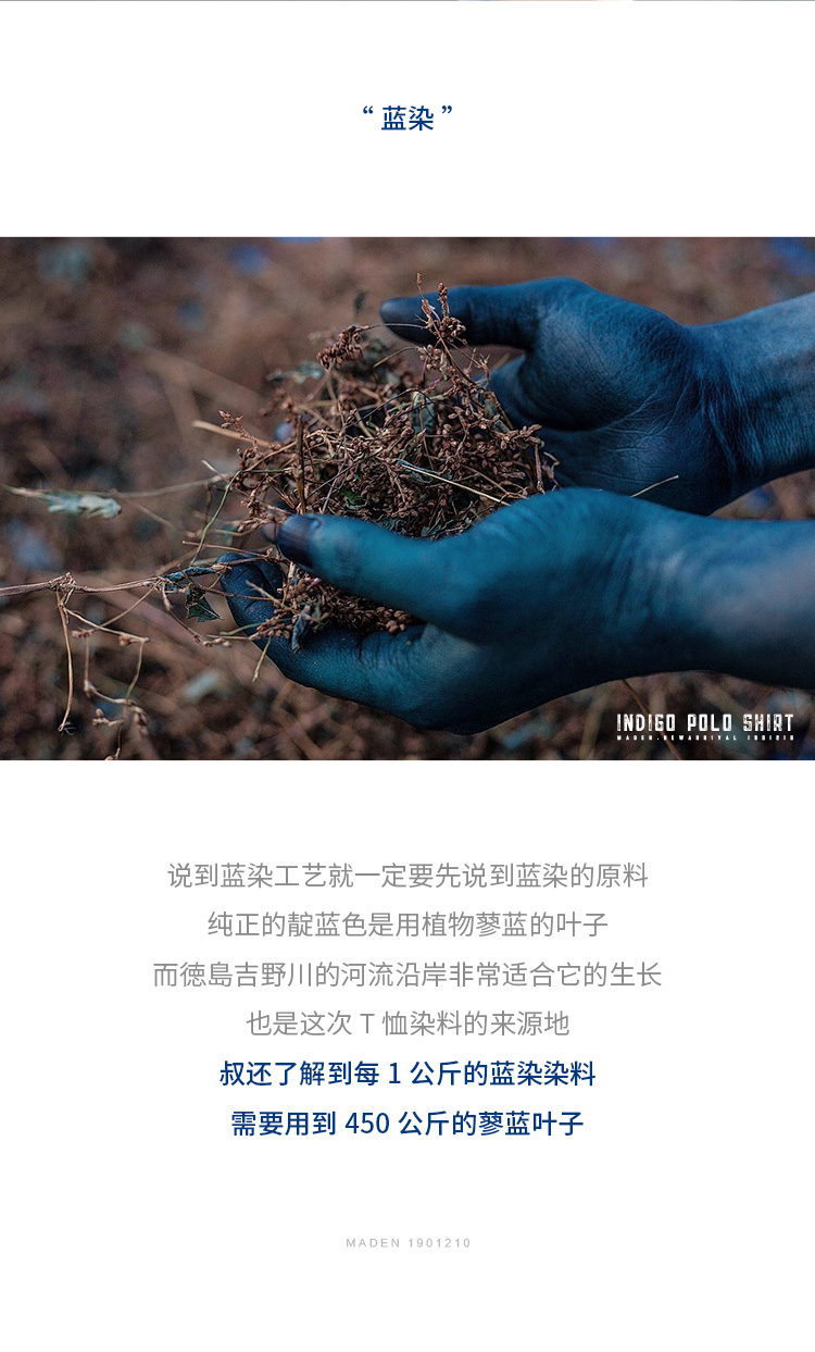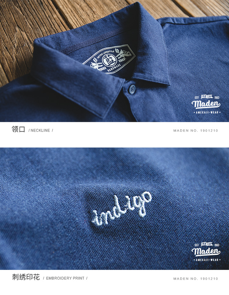 工装优选 美式复古蓝染翻领POLO衫T恤克莱因蓝短袖纯棉打底衫男夏