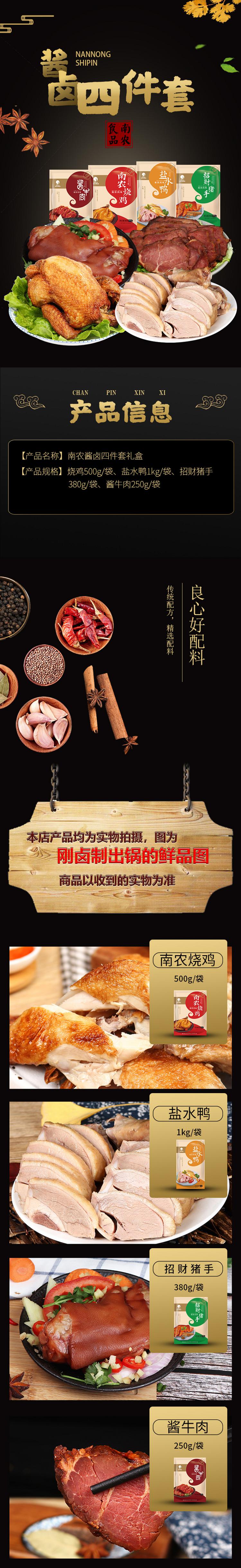 南农 南京特产酱卤味熟食真空包装 四件套组合(烧鸡+盐水鸭+招财猪手+酱牛肉)【CZ】