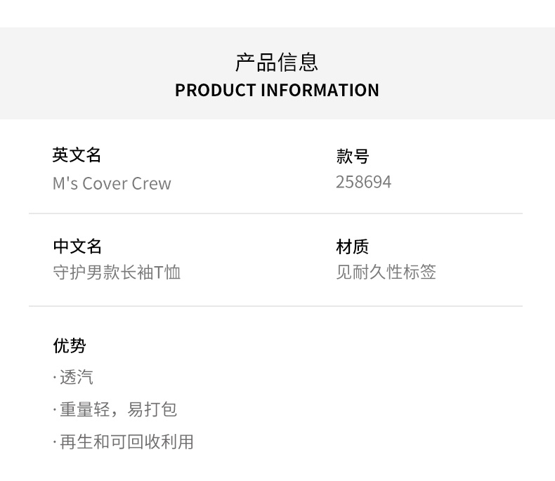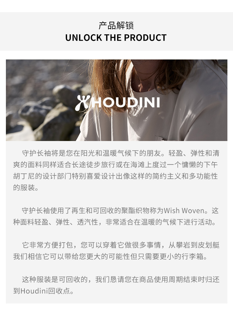 HOUDINI胡丁尼 Cover Crew 守护 男款户外舒适速干长袖T恤258694