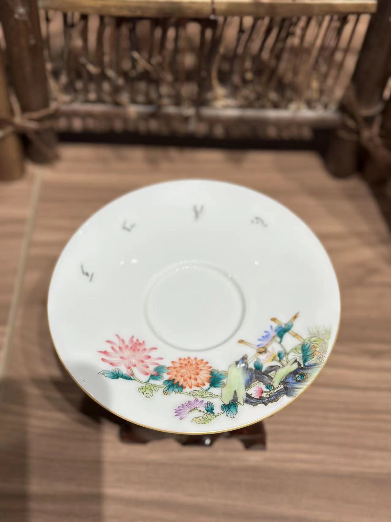 景德镇陶瓷 国瓷红叶 4头手绘办公用具--水点桃花