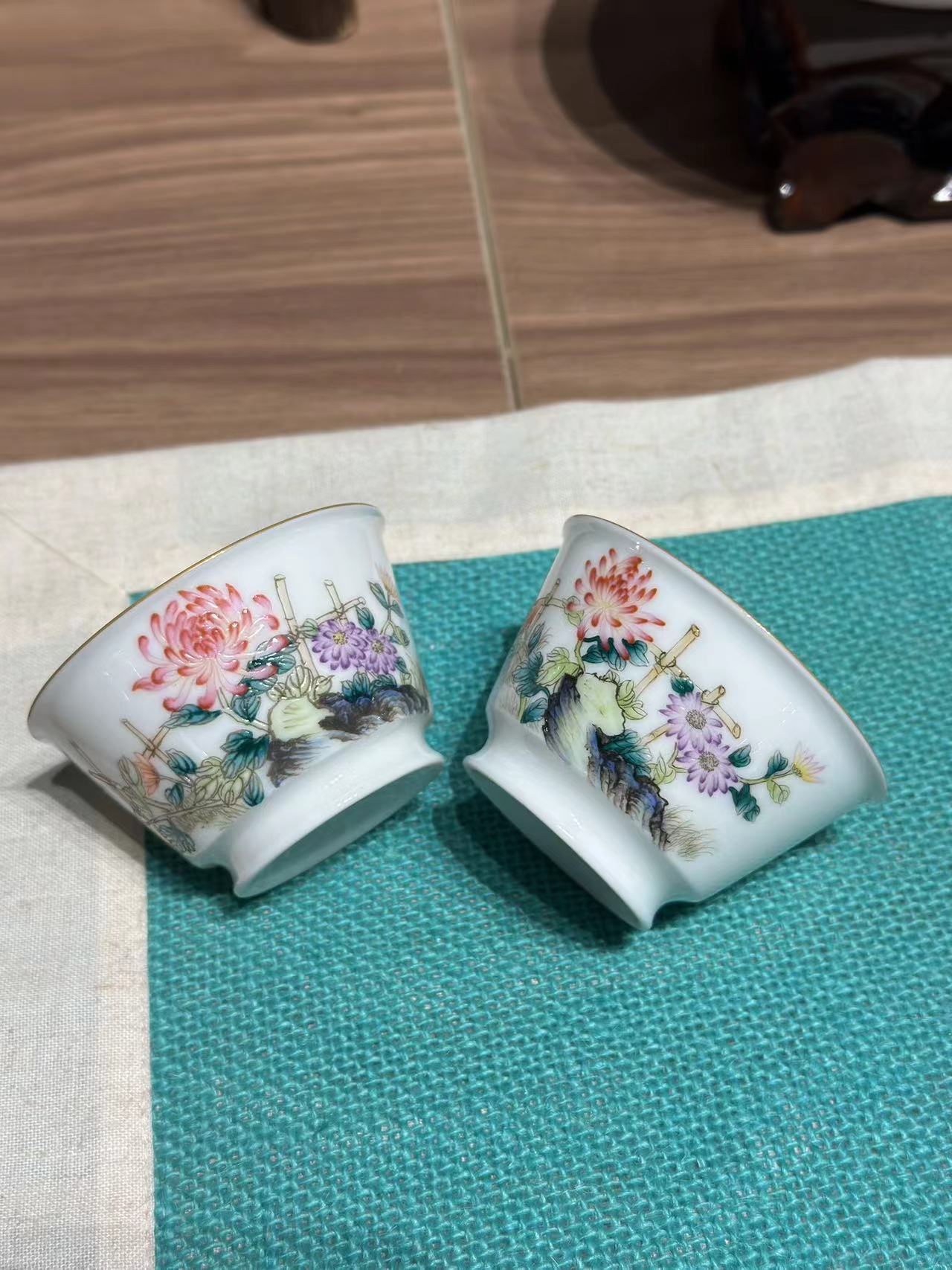 景德镇陶瓷 国瓷红叶 成化套组杯琴棋书画