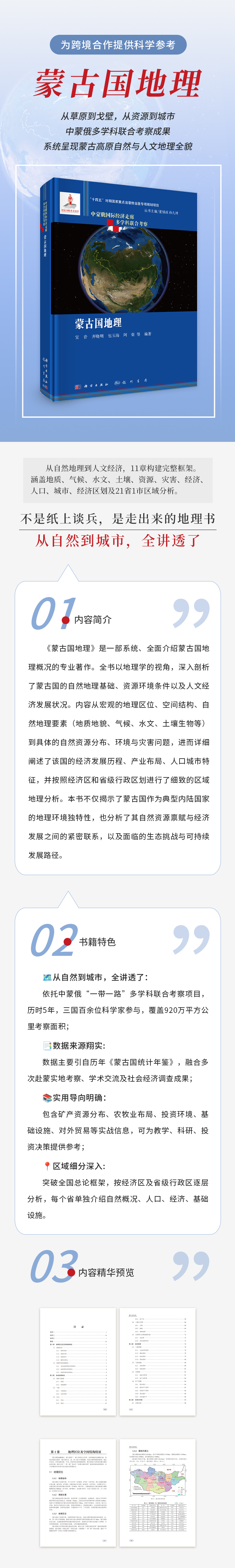 本书是一部系统、全面介绍蒙古国地理概况的专业著作。全书以地理学的视角,深入剖析了蒙古国的自然地理基础、资源环境条件以及人文经济发展状况。内容从宏观的地理区位、空间结构、自然地理要素(地质地貌、气候、水文、土壤生物等)到具体的自然资源分布、环境与灾害问题,进而详细阐述了该国的经济发展历程、产业布局、人口城市特征,并按照经济区和省级行政区划进行了细致的区域地理分析。本书不仅揭示了蒙古国作为典型内陆国家的地理环境独特性,也分析了其自然资源禀赋与经济发展之间的紧密联系,以及面临的生态挑战与可持续发展路径。