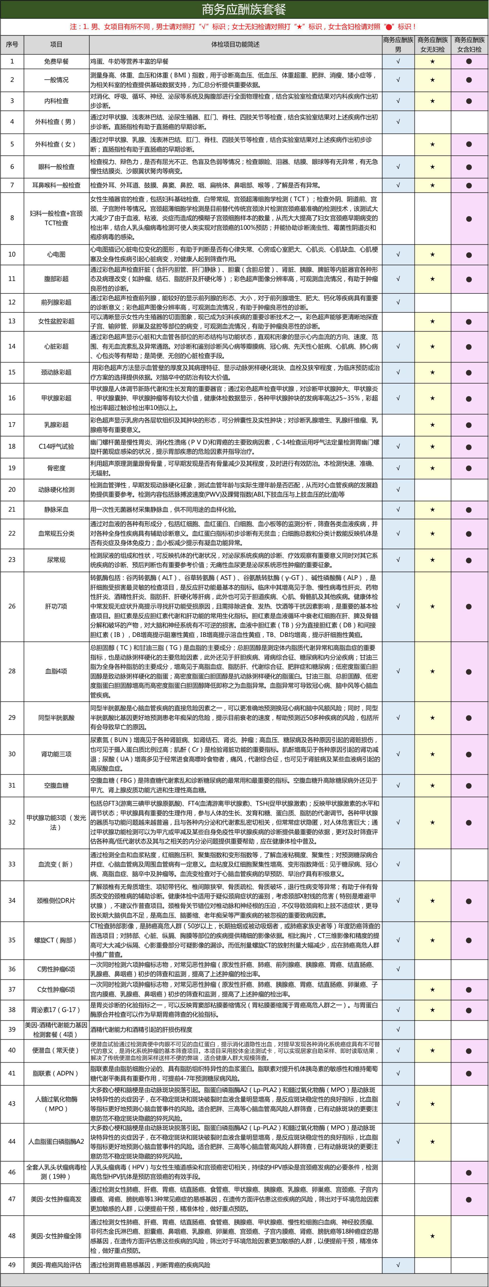 商务应酬族体检套餐