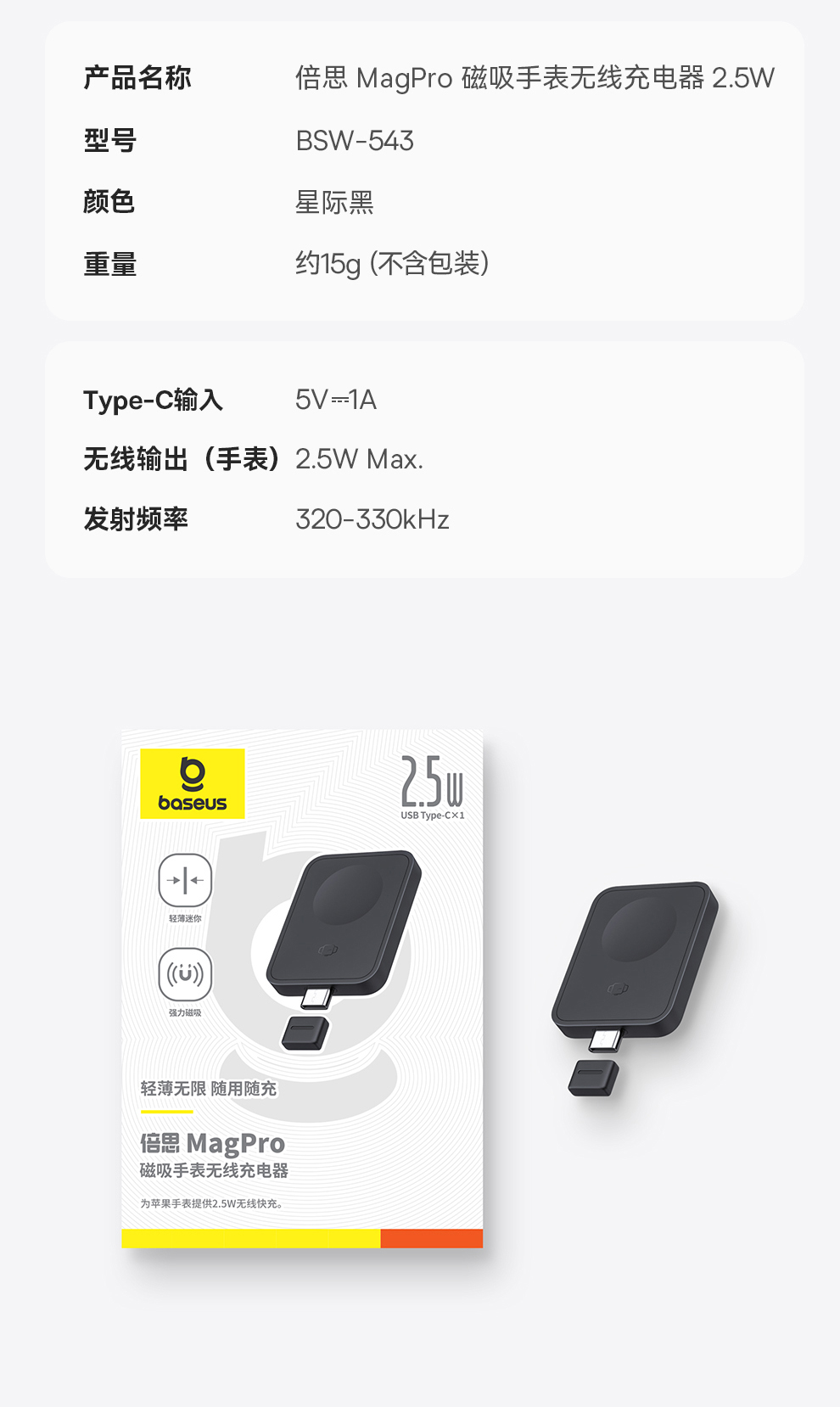 【69元3件】倍思 MagPro 磁吸手表无线充电器 2.5W