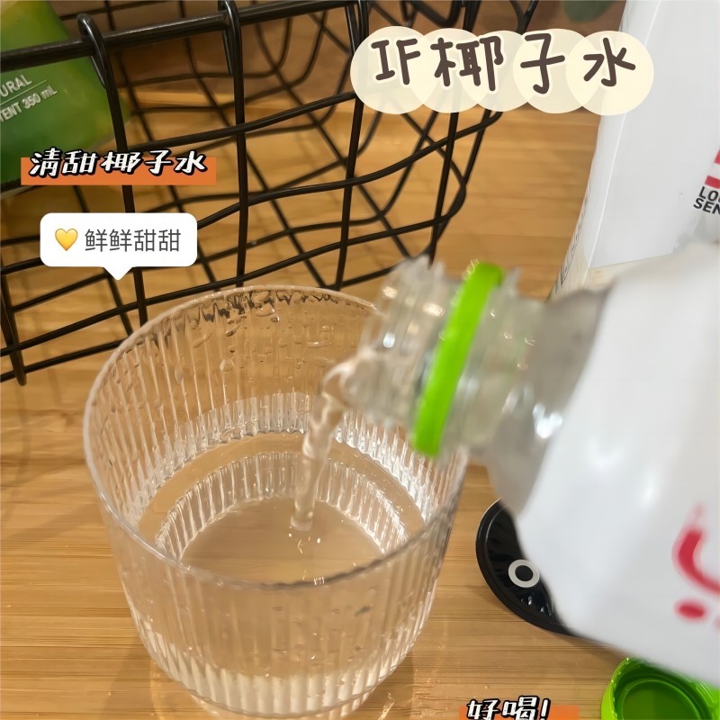 椰子水冰冰凉凉,淡淡的椰香味,含糖量不高,适合老人和小孩子,代替传统饮料,不含添加剂少,非常健康。