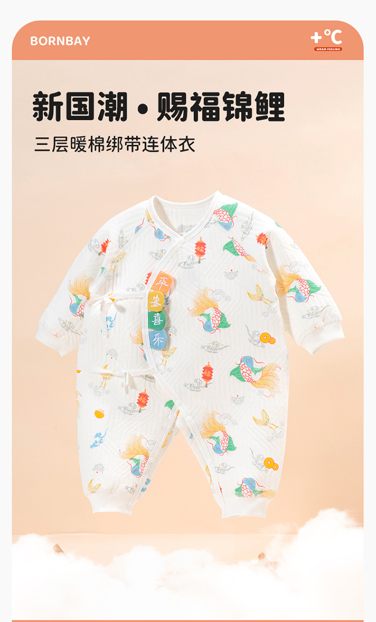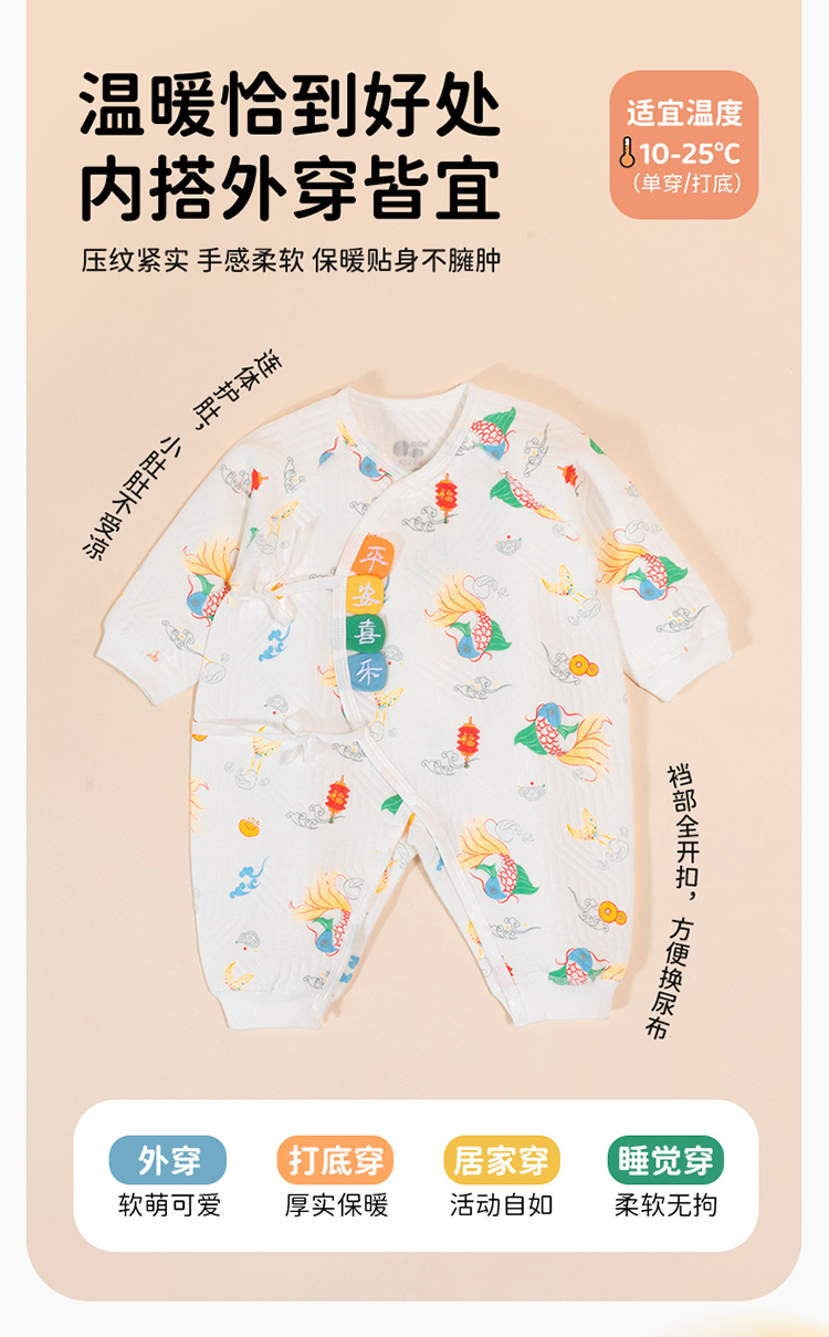 贝贝怡2024新款秋季婴幼连体衣柔顺舒适纯棉新生儿哈衣ZB4DL039