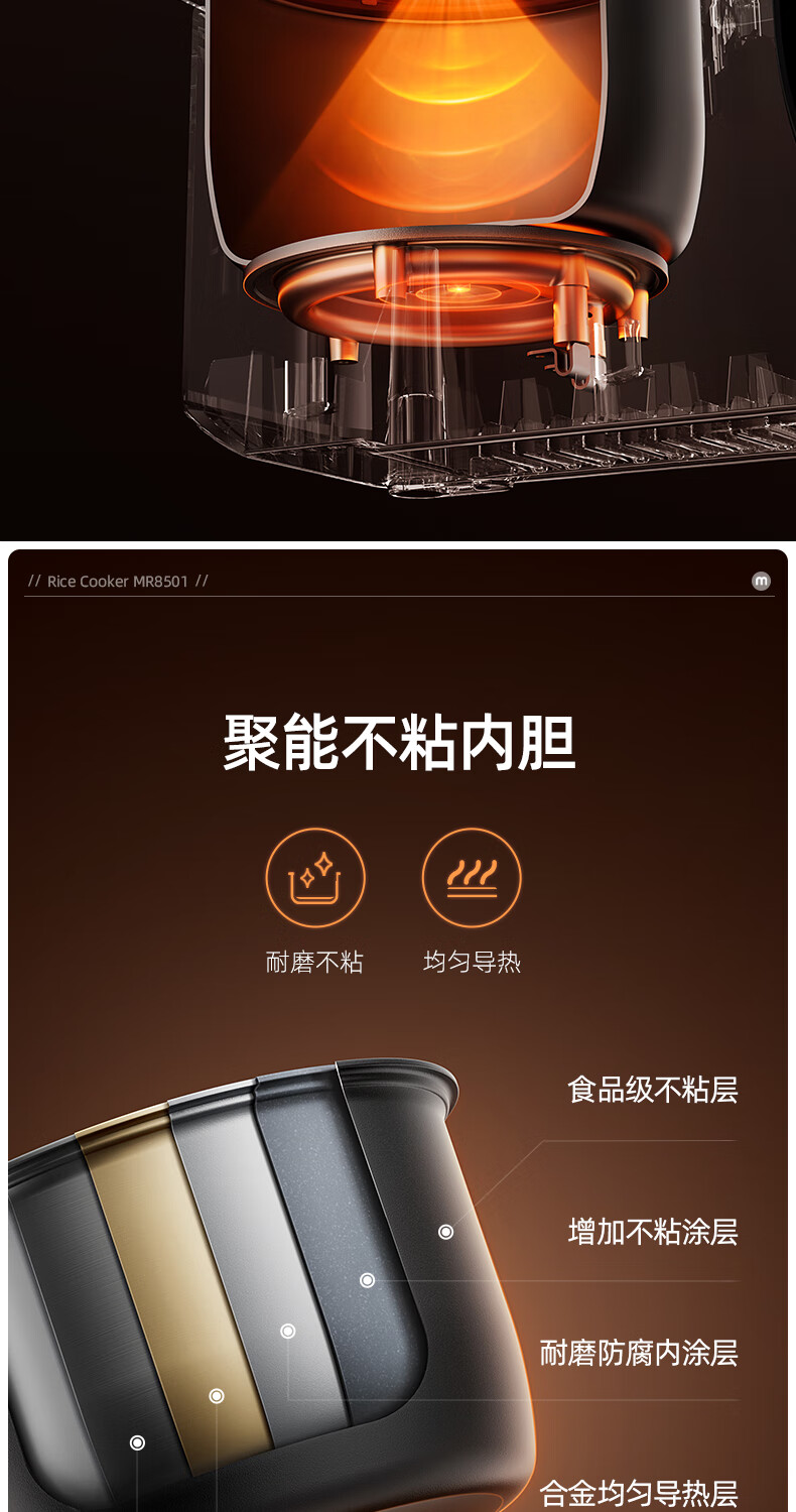 摩飞多功能电饭煲MR8501+摩飞空气炸锅(双锅)MR8100【鲜知20.0】 商品图2