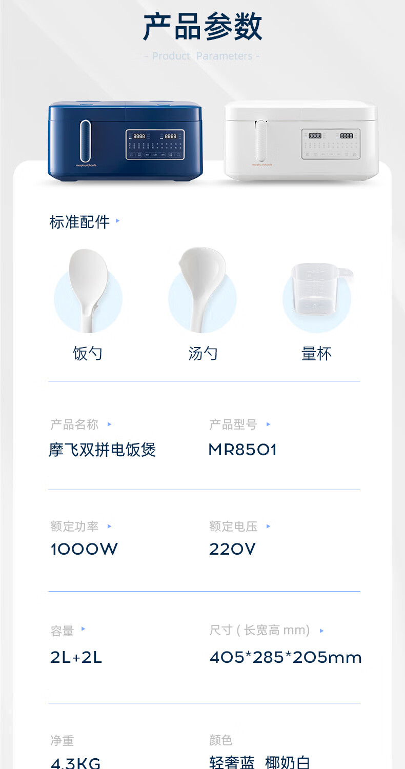 摩飞多功能电饭煲MR8501+摩飞空气炸锅(双锅)MR8100【鲜知20.0】