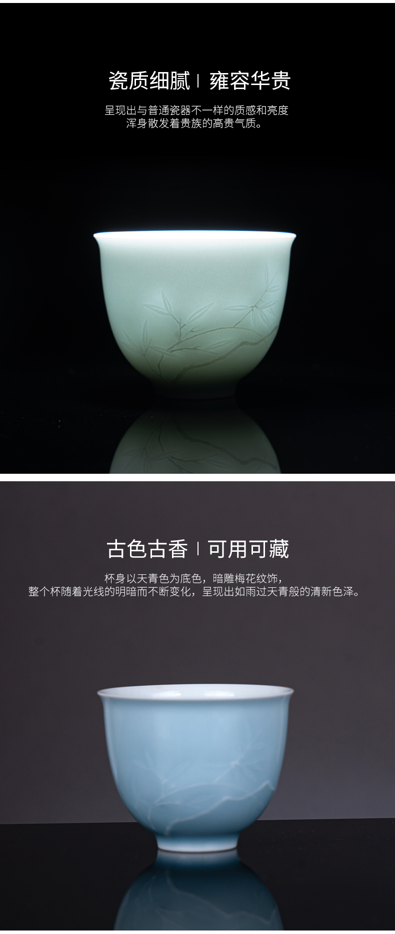 天青雕刻梅花杯