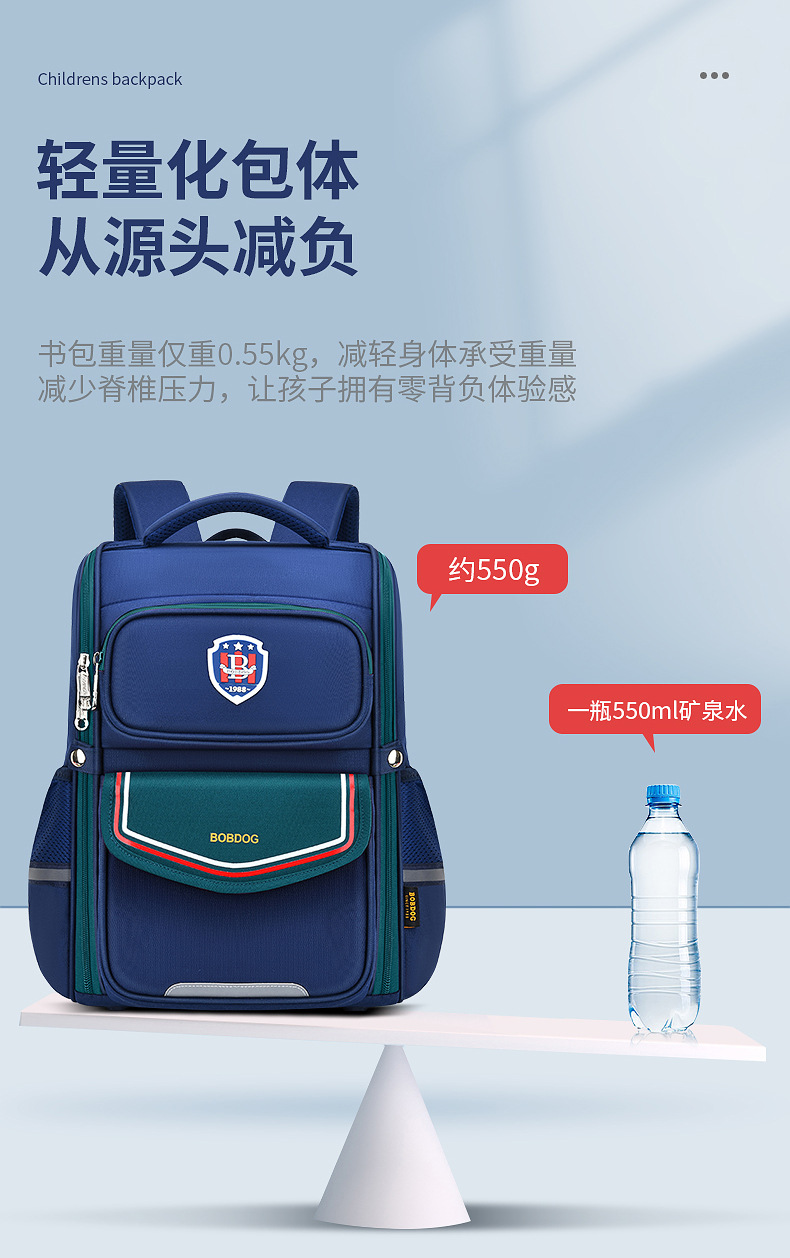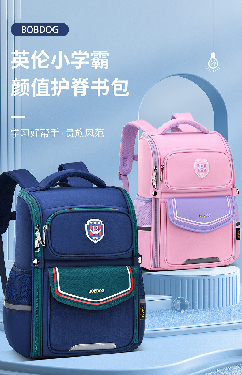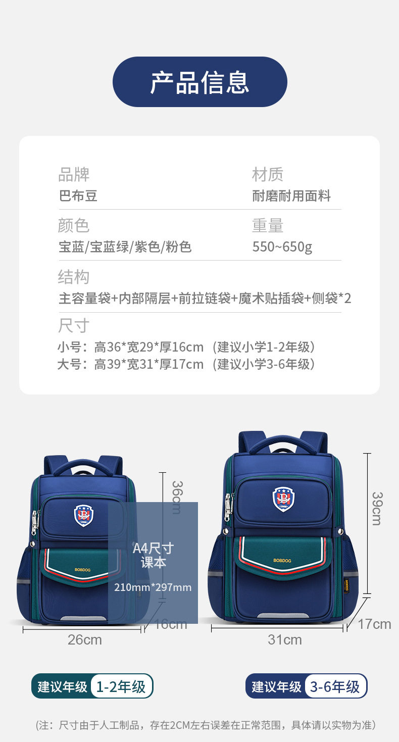 巴布豆小学生书包女孩1-3-6年级男童双肩包超轻减负护脊_HLY