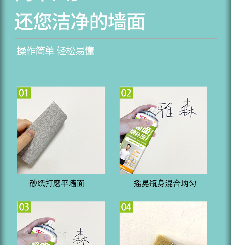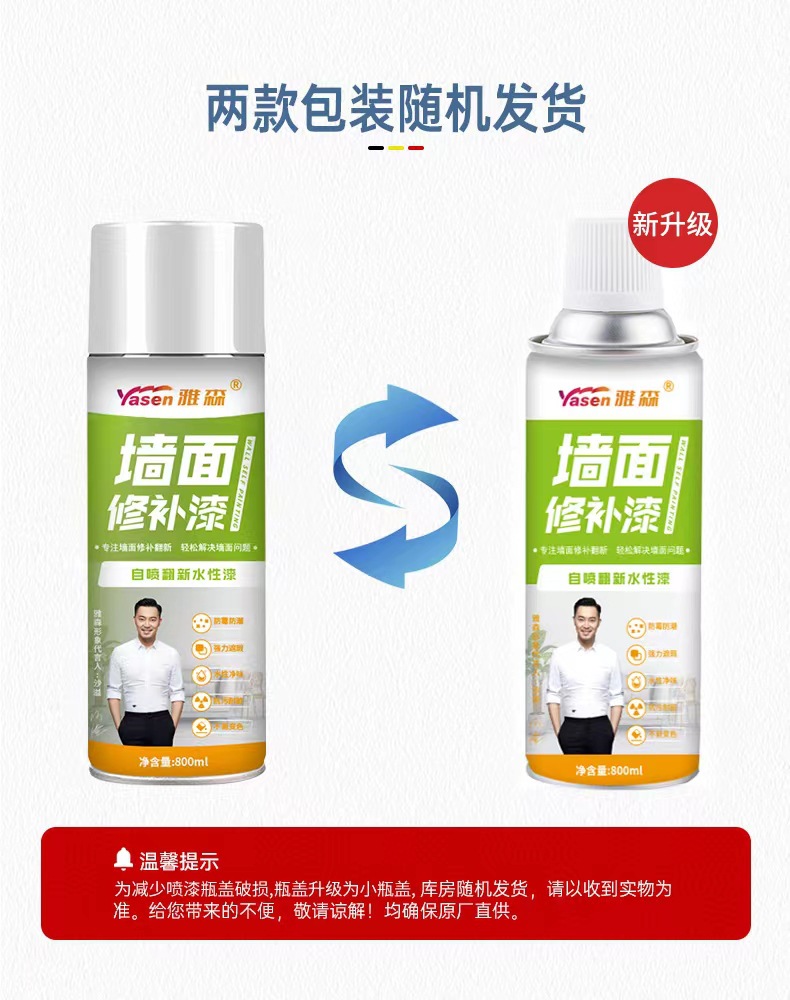 【明星品质】雅森墙面喷漆补墙膏环保水性漆800ml涂鸦翻新污渍修补漆自喷乳胶漆白