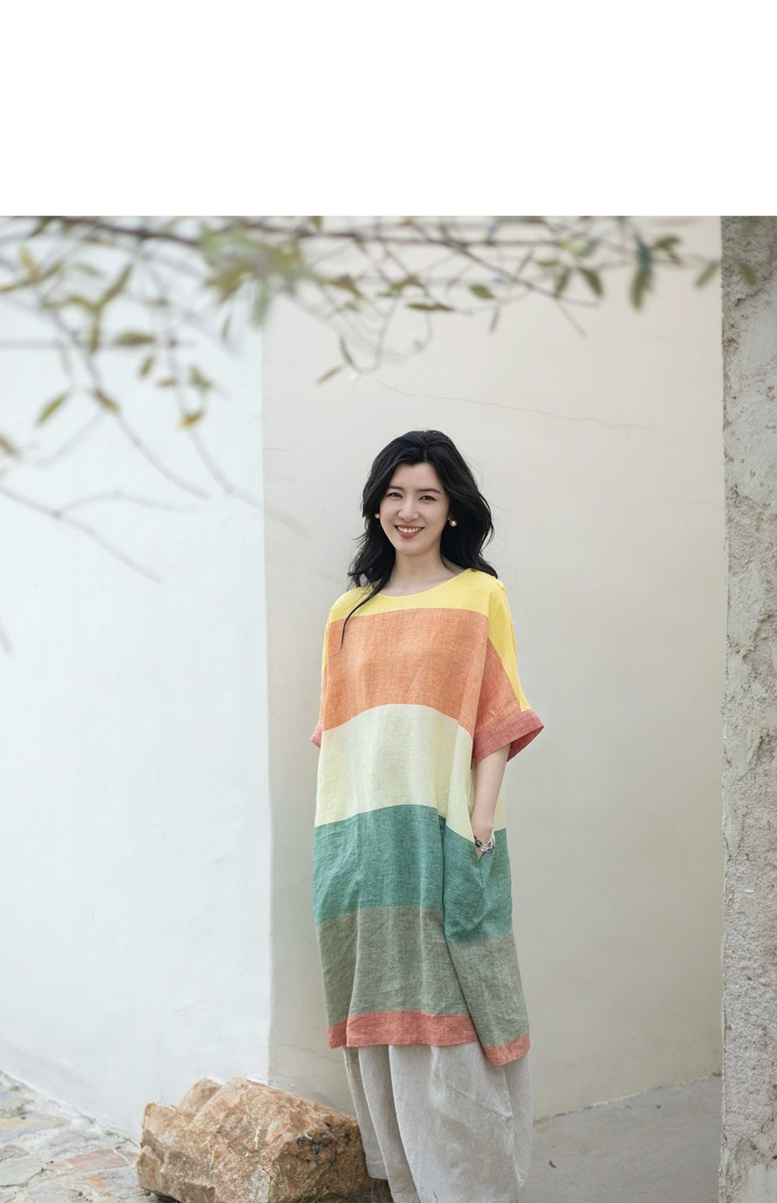 以天然亚麻为载体,融合热烈色彩与自在剪裁为身在城市、心怀远方的女性提供兼具美学与舒适的旅行着装