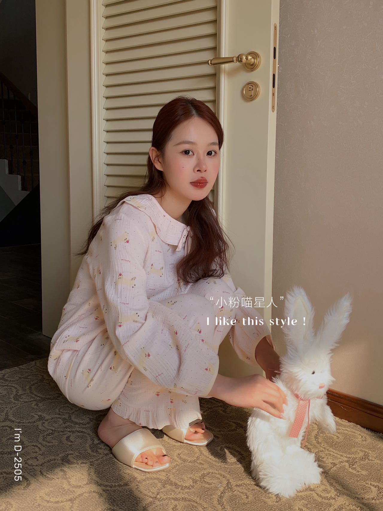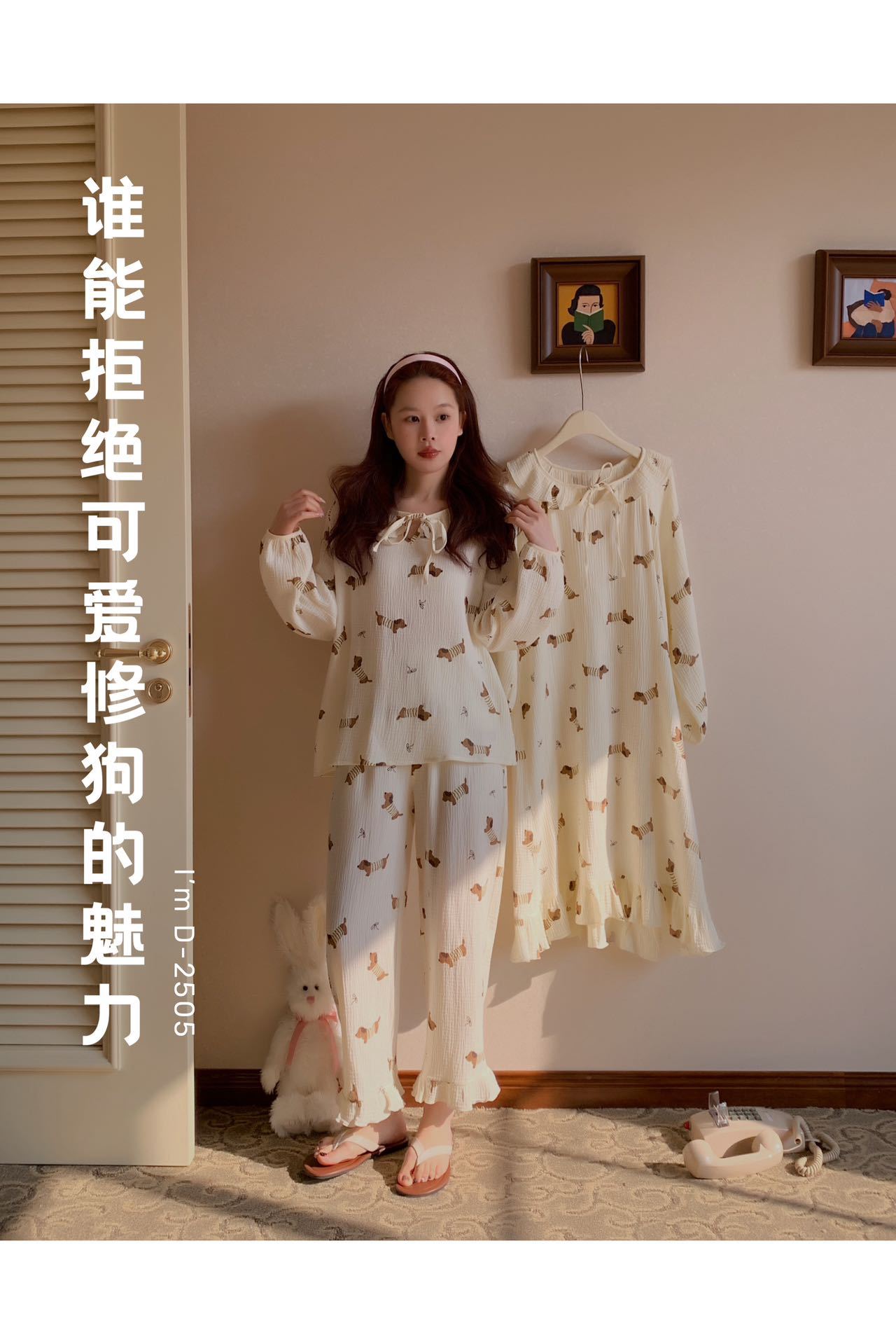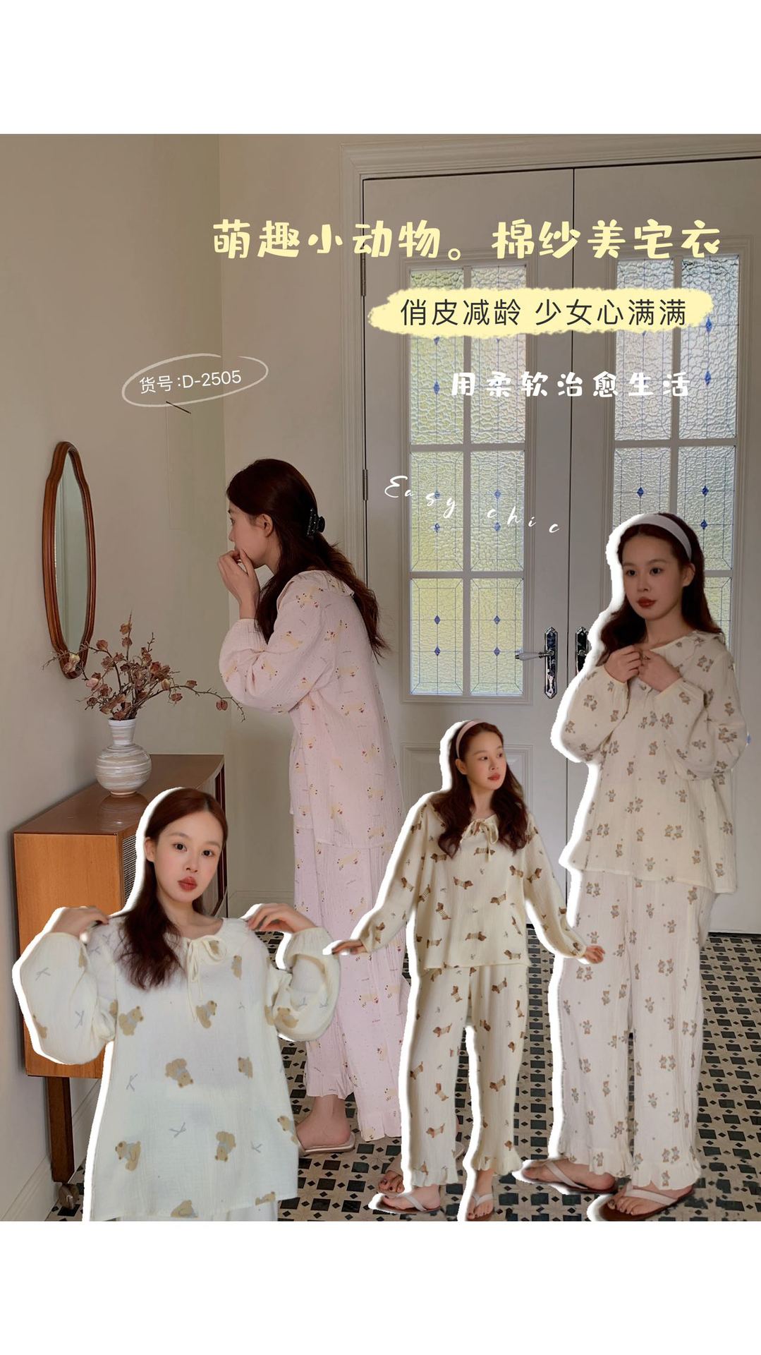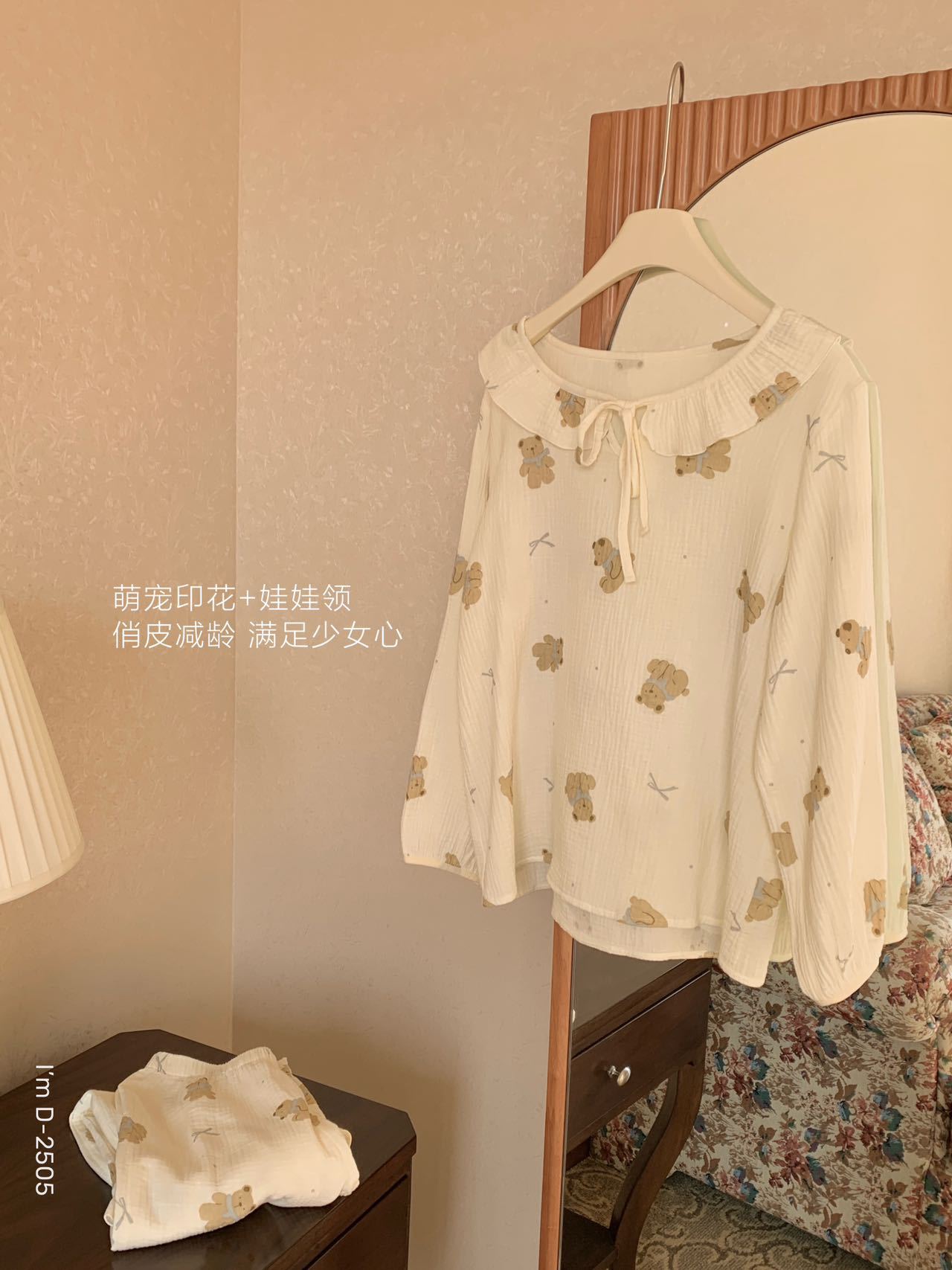【柔软棉纱】2025新款萌趣小动物全棉纱布家居服套装/娃娃领睡裙 舒适圆领长袖睡衣外穿