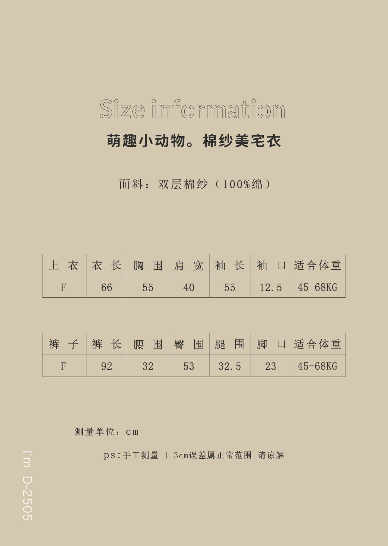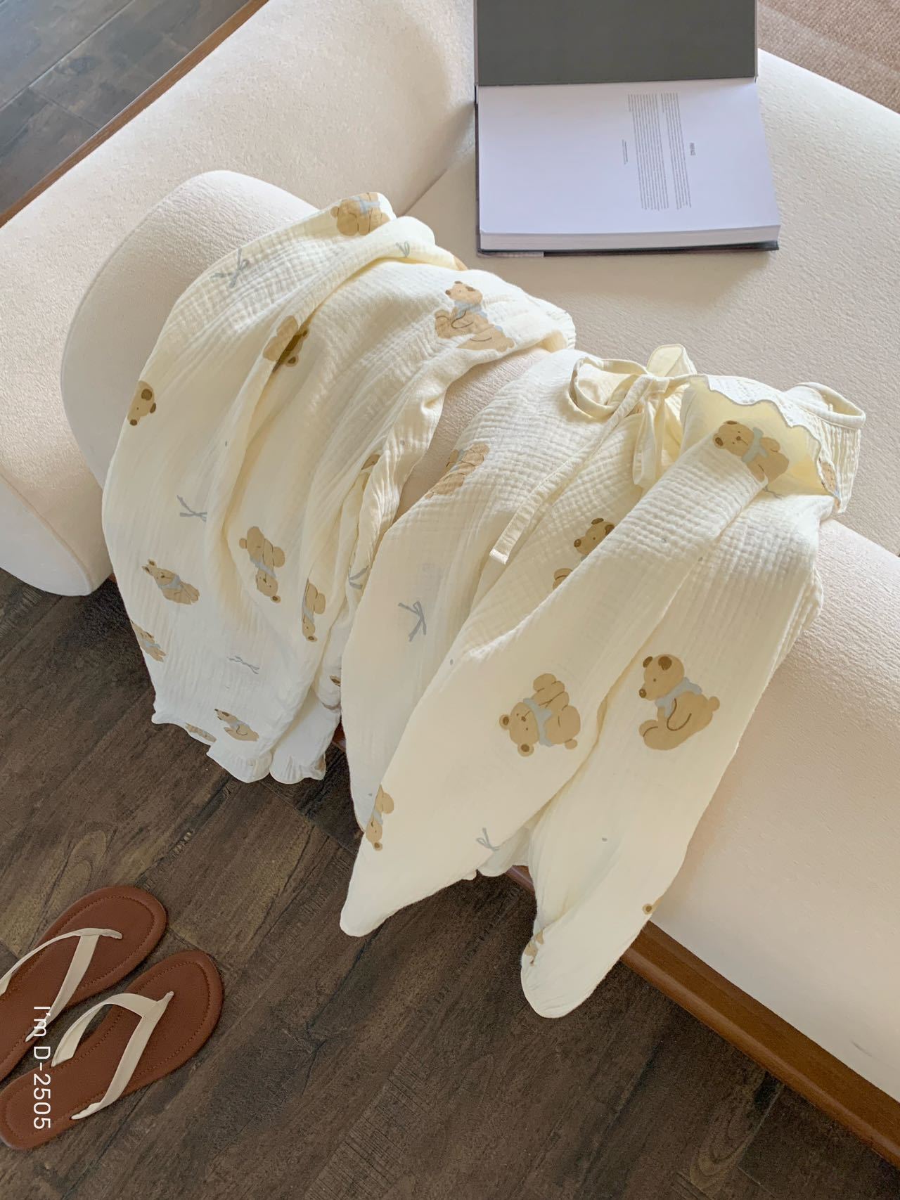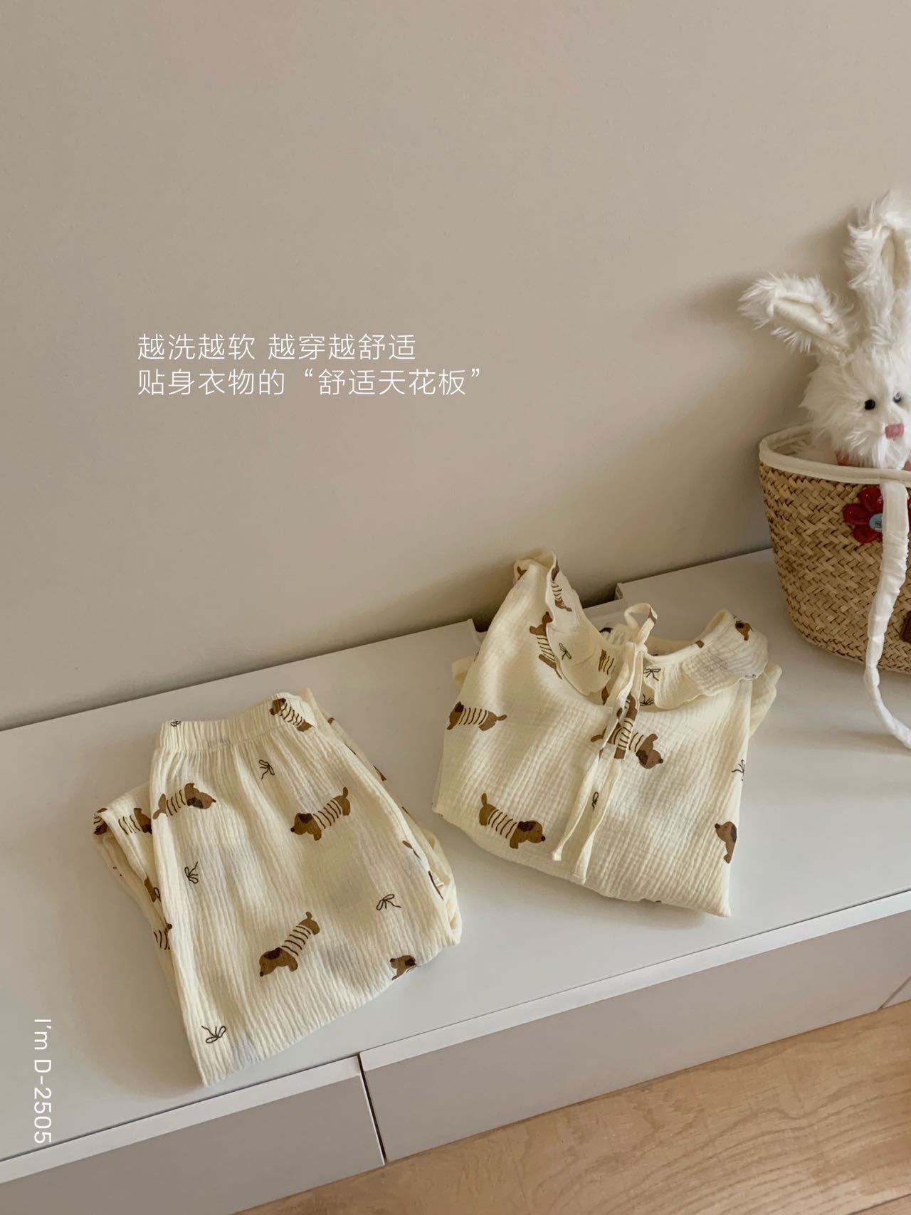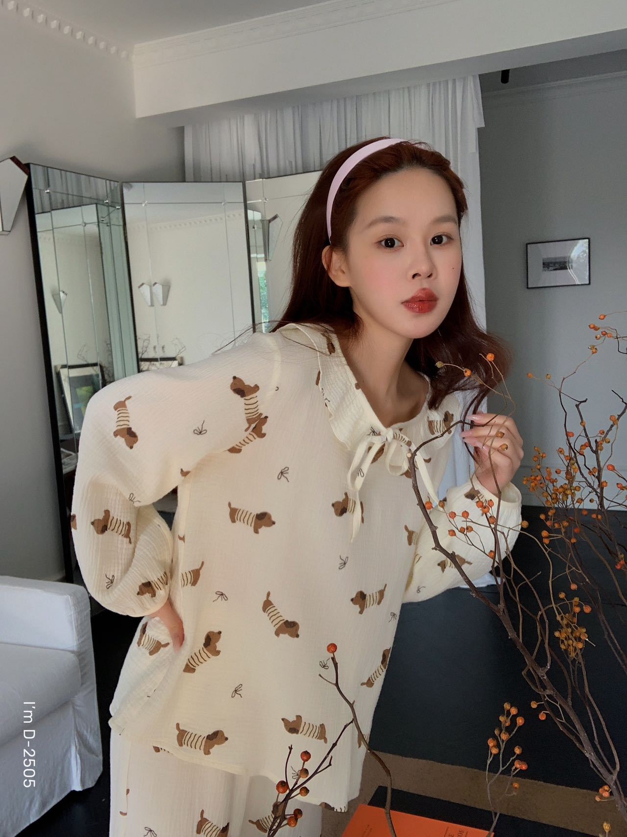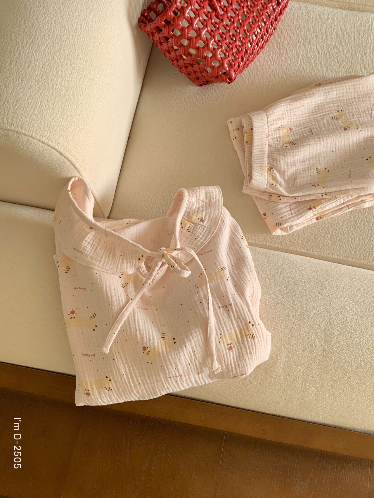 【柔软棉纱】2025新款萌趣小动物全棉纱布家居服套装/娃娃领睡裙 舒适圆领长袖睡衣外穿