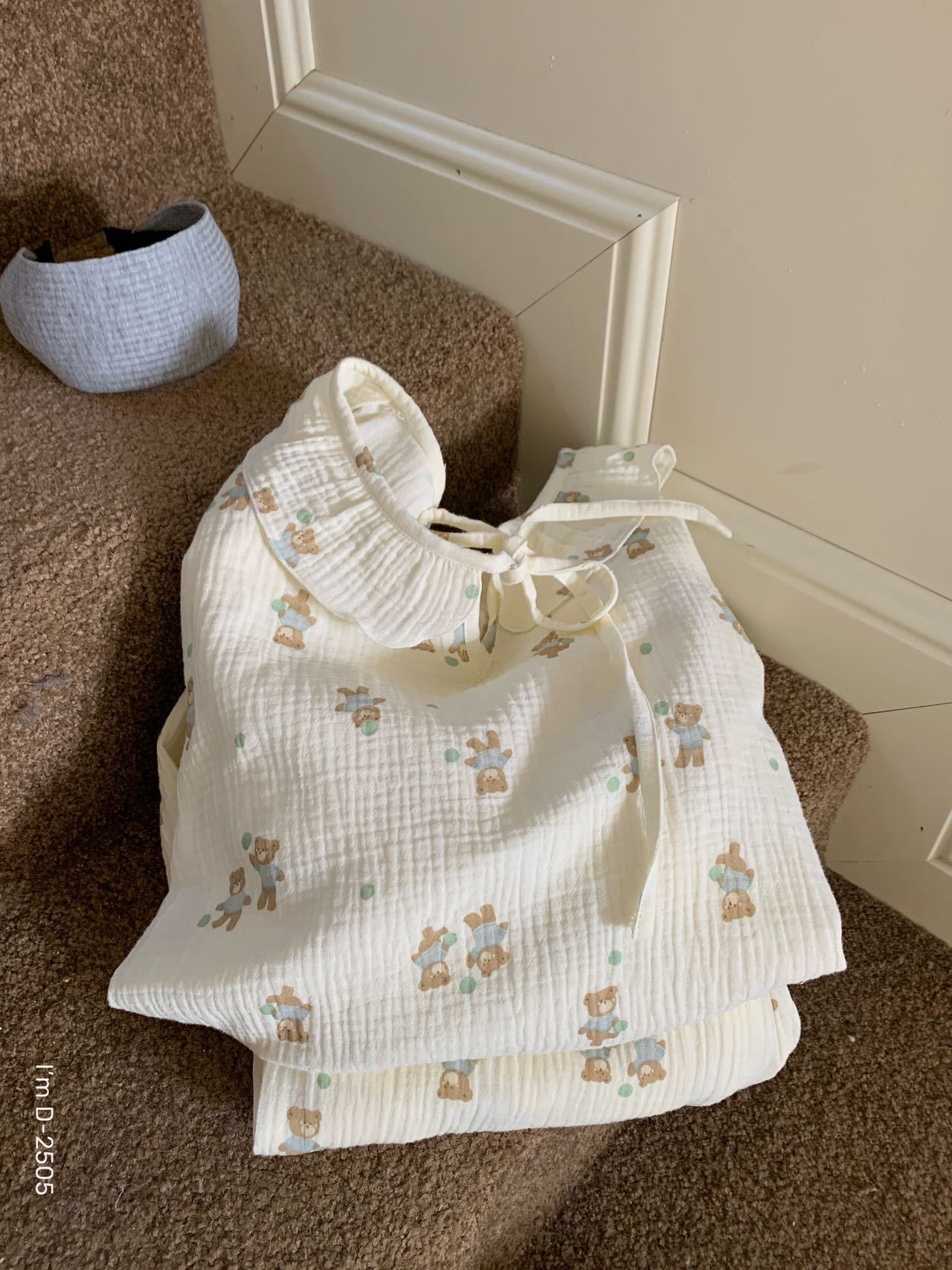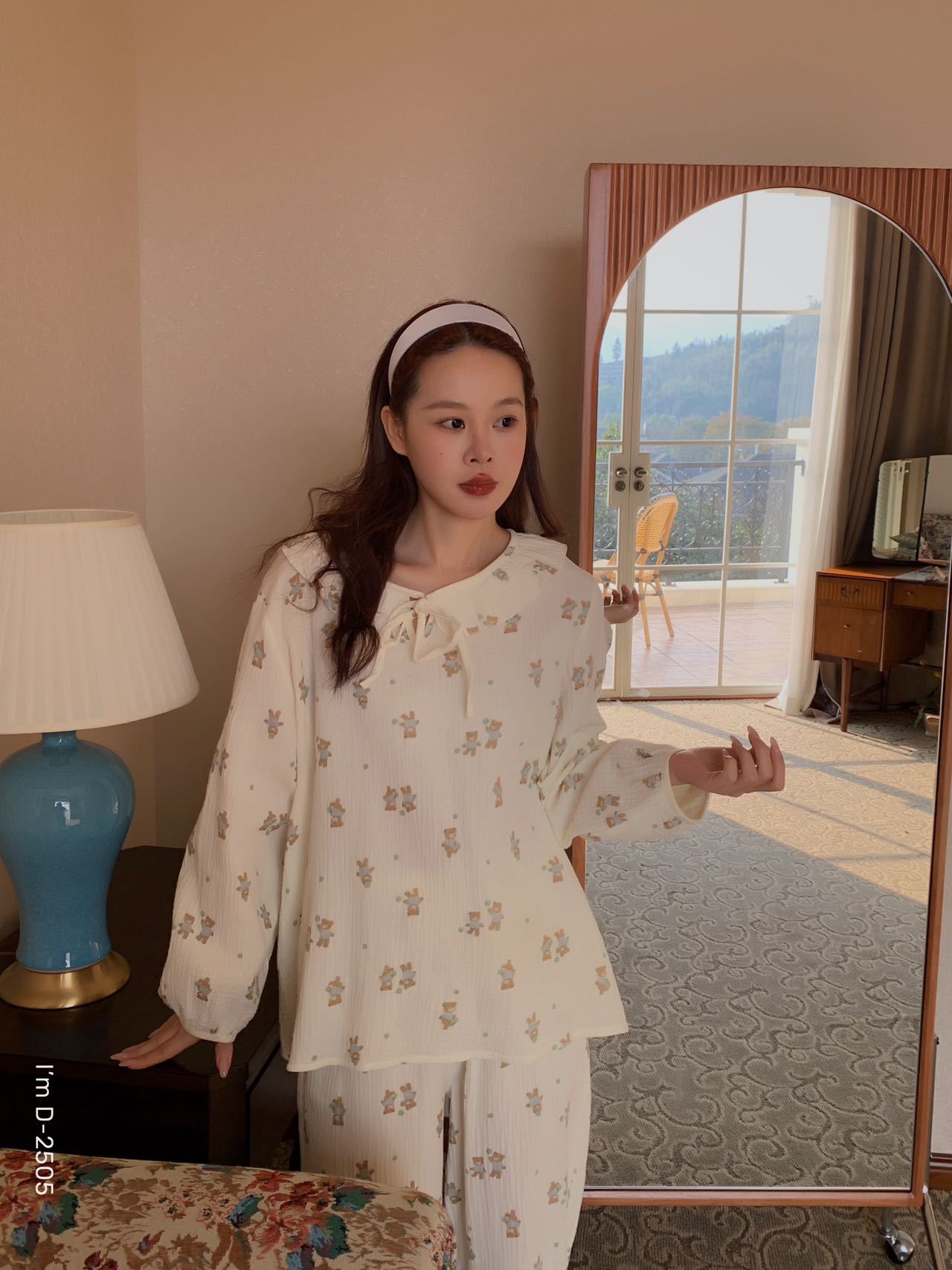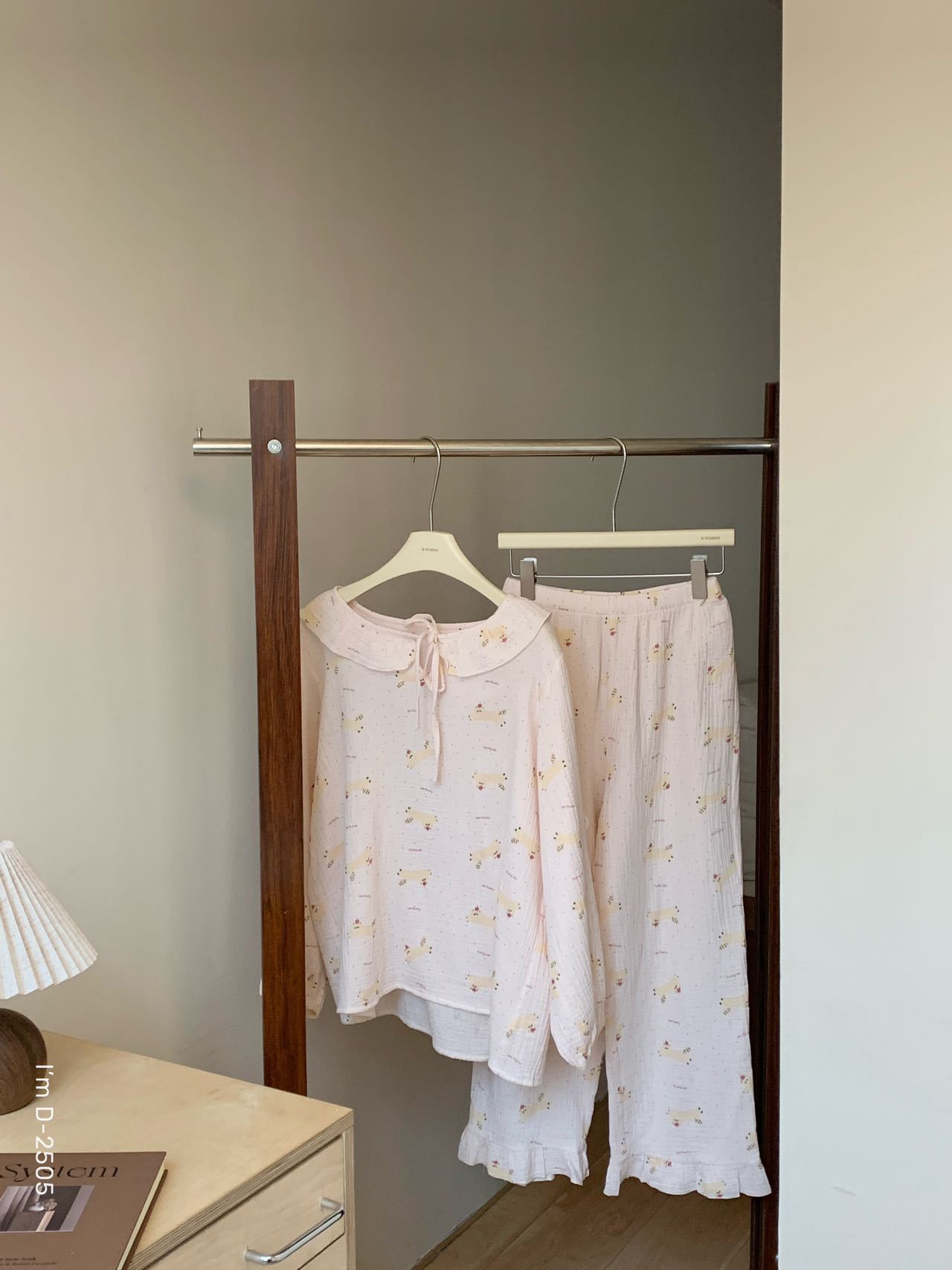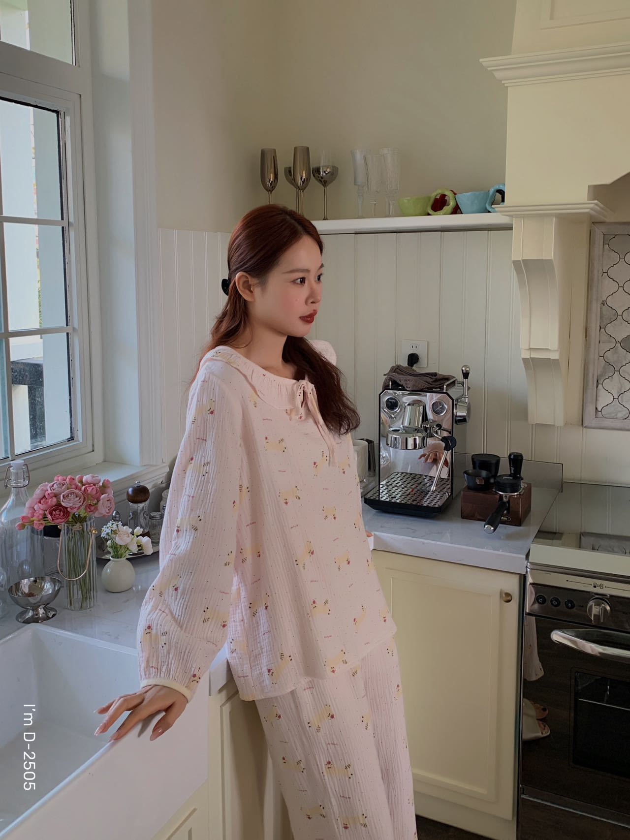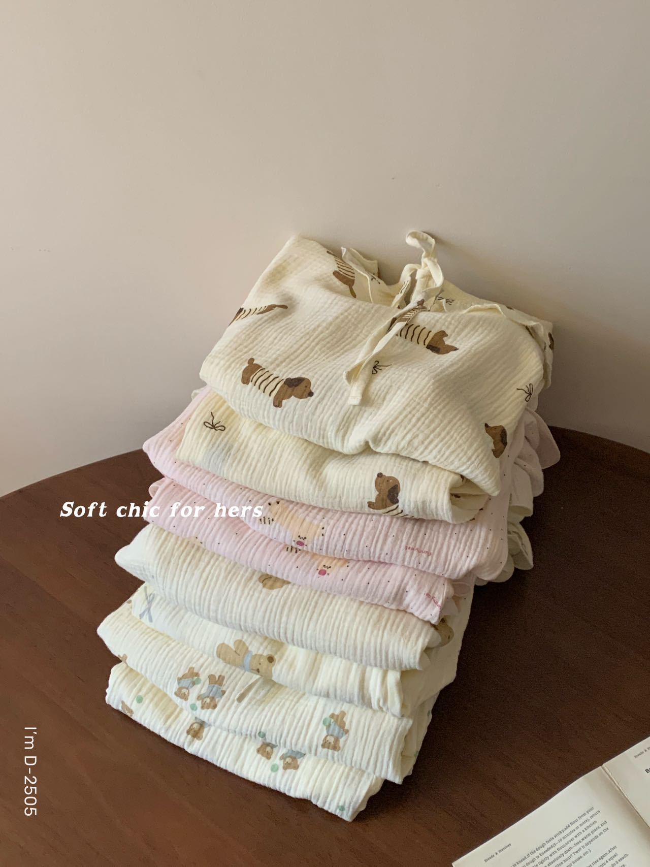 【柔软棉纱】2025新款萌趣小动物全棉纱布家居服套装/娃娃领睡裙 舒适圆领长袖睡衣外穿