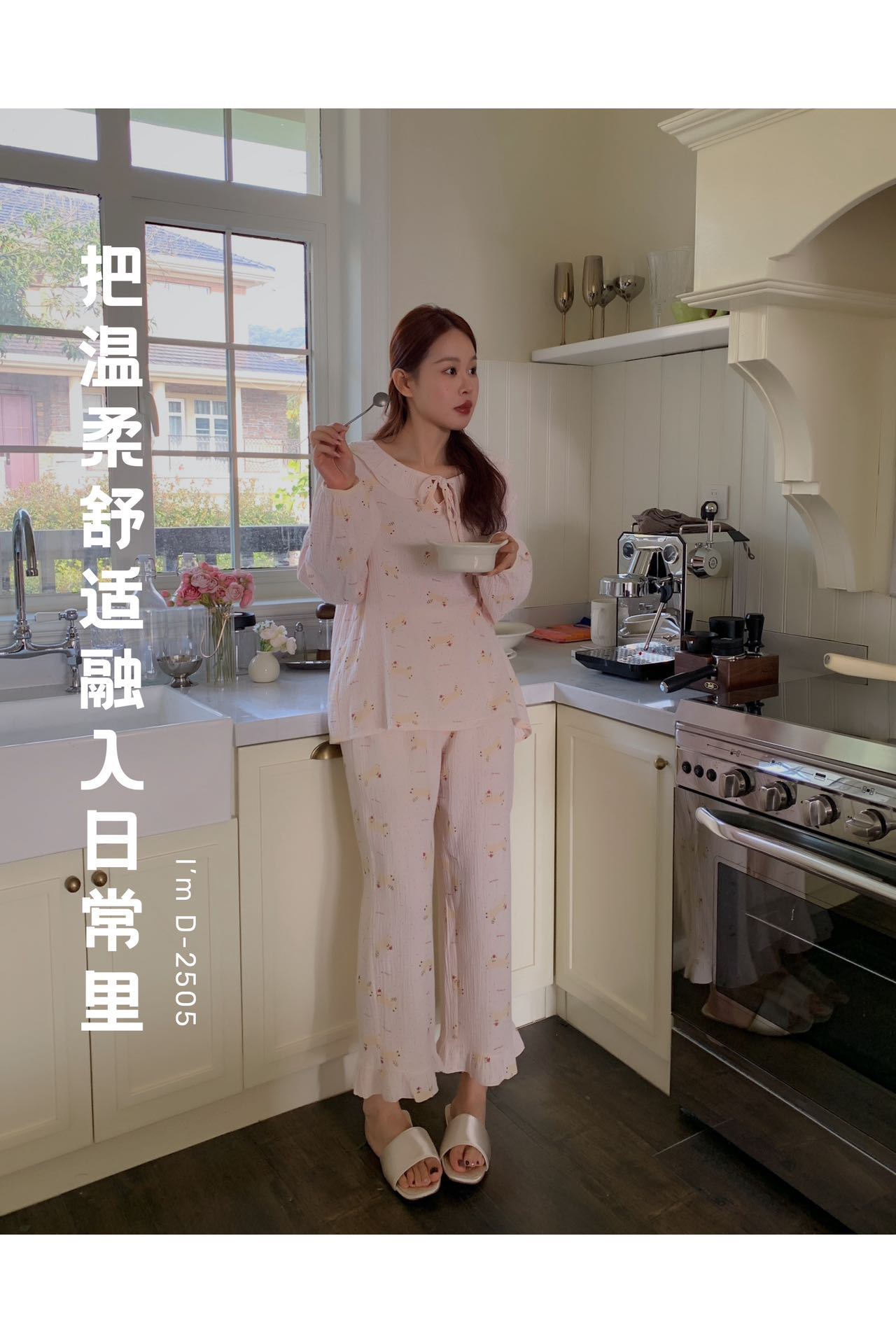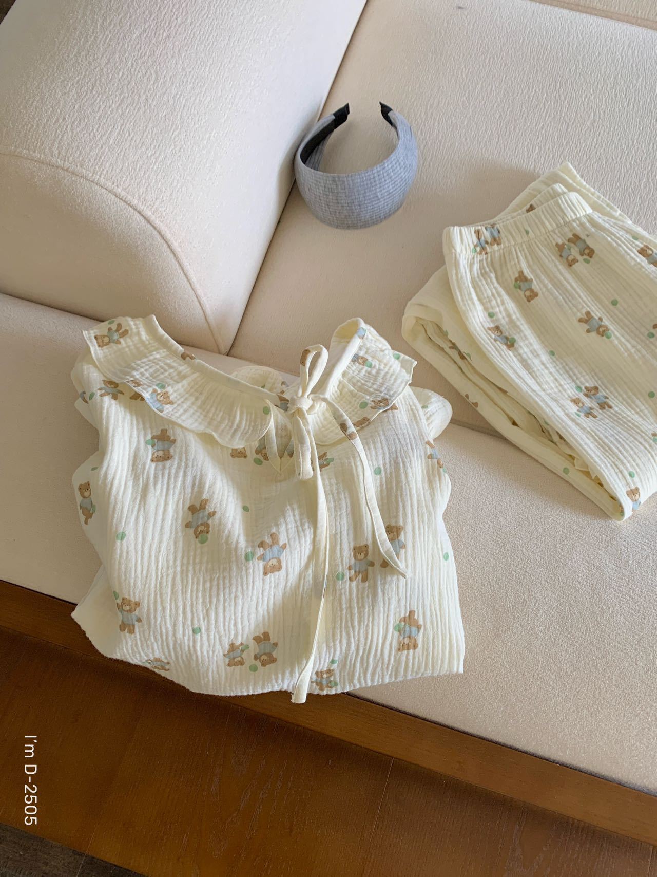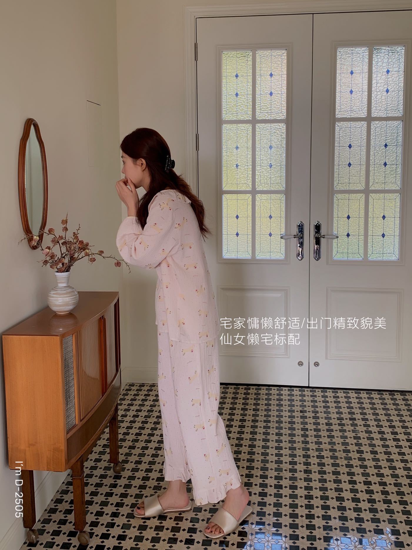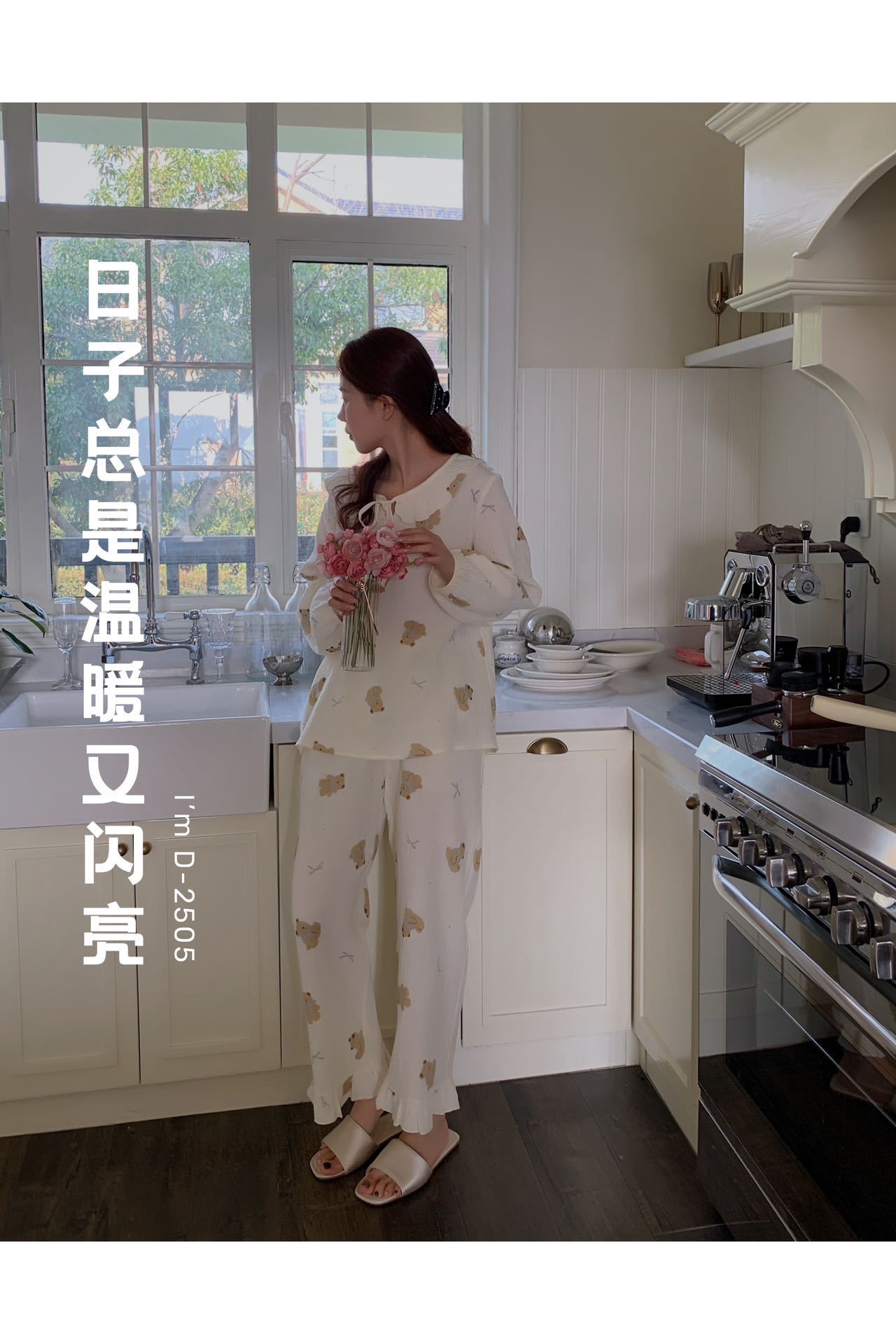 【柔软棉纱】2025新款萌趣小动物全棉纱布家居服套装/娃娃领睡裙 舒适圆领长袖睡衣外穿