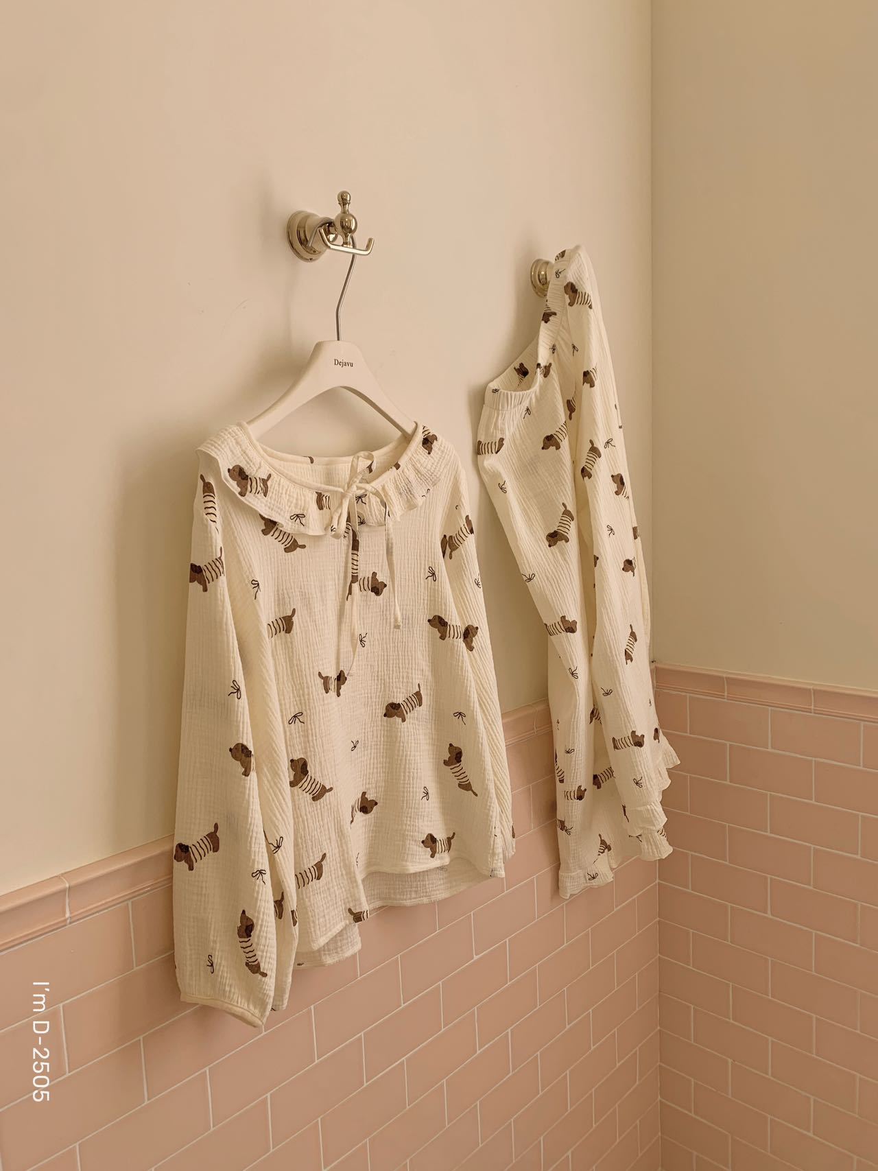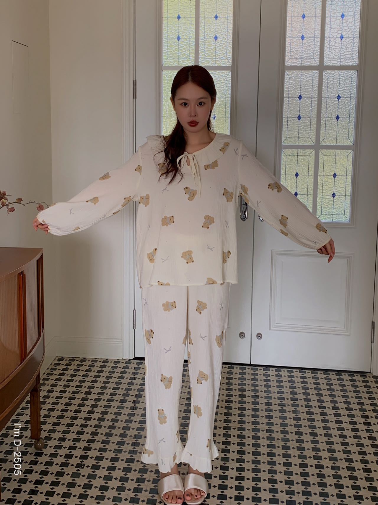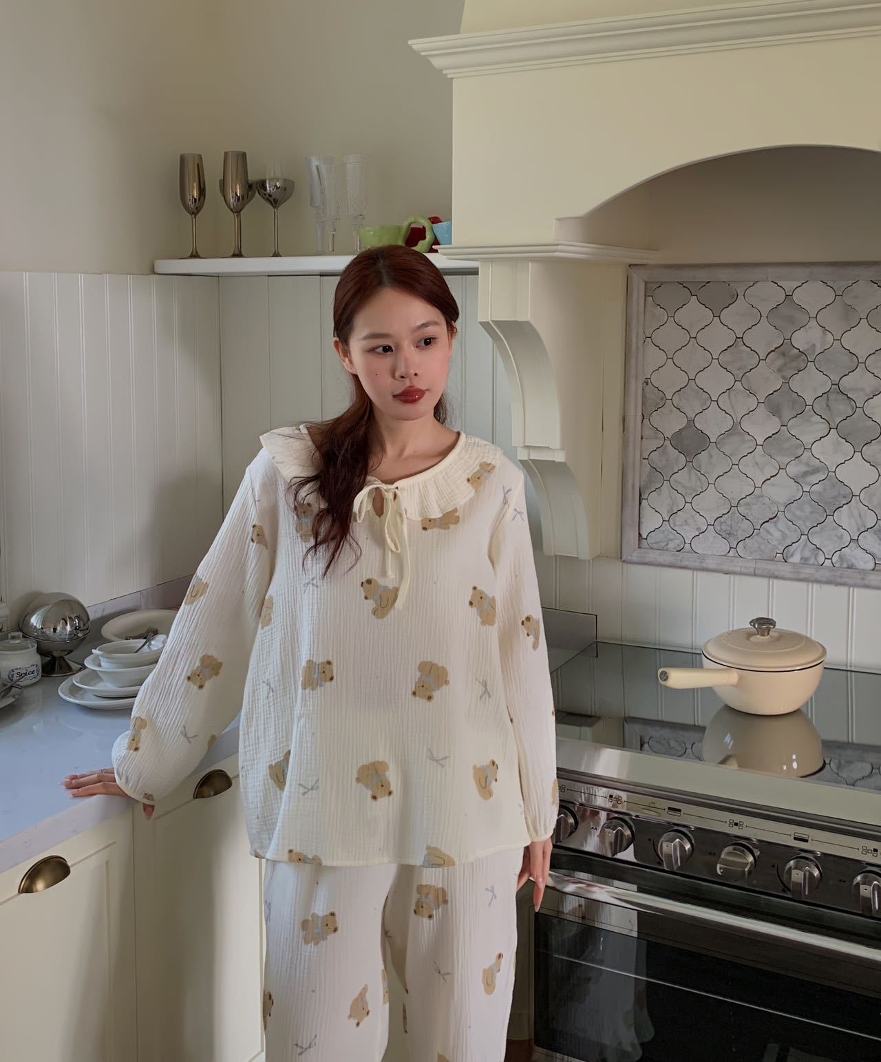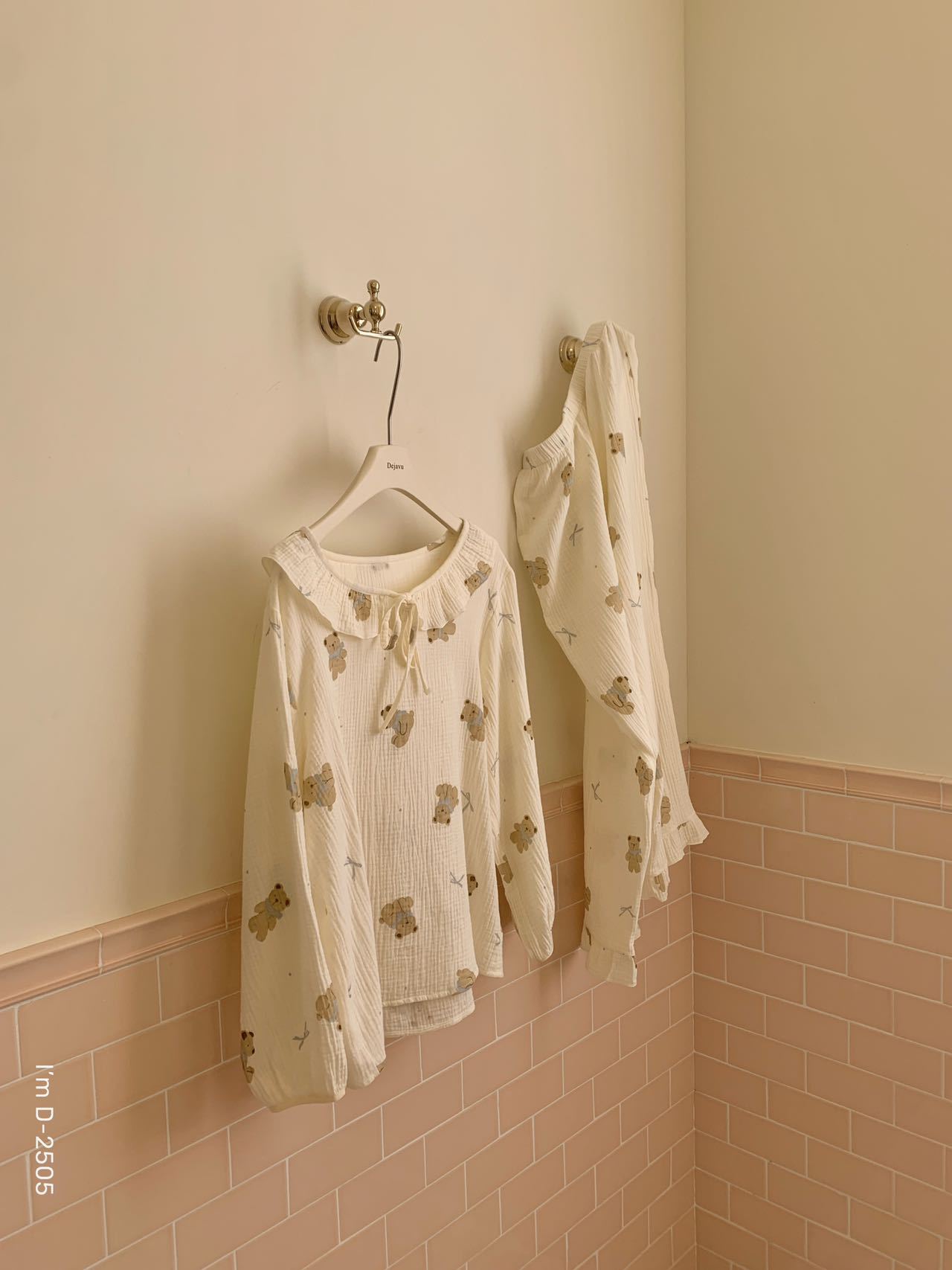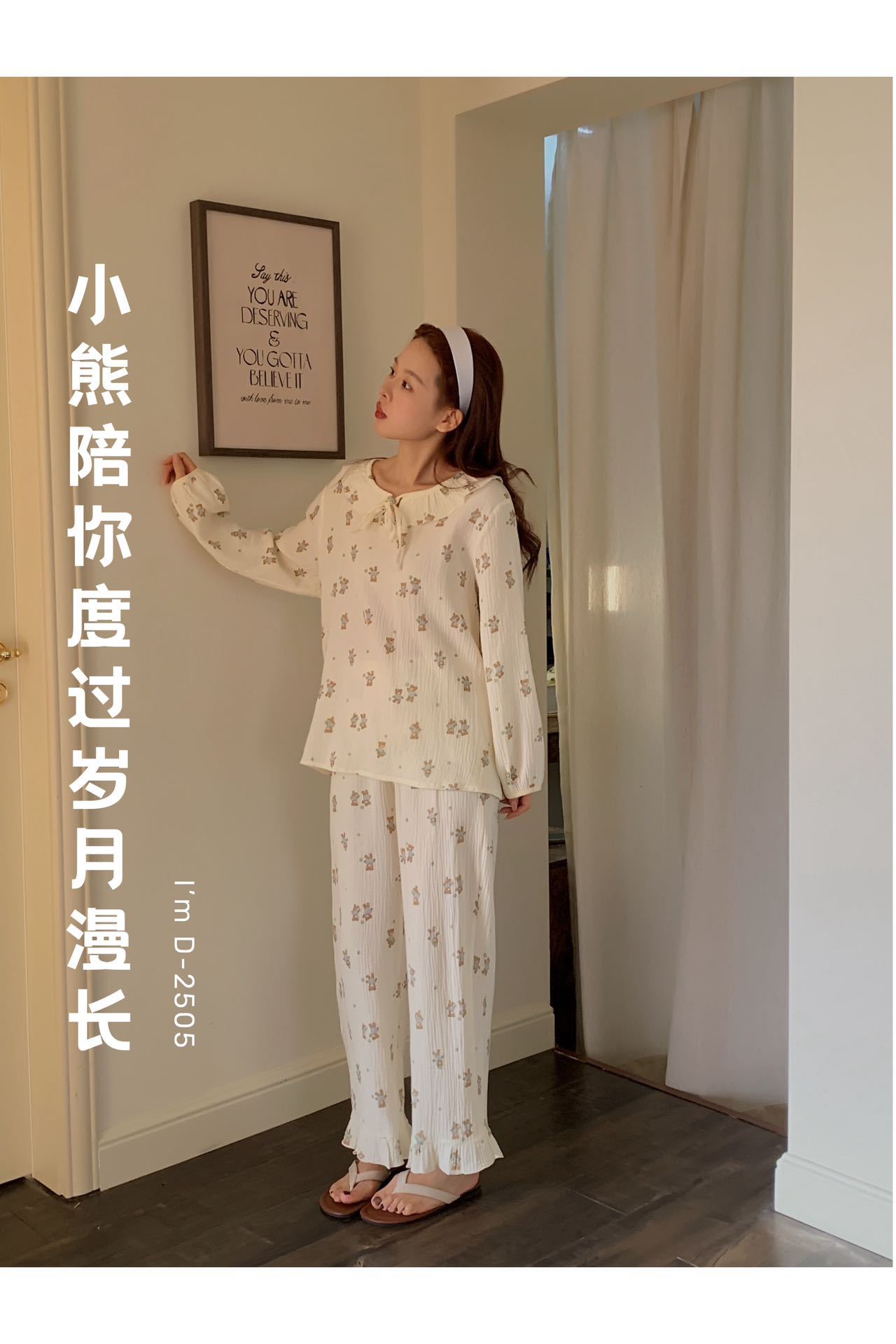 【柔软棉纱】2025新款萌趣小动物全棉纱布家居服套装/娃娃领睡裙 舒适圆领长袖睡衣外穿