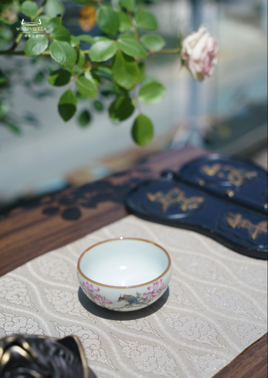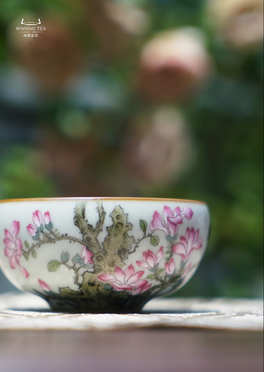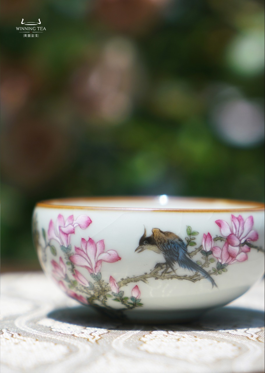 问鼎汝瓷鼎峰系列月白紫金釉老款平口杯(玉兰盛景)(缺货)
