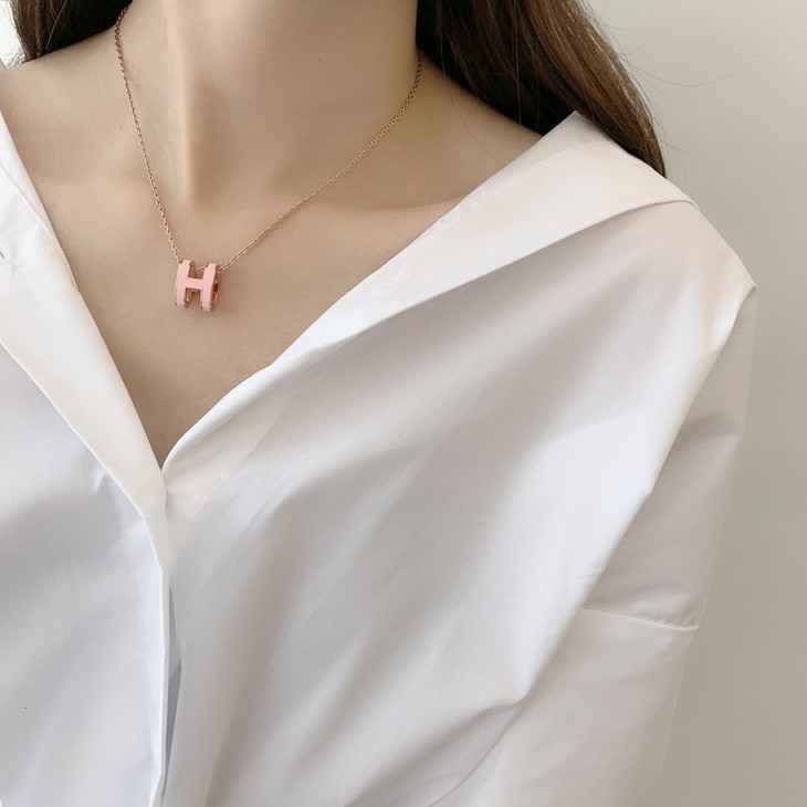 爱马仕Hermes necklace经典款pop 珐琅项链,目前深圳万象城售价:3400+由全球知名的设计师帕洛玛毕加索(Paloma picasso)特别设计的。爱马仕的标志“H ”理念是像女人一样通过绚丽多姿的珐琅色彩,传达不一样的风格态度!用自己的魅力、高贵、优雅的气质去展现每一个女人的风采!