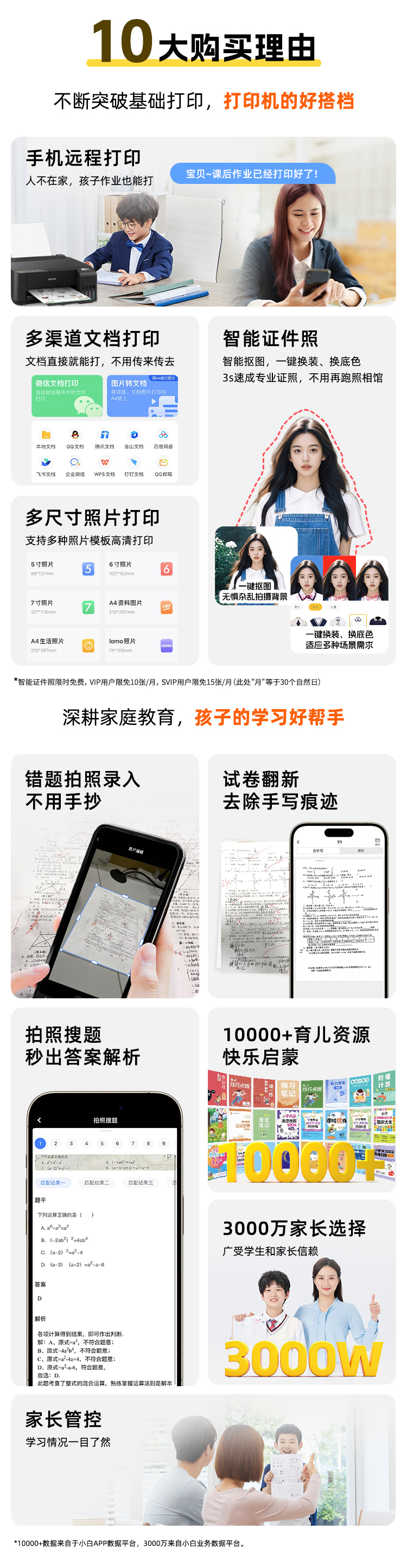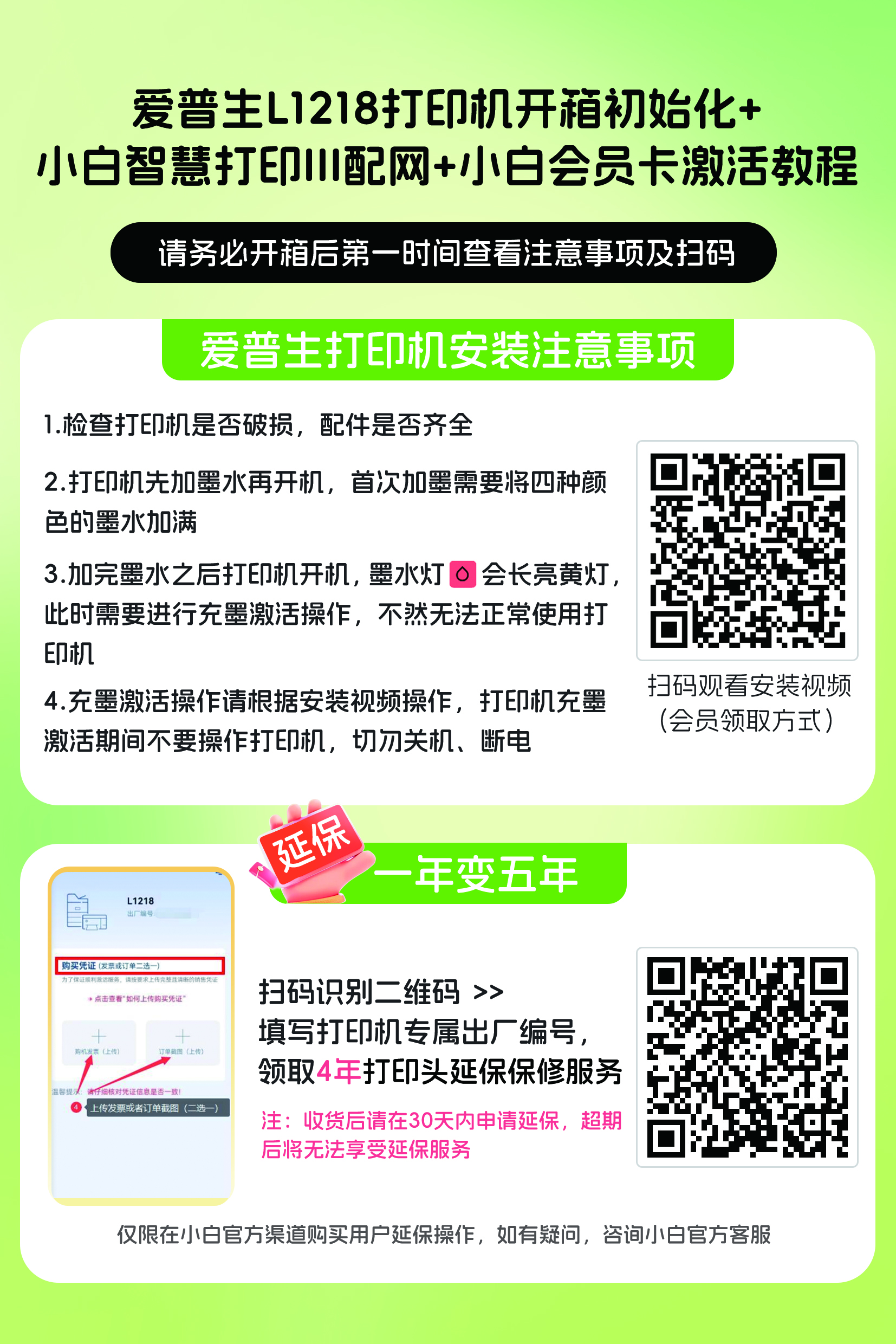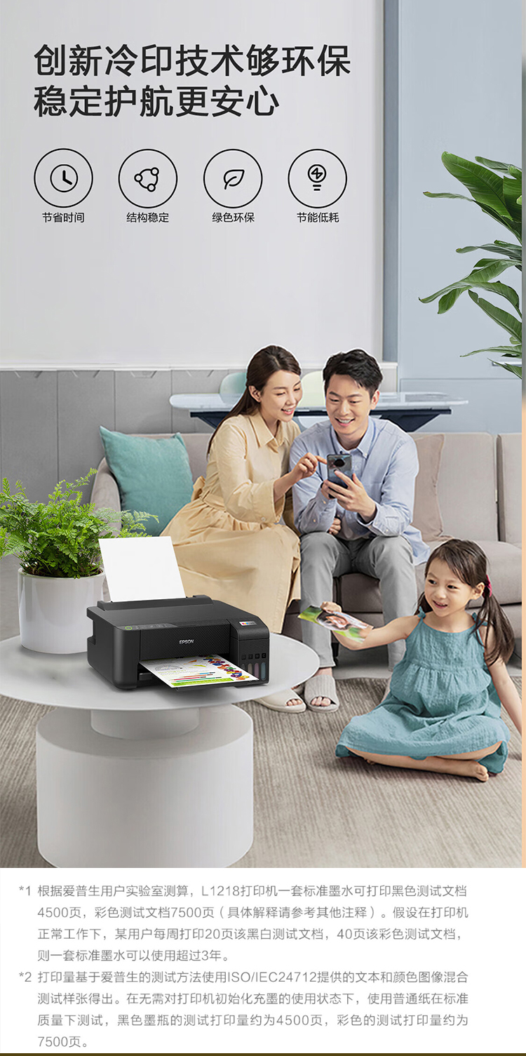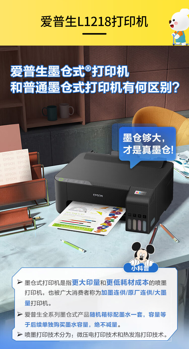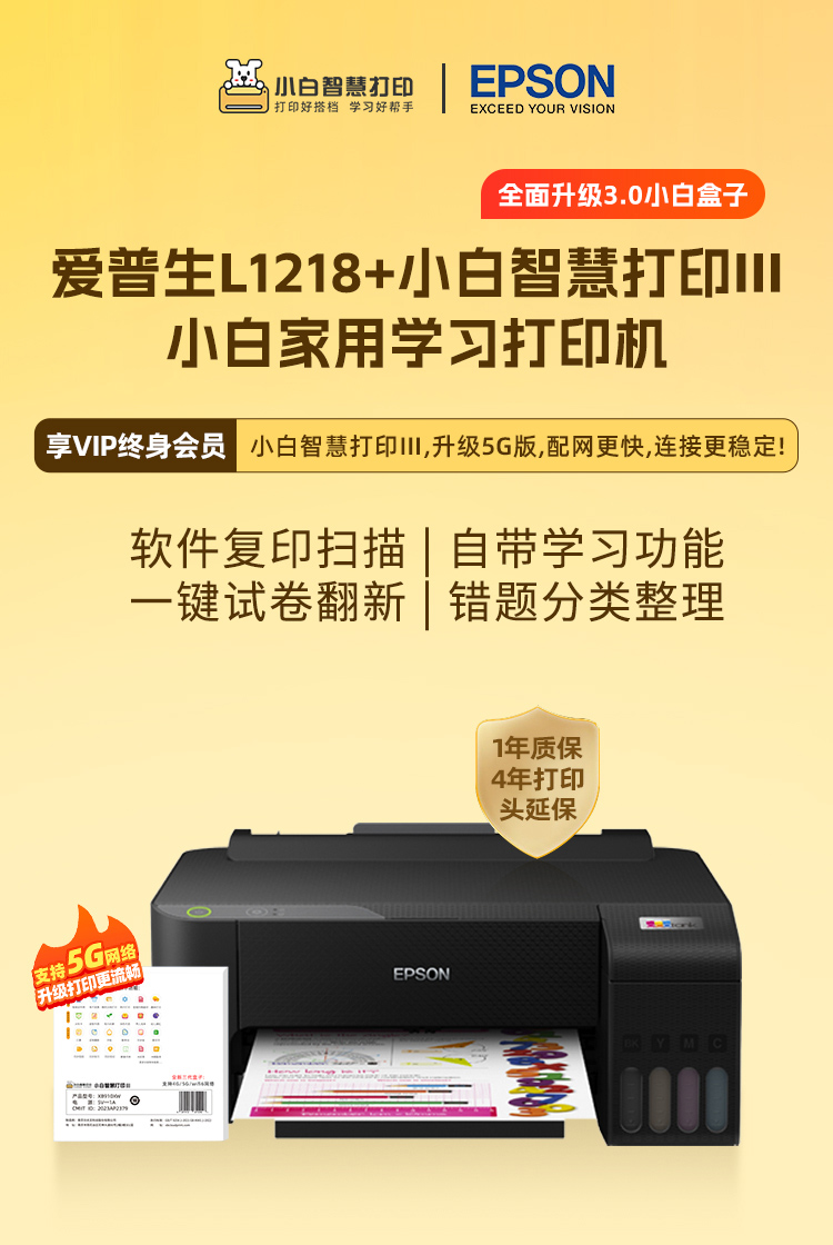 【常爸】爱普生L1218+小白智慧打印III盒子终身VIP+12年试卷权益墨仓式原装彩色A4家用小型学生照片文档作业试卷错题打印机