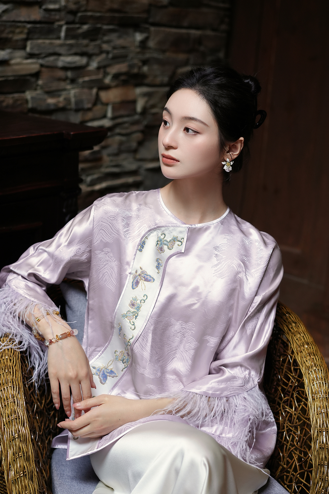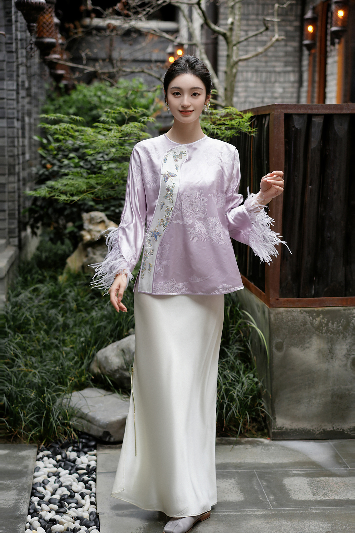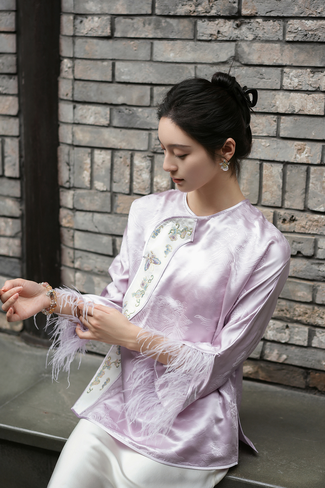 盛唐牡丹盛奢系列| 岩栖谷隐盘金打籽福禄真丝上衣