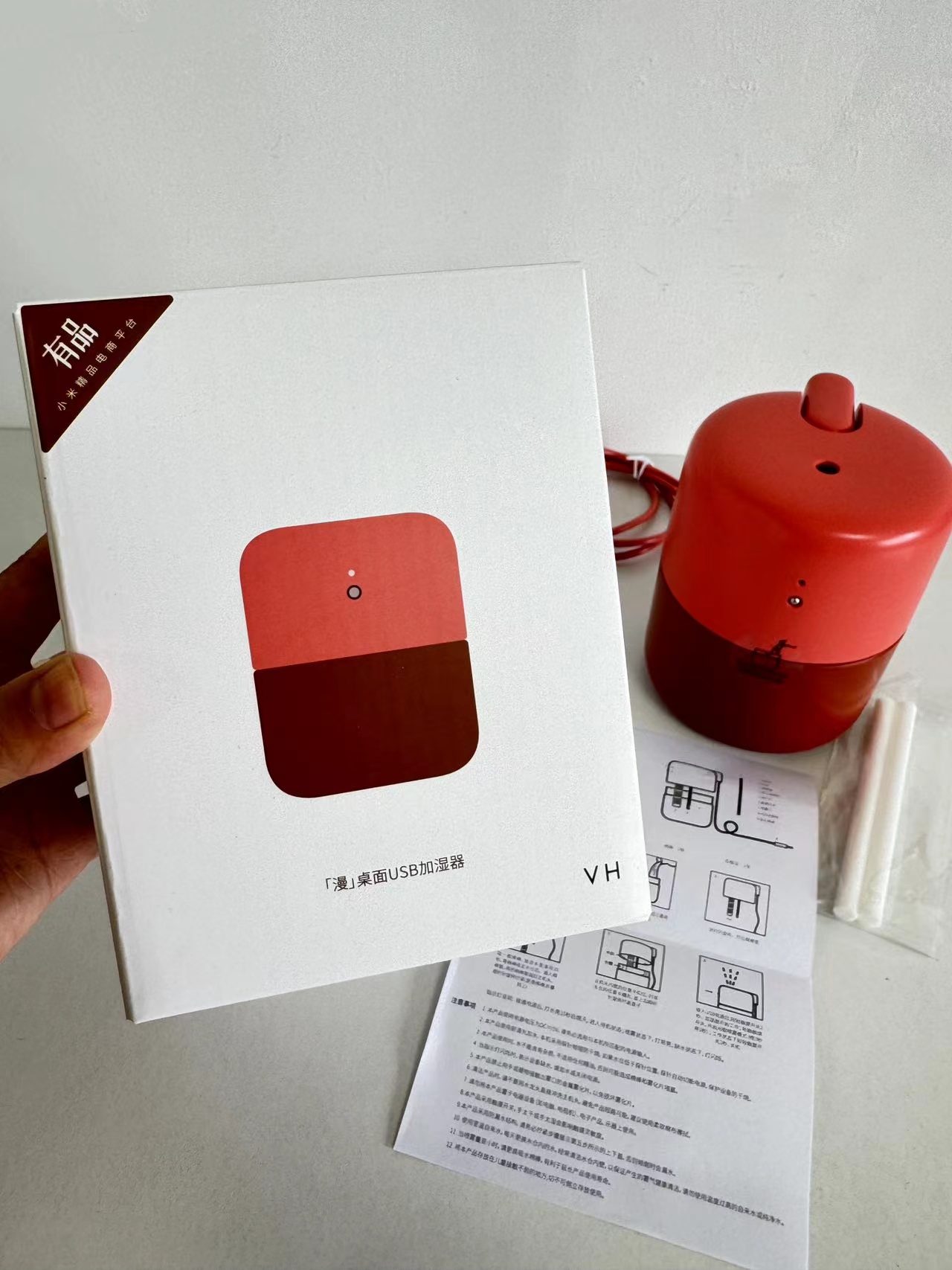 加湿器!桌面usb加湿器 主打精 致桌面小家电。告别秋冬季干燥,床头,办公桌上B备加湿器!采用撞色设计,上半部分为浅粉色,下半部分为深酒红色,造型圆润可爱,兼具装饰性与实用性。通过USB供电,为桌面环境补充湿度,缓解干燥,适用于办公室、卧室等小空间场景。配备说明书、两根白色棉棒(用于导水加湿)及同色系USB电源线,安装操作简单。