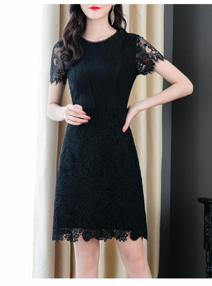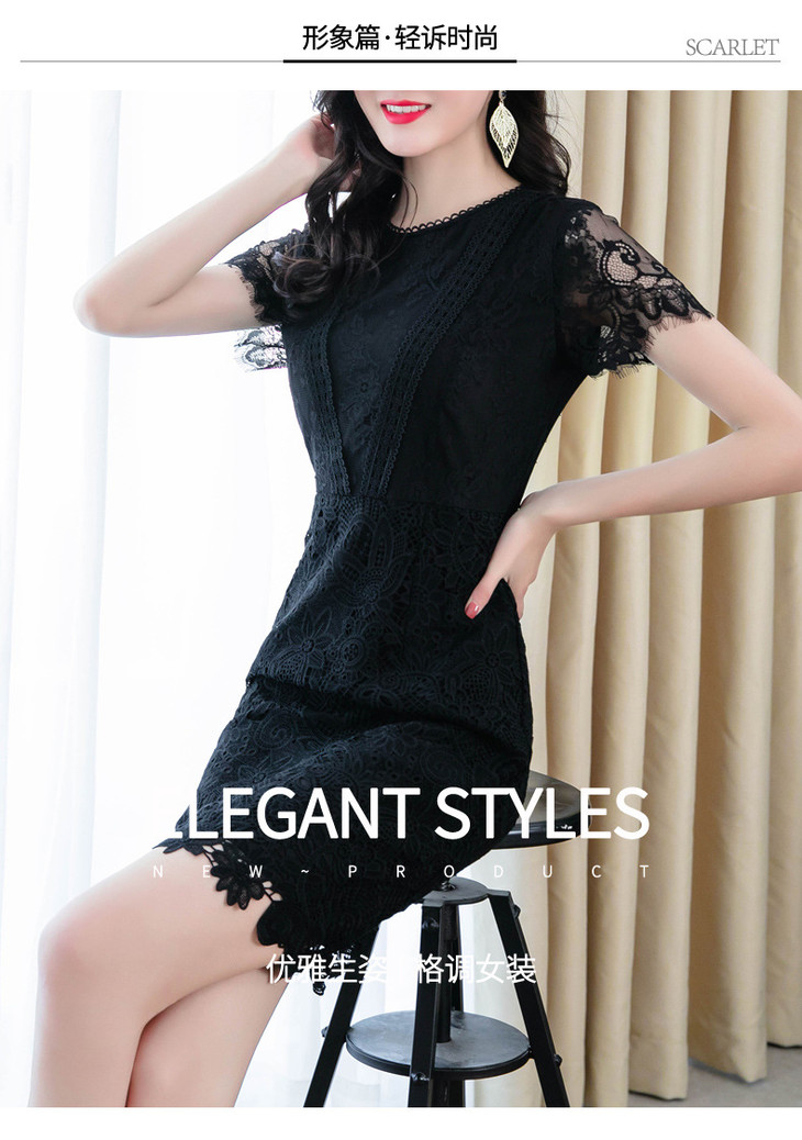 【服饰鞋包】夏季小众仙女裙chic温柔黑色蕾丝连衣裙