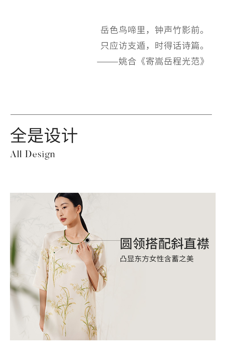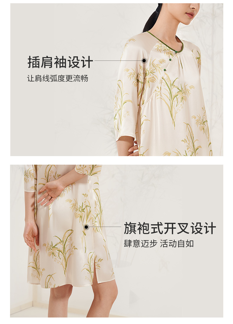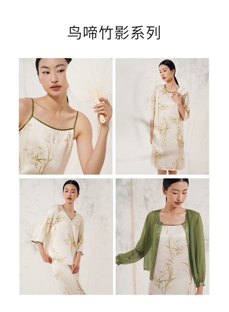 【鸟啼竹影】金三塔100%桑蚕丝家居服新中式真丝时尚雅致印花睡裙新品 YSFEA303