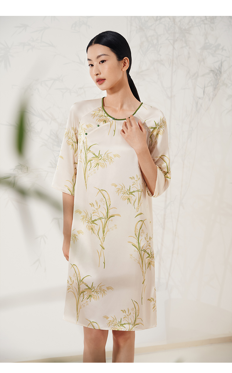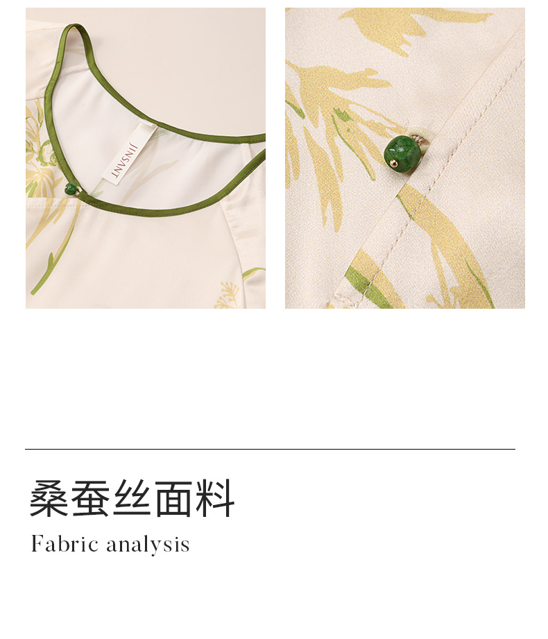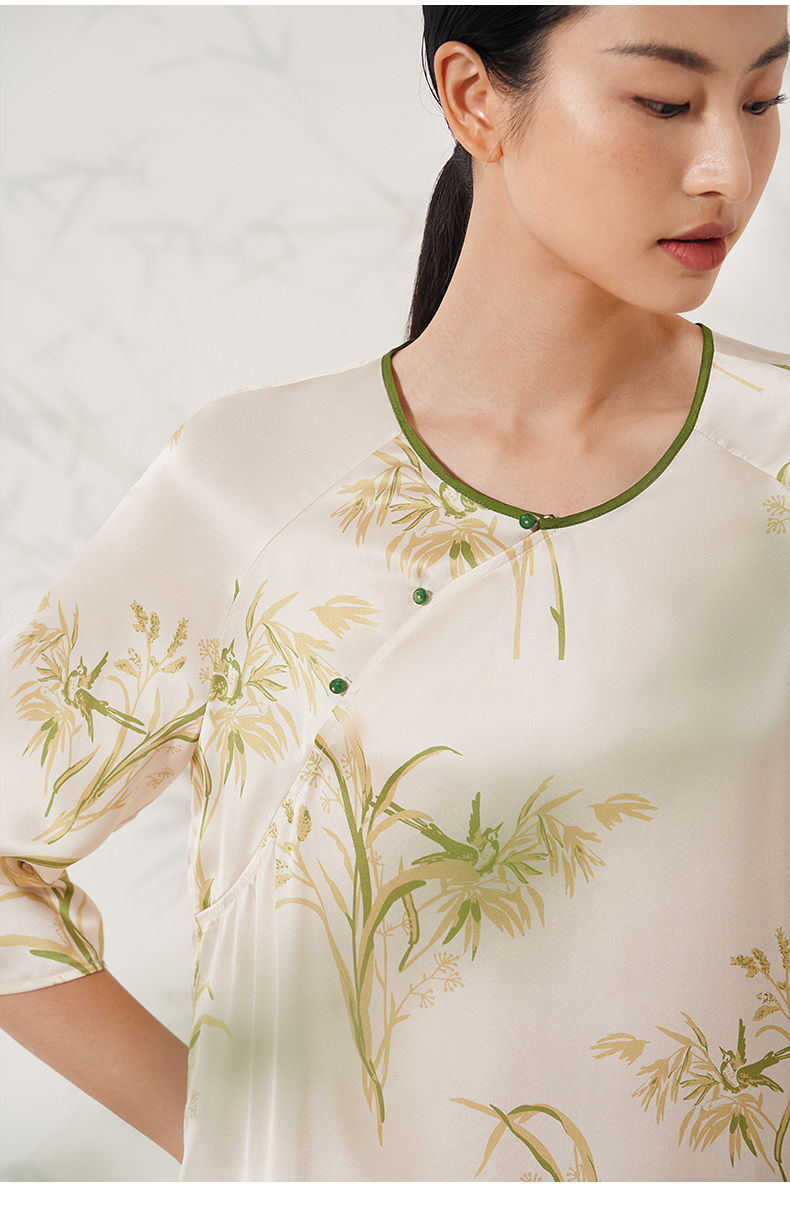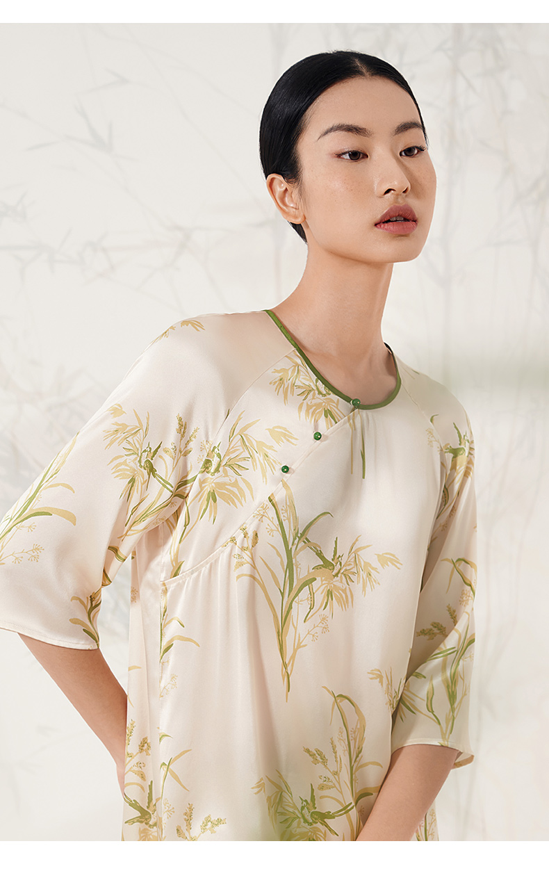【鸟啼竹影】金三塔100%桑蚕丝家居服新中式真丝时尚雅致印花睡裙新品 YSFEA303