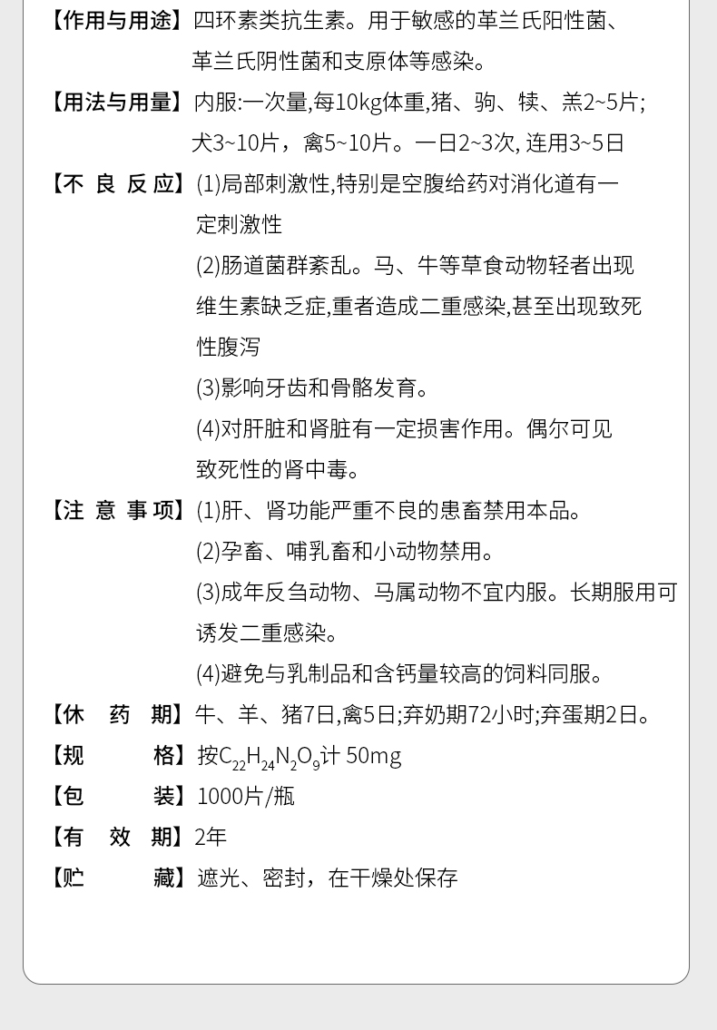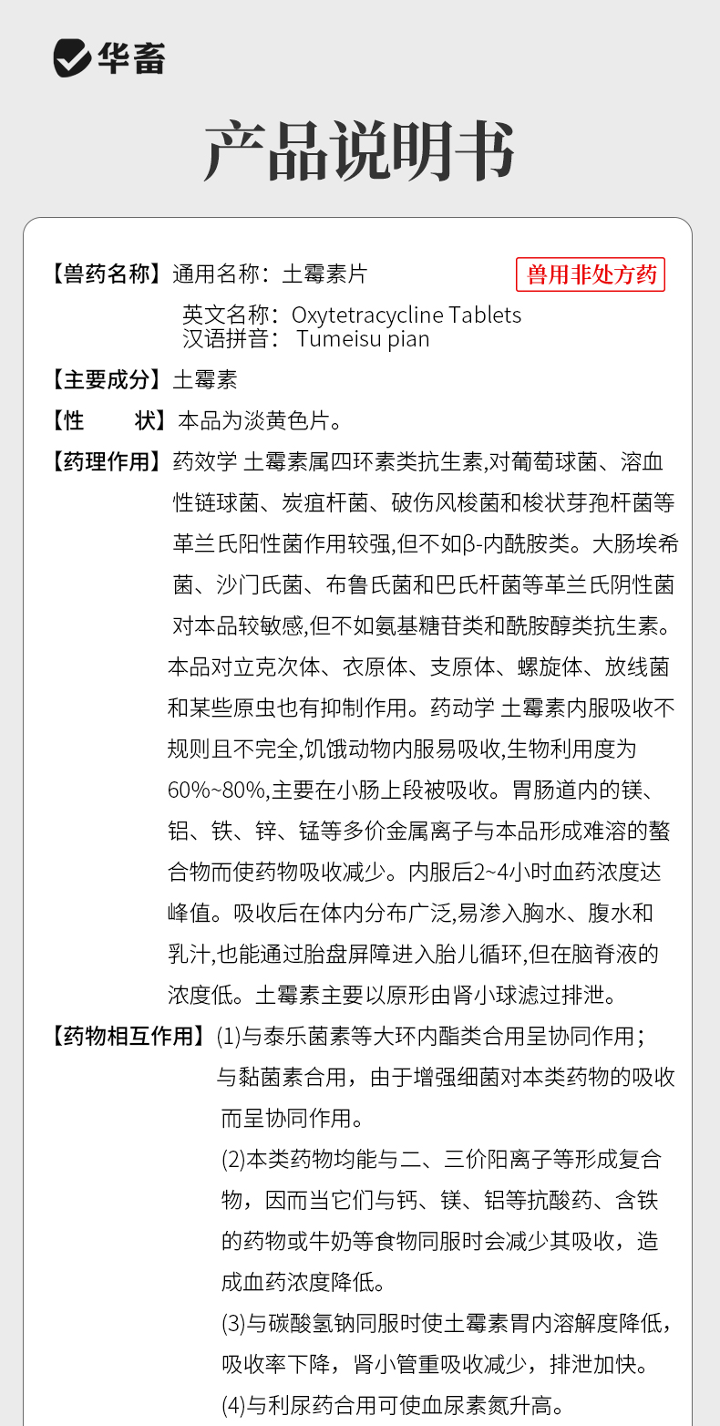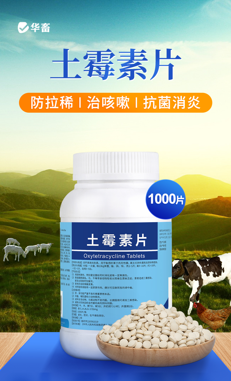 【积分兑换】华畜土霉素片1000片 国标兽药 肠炎腹泻抗菌消炎
