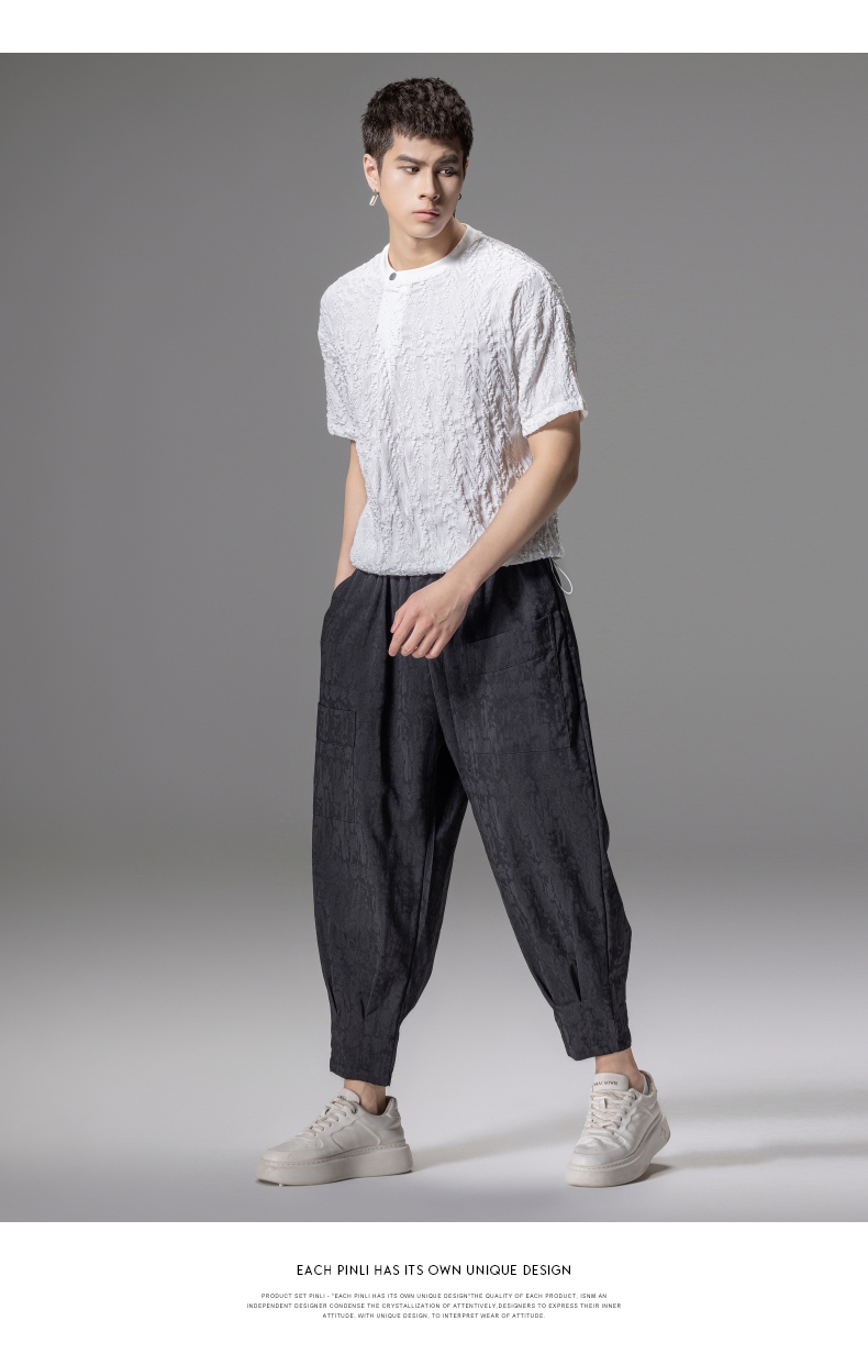 PINLI品立2025夏季新款褶皱设计感休闲裤潮牌男百搭宽松直筒长裤GD252117313