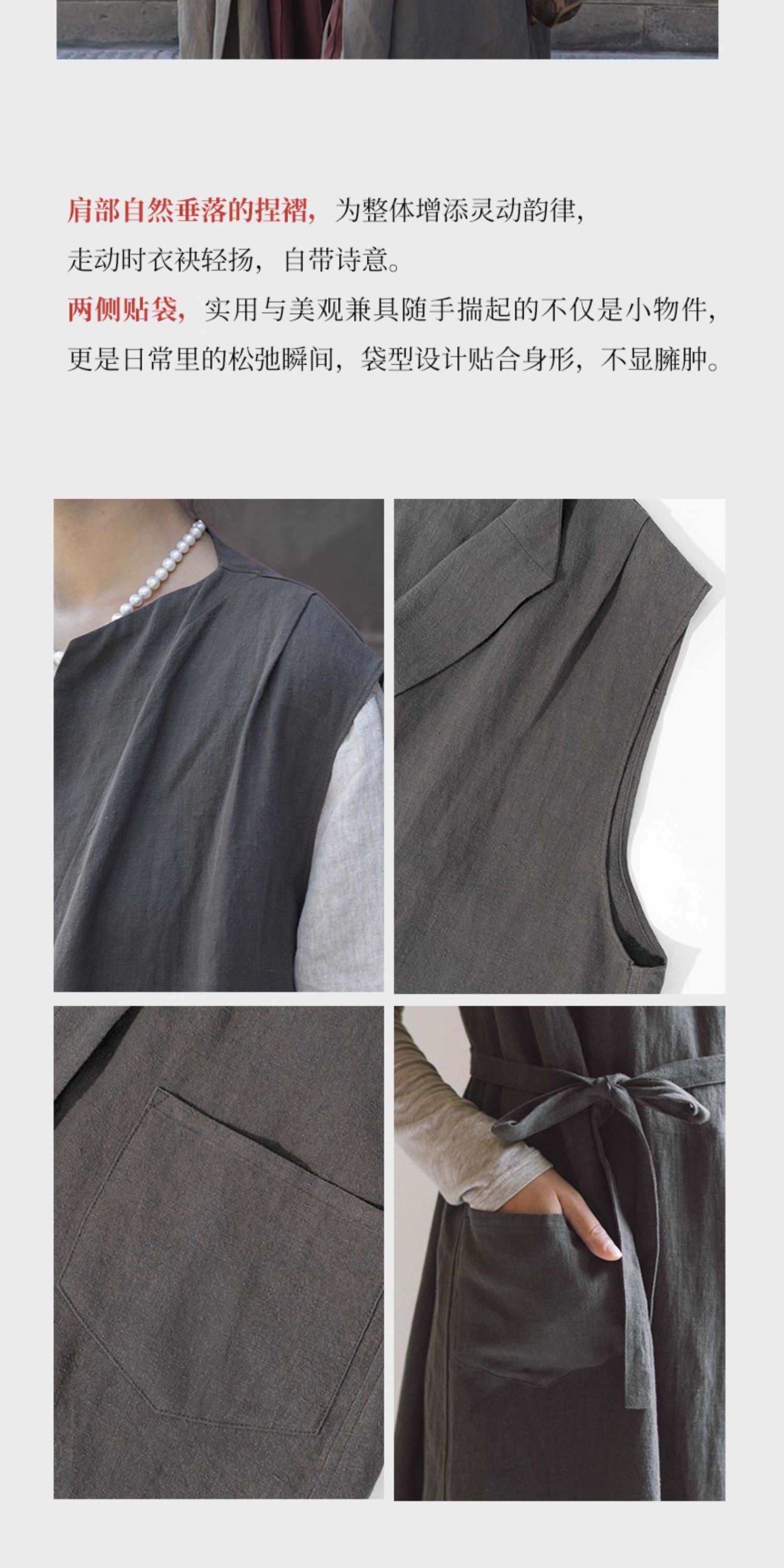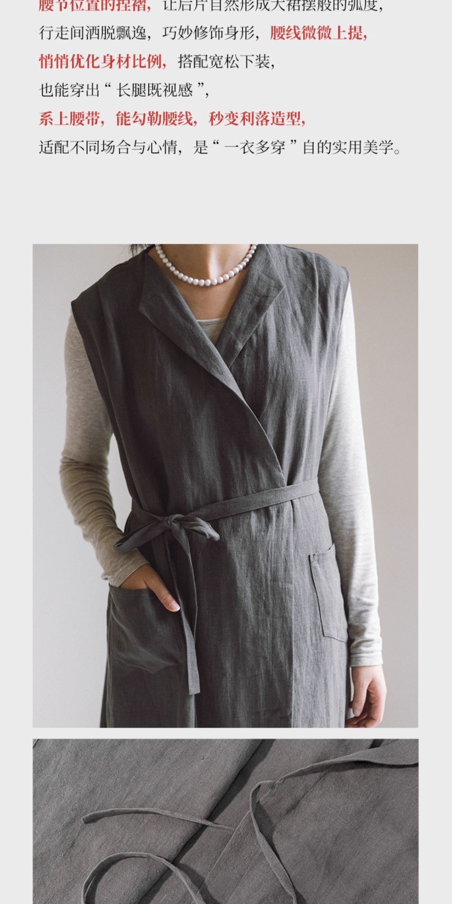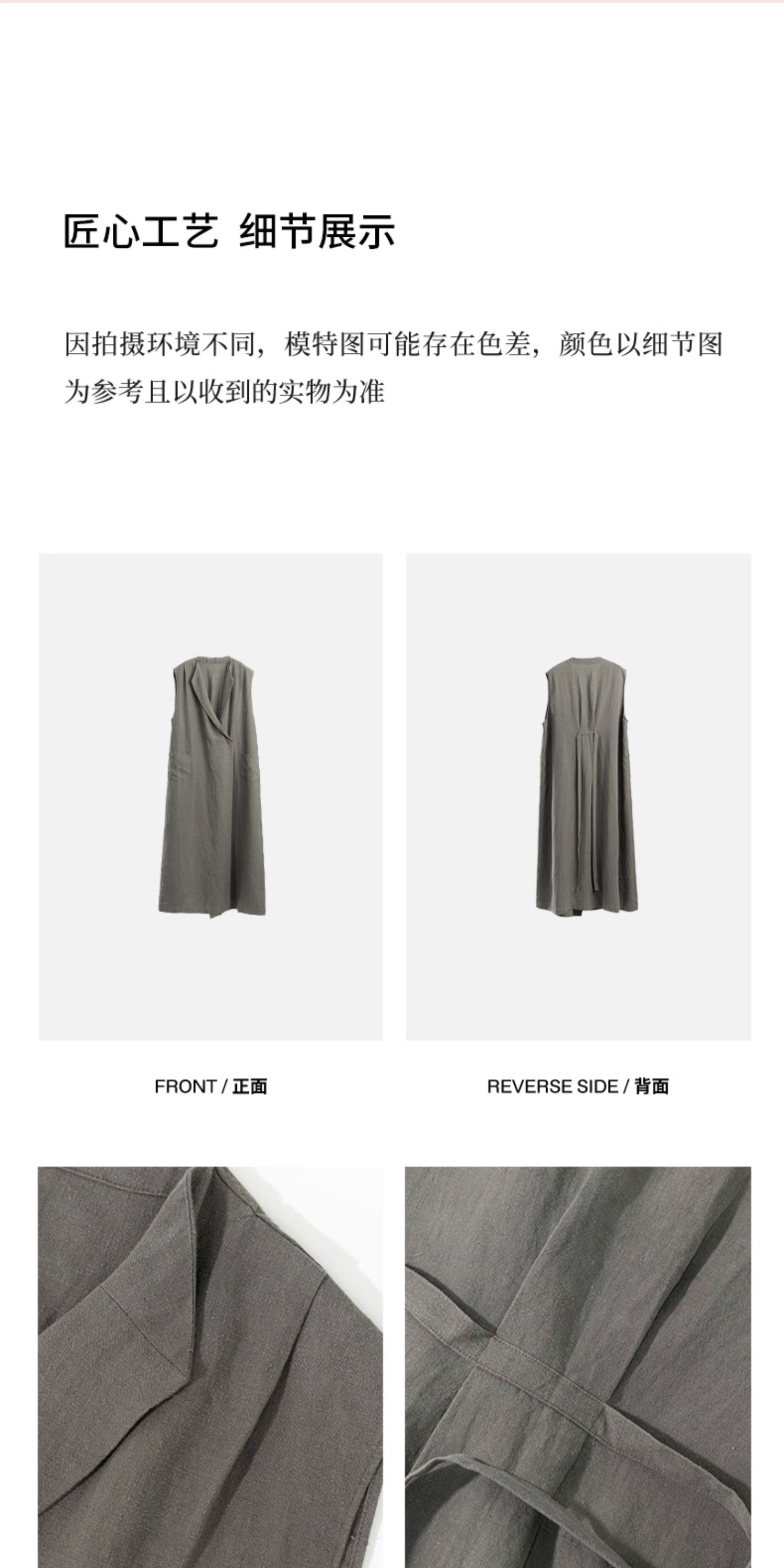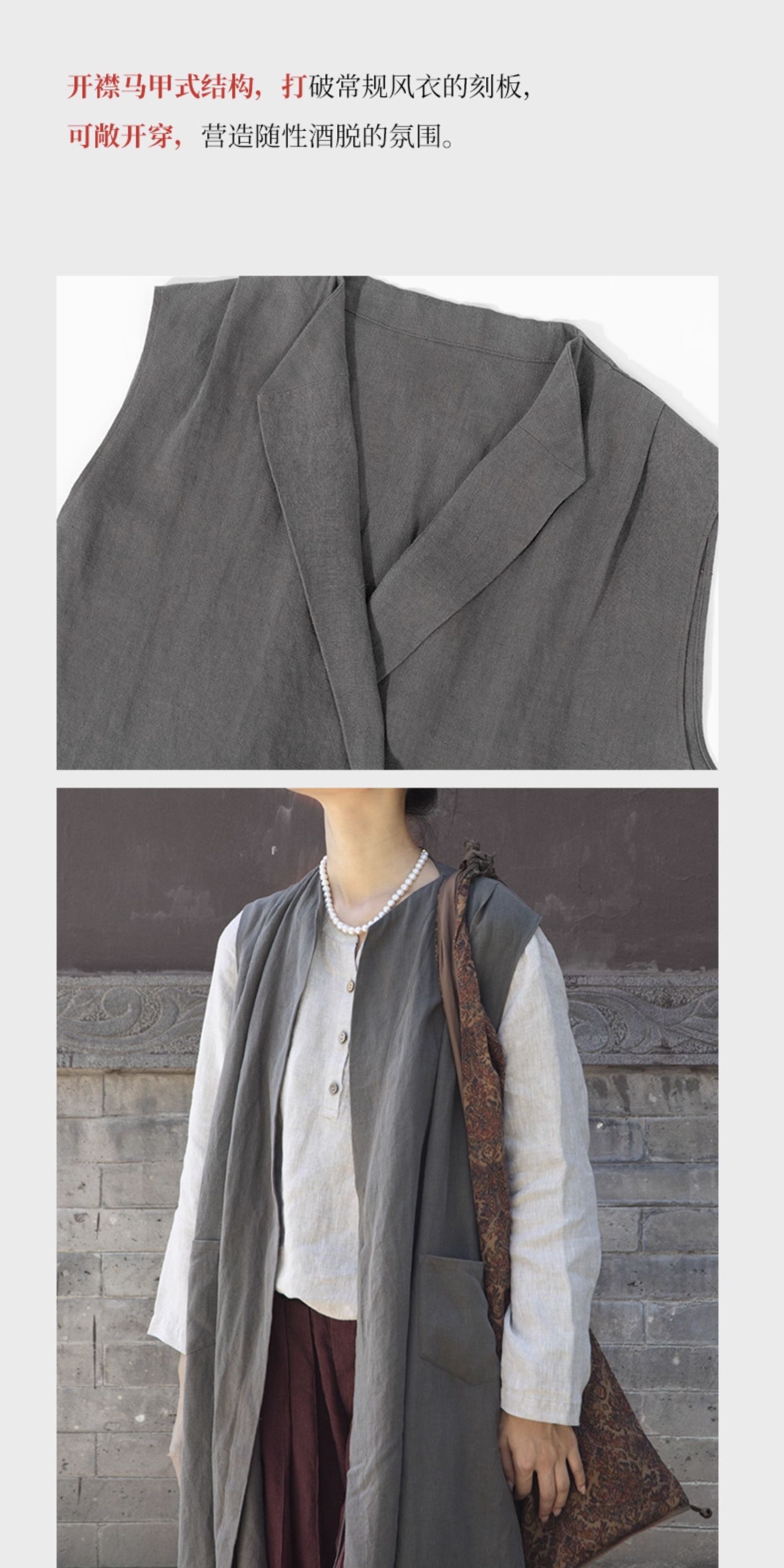 绽放599朵/无束风衣·汉麻开襟无袖马甲式风衣中长款文艺外搭新款