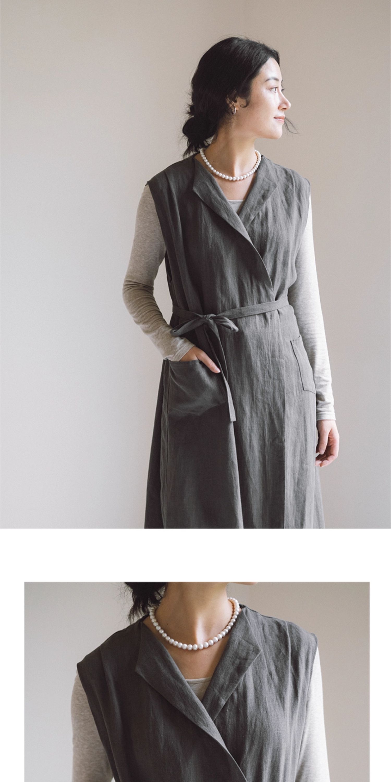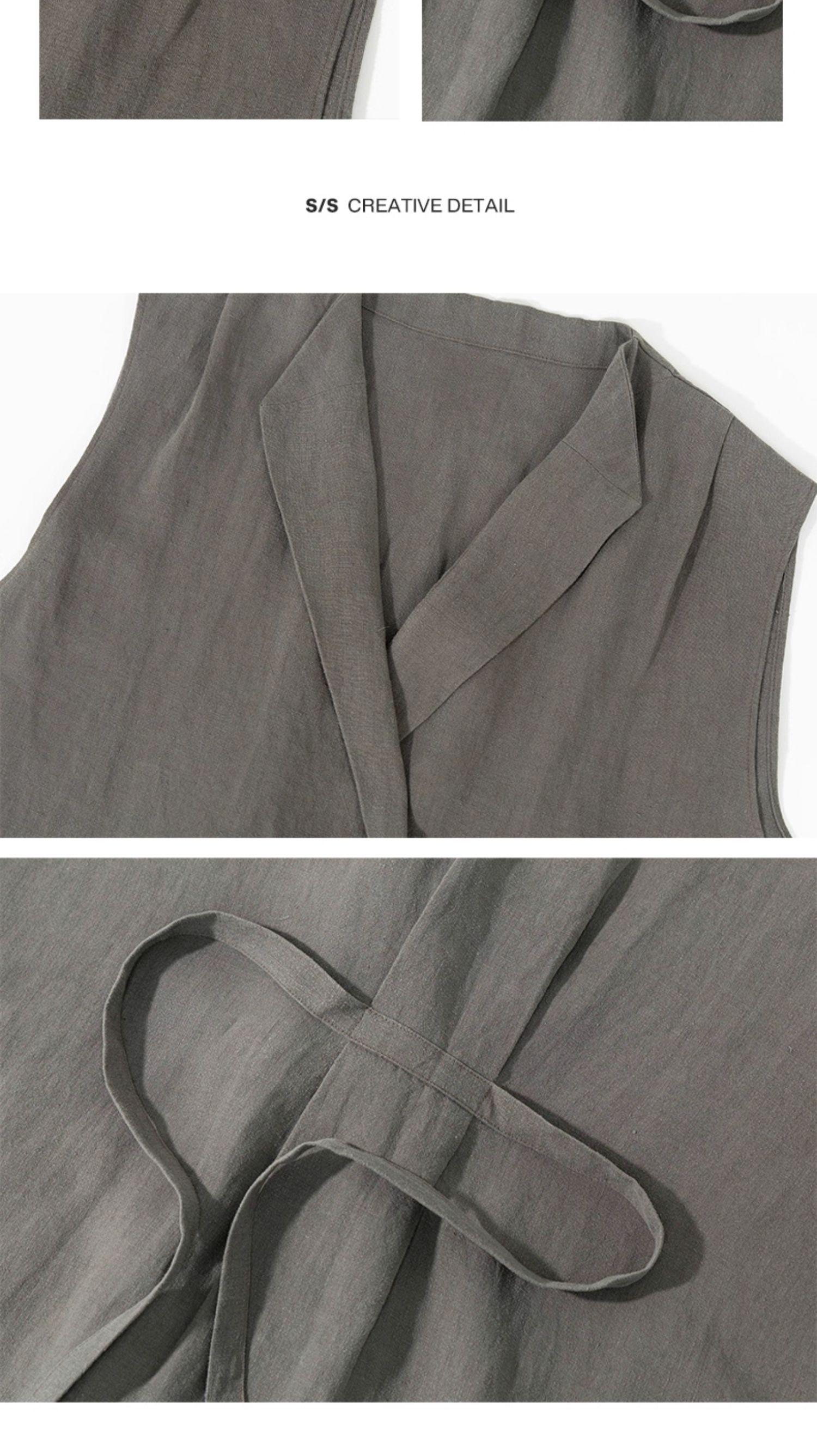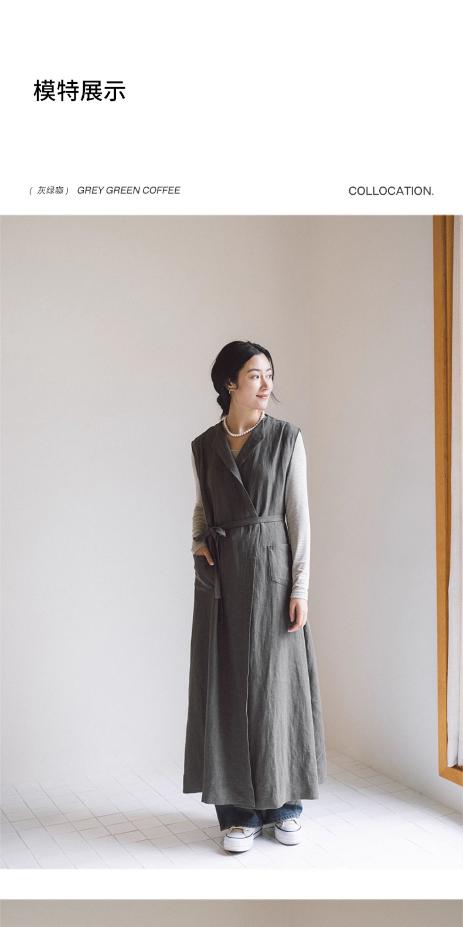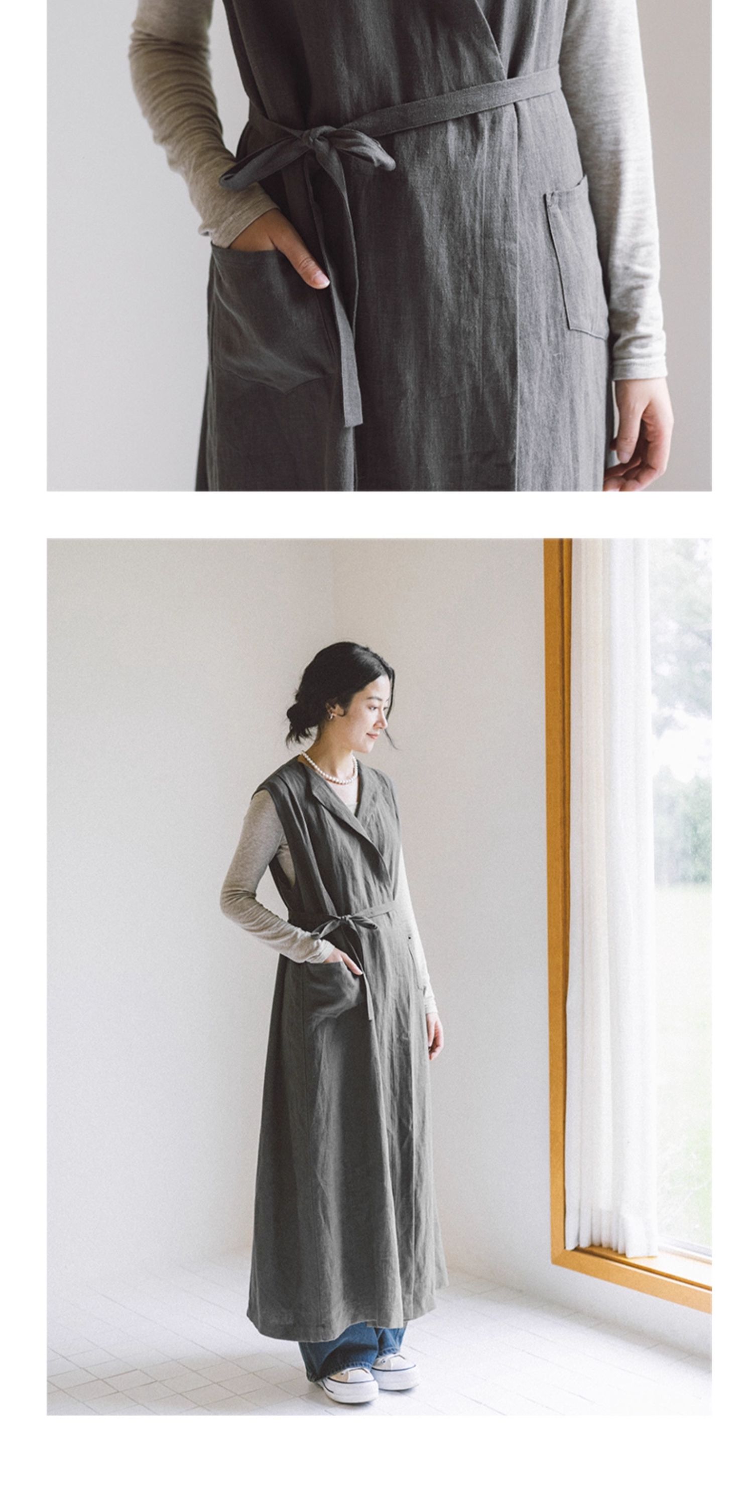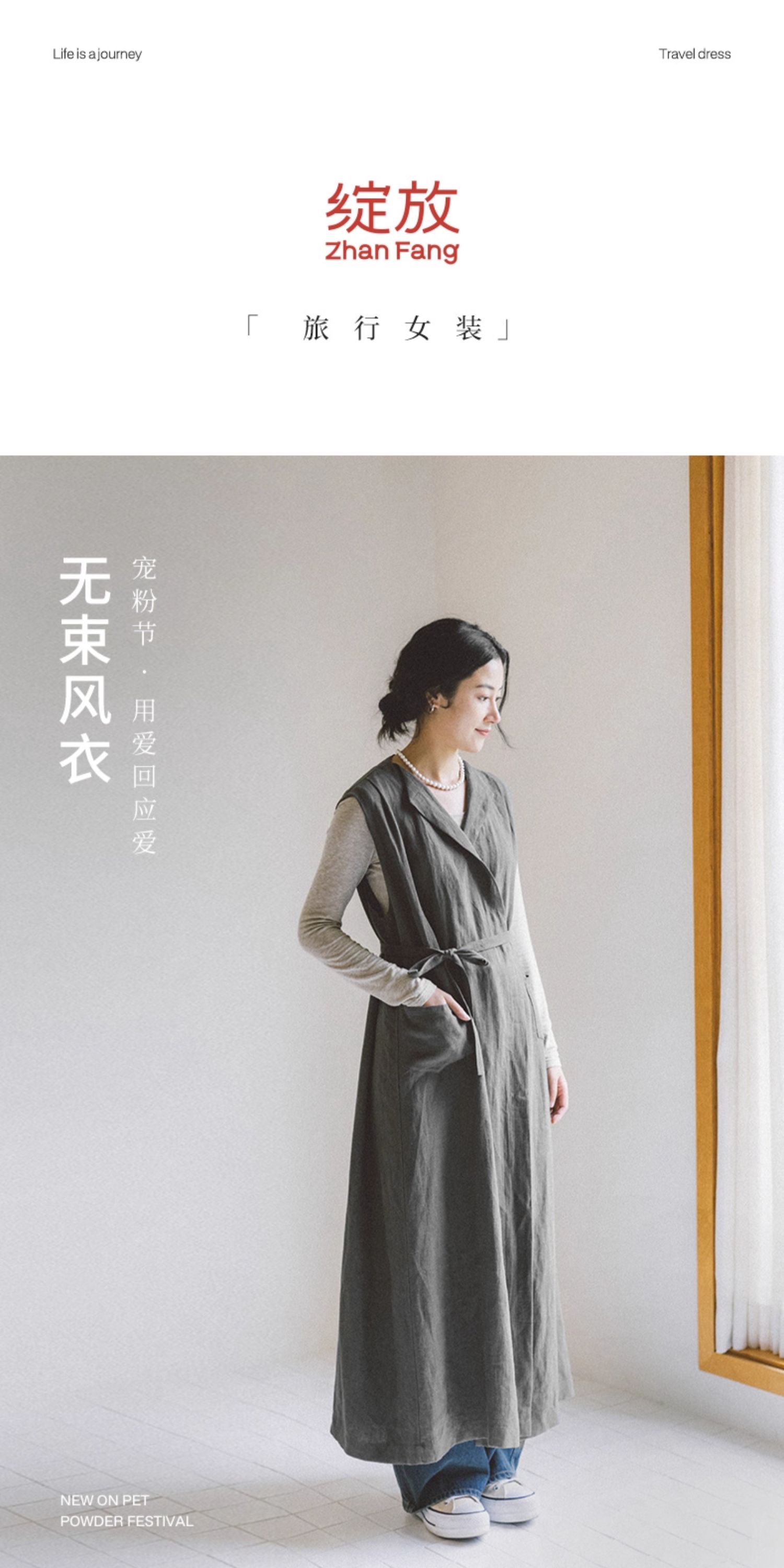 绽放599朵/无束风衣·汉麻开襟无袖马甲式风衣中长款文艺外搭新款