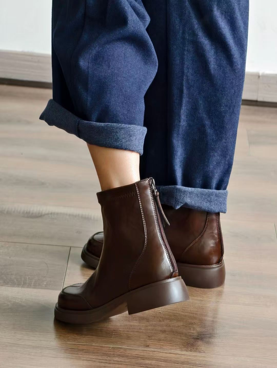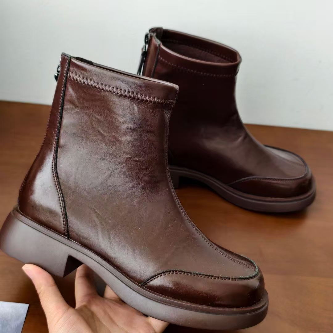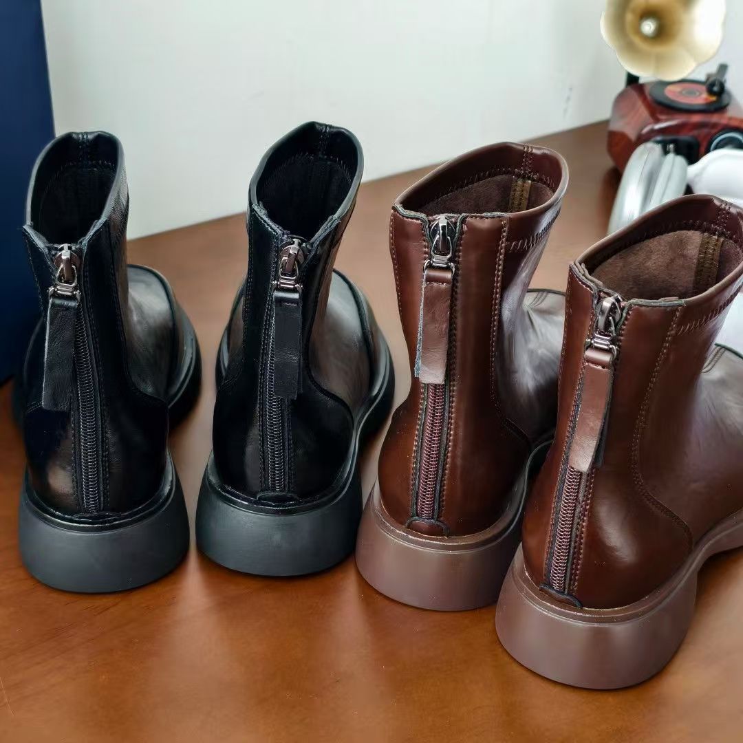 经典女士加绒时尚短靴,鞋身全部使用进口软牛皮