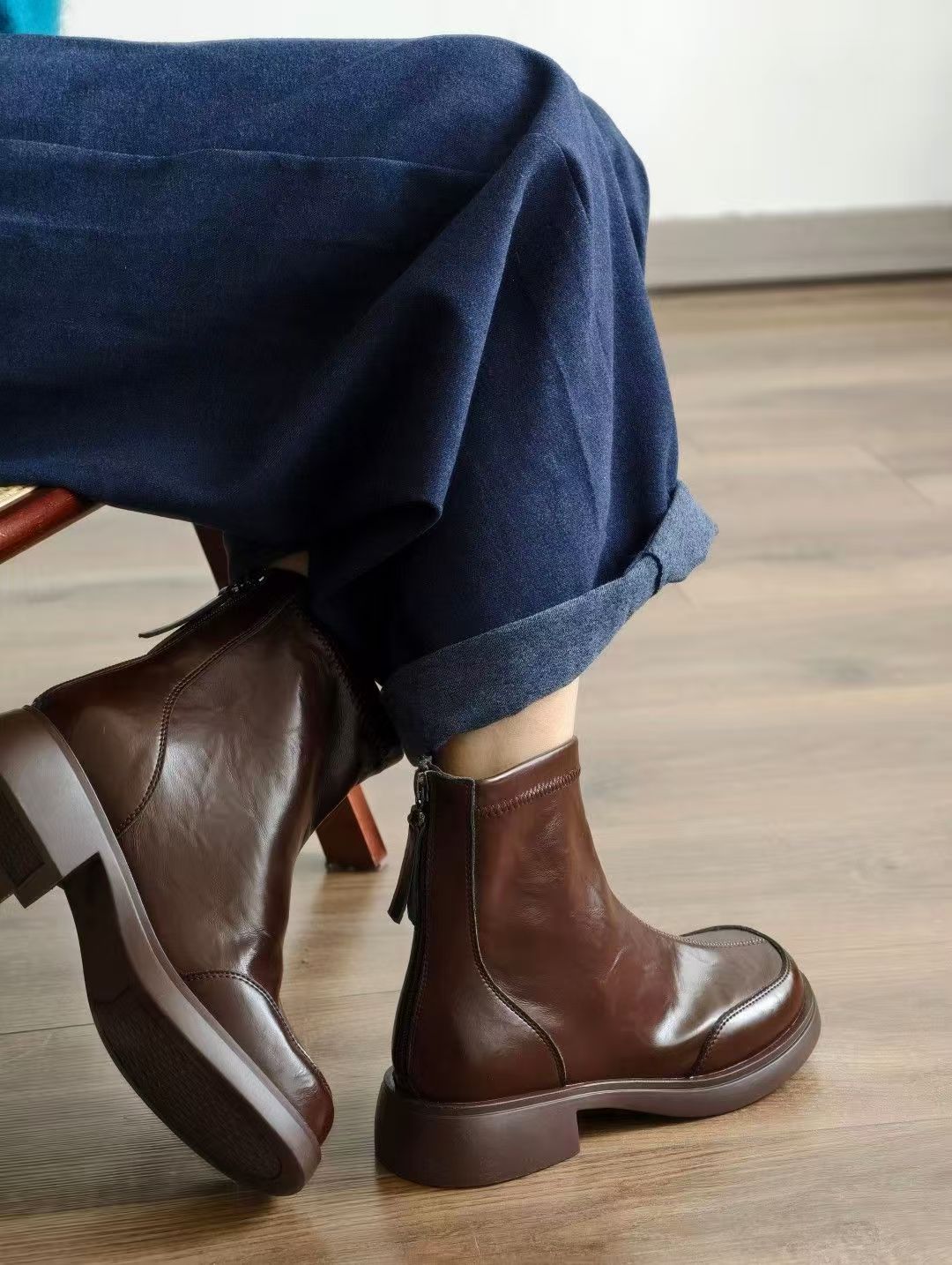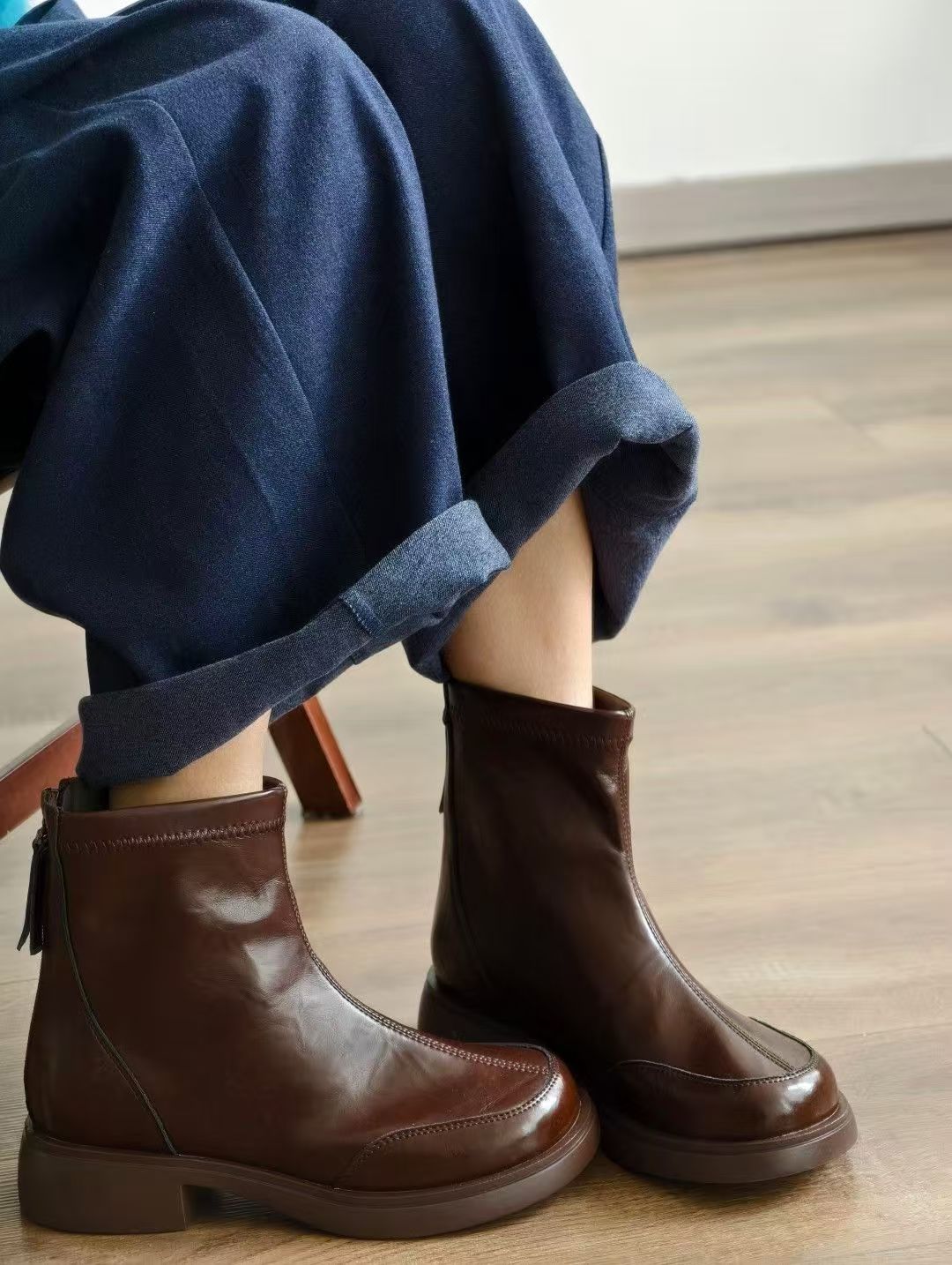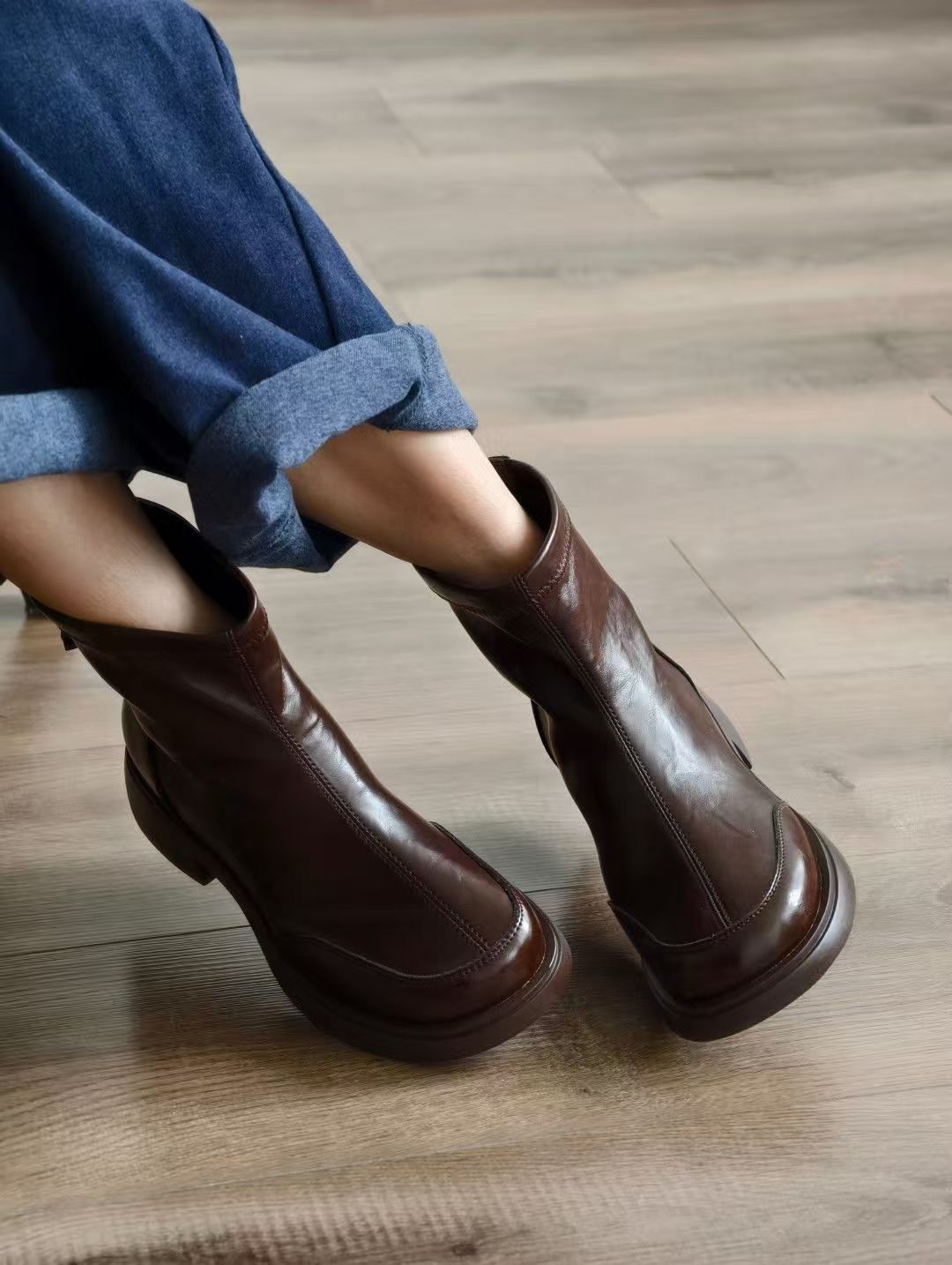 经典女士加绒时尚短靴,鞋身全部使用进口软牛皮