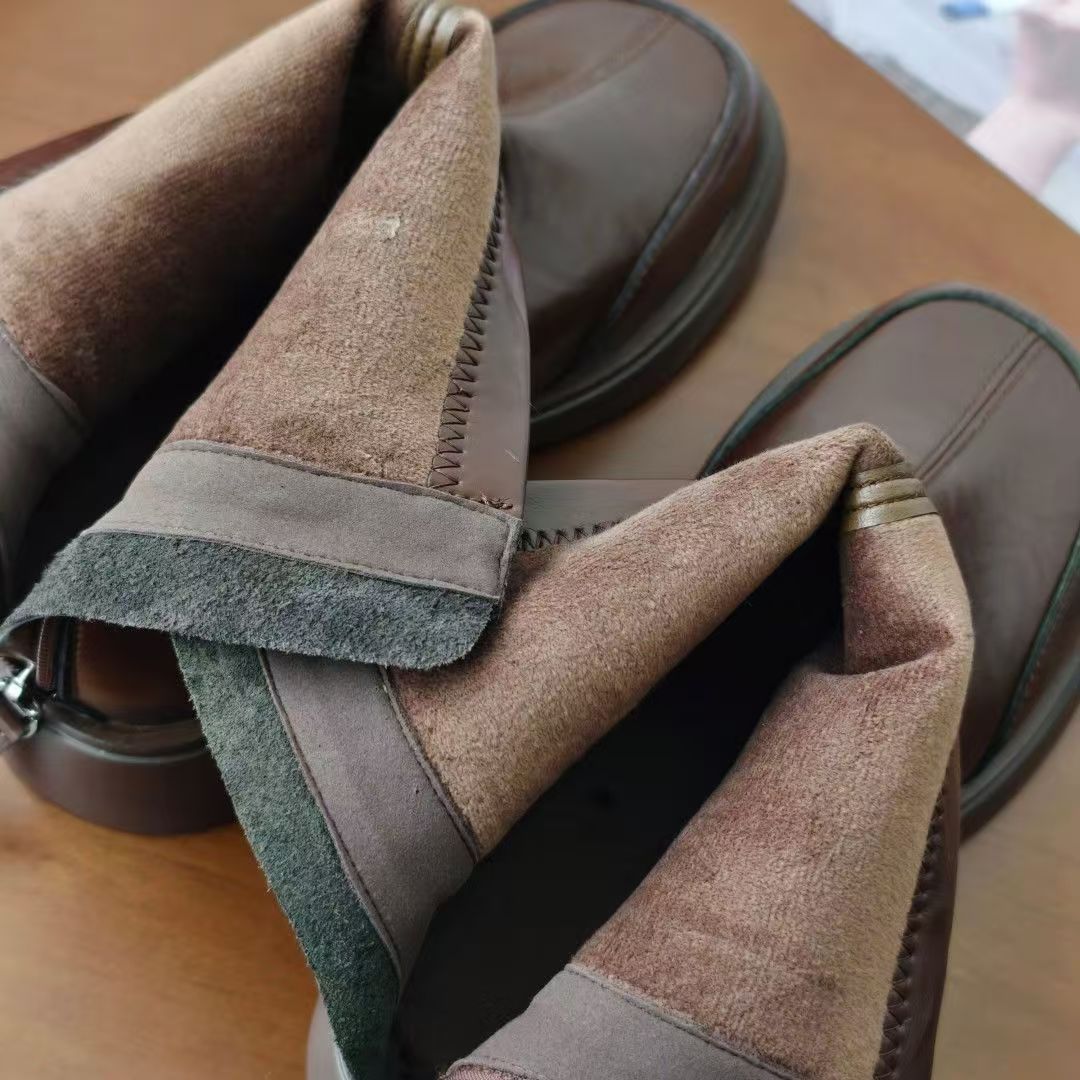 防滑耐磨橡胶大底 后拉链方便穿脱 冬季绒里高保暖。