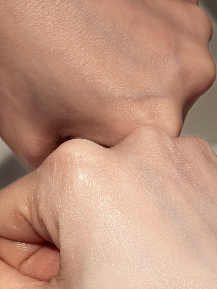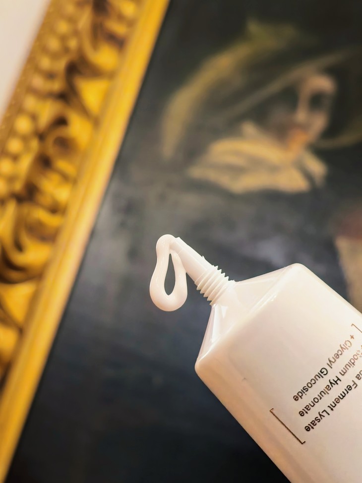 小白管的使用感也很惊喜。拧开盖子是尖尖头,能精准控量,膏体看着厚实,其实很轻薄,推开瞬间就像融化在皮肤上,不会有厚重粉感。还有0.3微米的磨皮粉体细腻贴合,还有些柔焦效果,毛孔也能隐形哦,就像是用了原生好皮滤镜,即便在自然光下看,皮肤也是均匀透亮!日常通勤或微瑕疵肌,上脸后打个腮红、涂下口红就能出门,清爽又显气色;如果有痘印斑点,可以用它和粉底液按2:1的比例,再加点喷雾调和,再用粉扑按压,既有素颜霜的清透感,又能保留粉底液的遮瑕力,持妆更服帖,还不会假面。