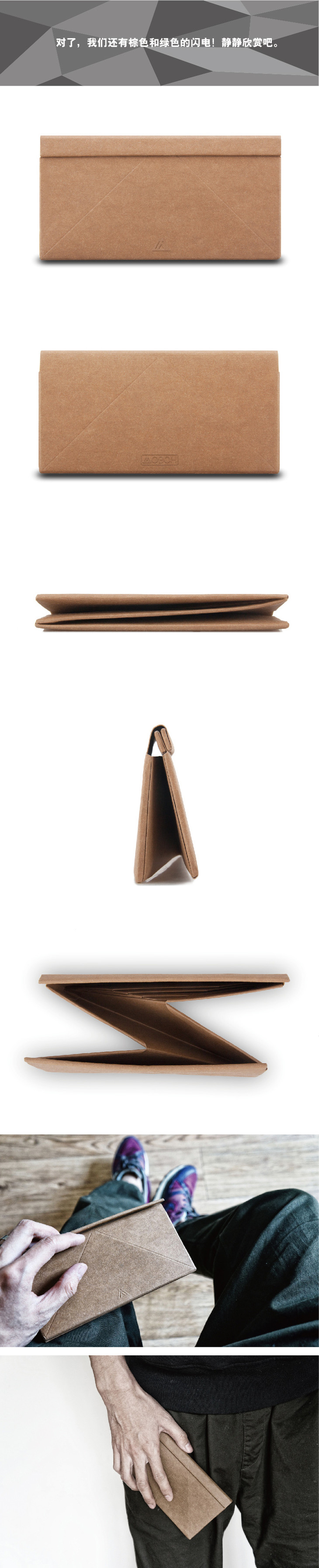 MOBOH水洗牛皮纸闪电折学 长款钱包 简约搭扣钱夹抖音同款礼物