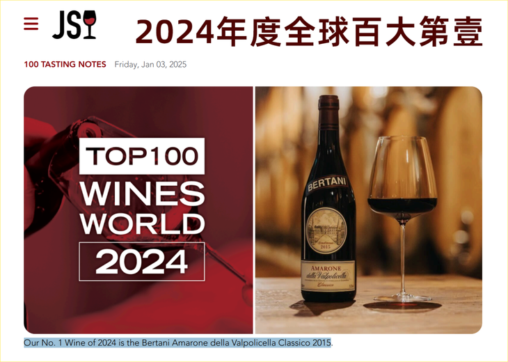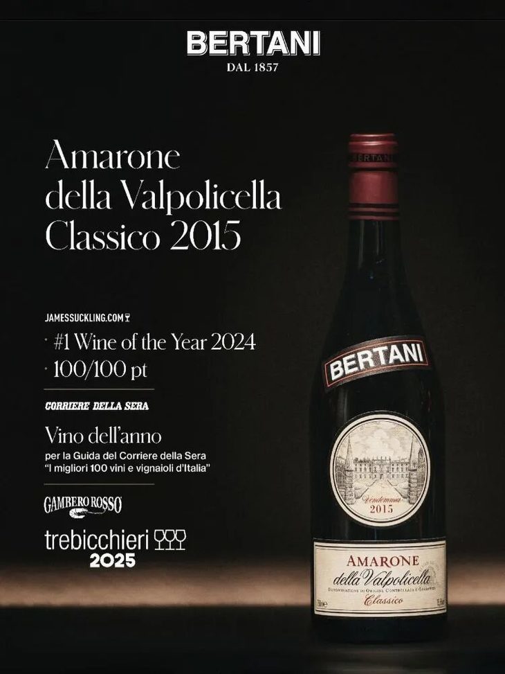 重磅!2024全球葡萄酒之首 贝塔尼阿玛罗尼经典红葡萄酒 Bertani Amarone della Valpolicella Classico 2015