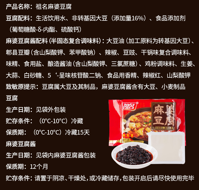 祖名麻婆豆腐麻辣豆腐炒菜料酱料四川特产调味料包特色菜鲜烧豆腐
