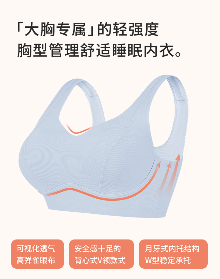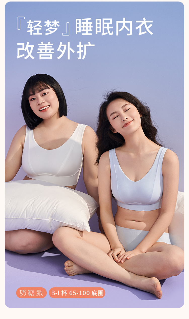 奶糖派大胸睡眠内衣轻梦防外扩防下垂舒适无钢圈女士居家调整文胸