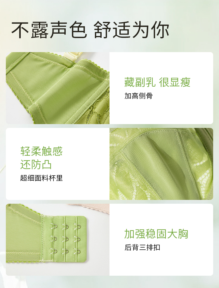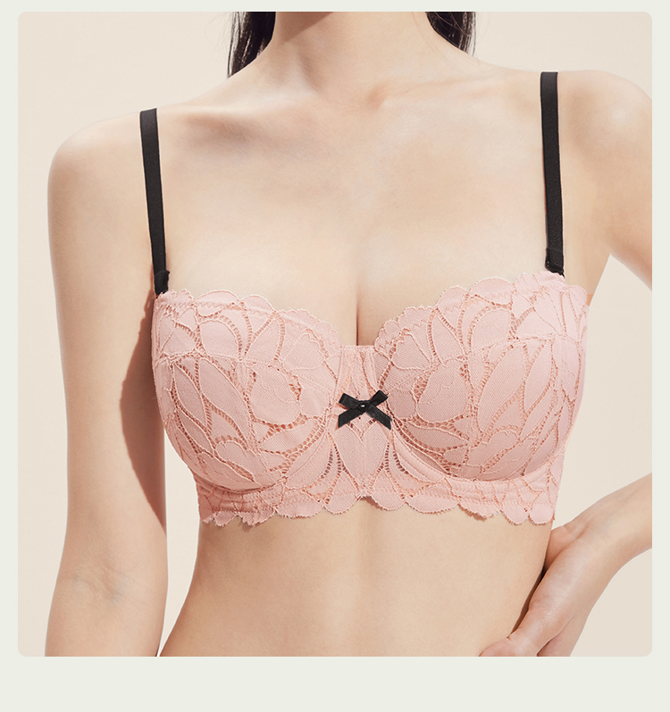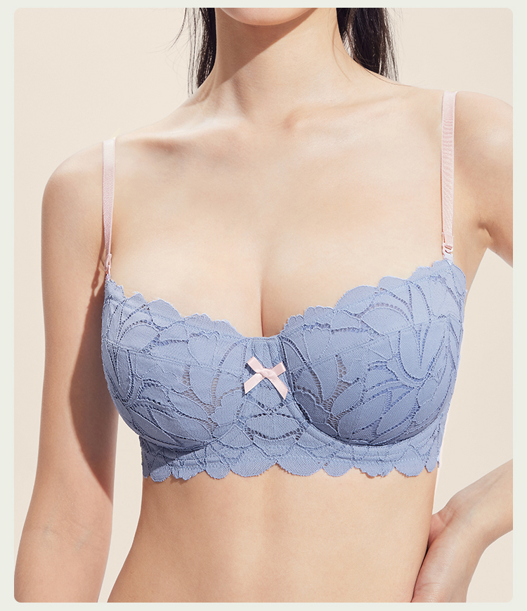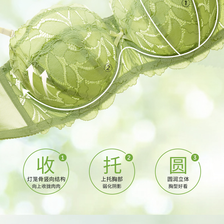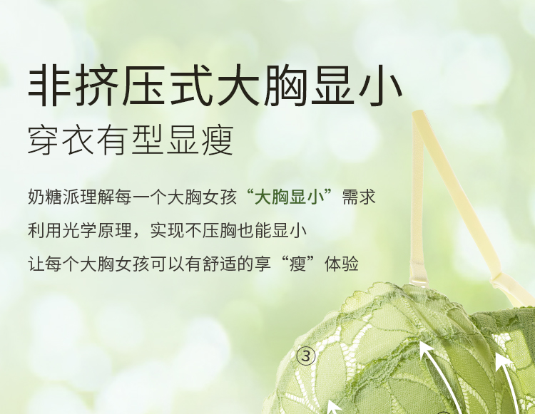 【2月积分兑换】奶糖派【叶漫】大胸显小圆圆杯超薄半杯撞色防凸点蕾丝内衣