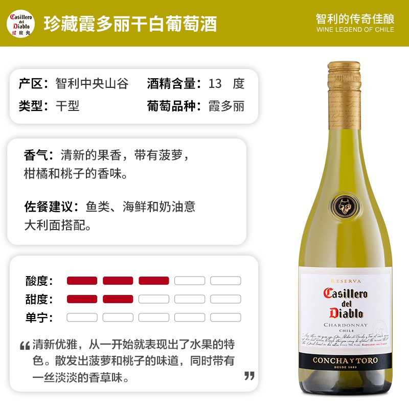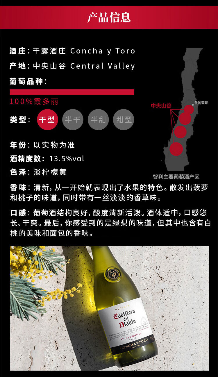 智利原瓶进口干露红魔鬼霞多丽干白葡萄酒 750ml