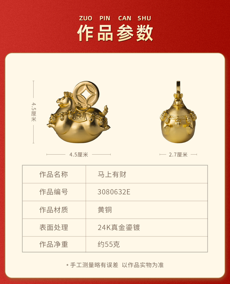 铜师傅《马上有财》客厅桌面铜马摆件 家居装饰工艺品 新年礼物