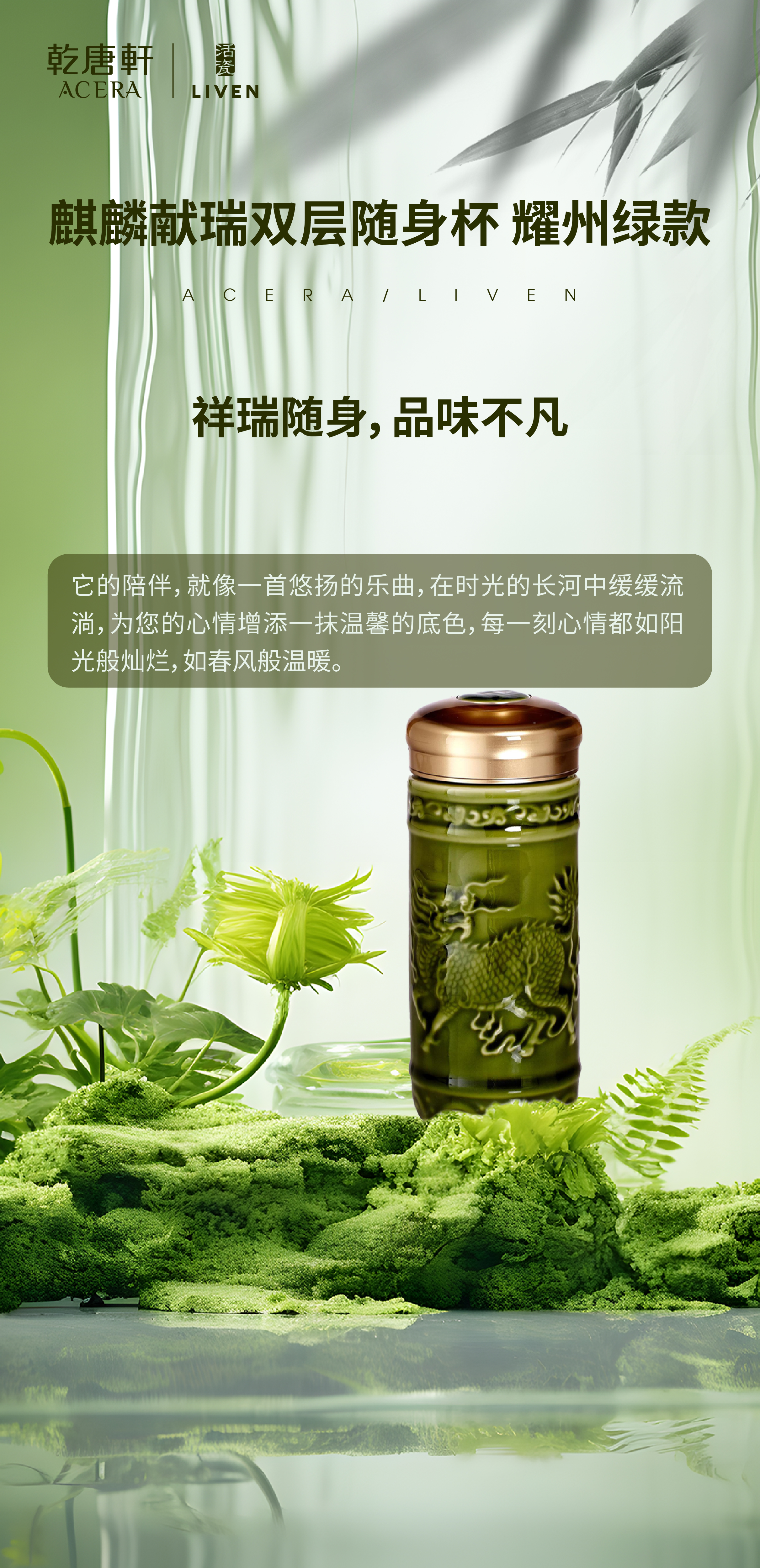 乾唐轩麒麟献瑞双层随身杯 耀州绿款