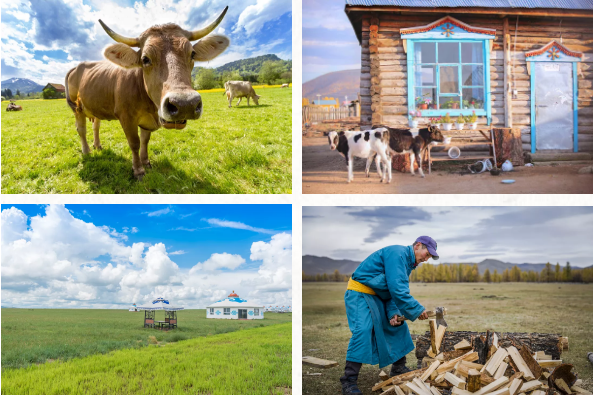 ② 访牧户,穿上蒙古袍,品尝蒙古族奶干、奶酪、酸奶等,喂小羊、挤牛奶、射箭、踢足球等。晚餐。