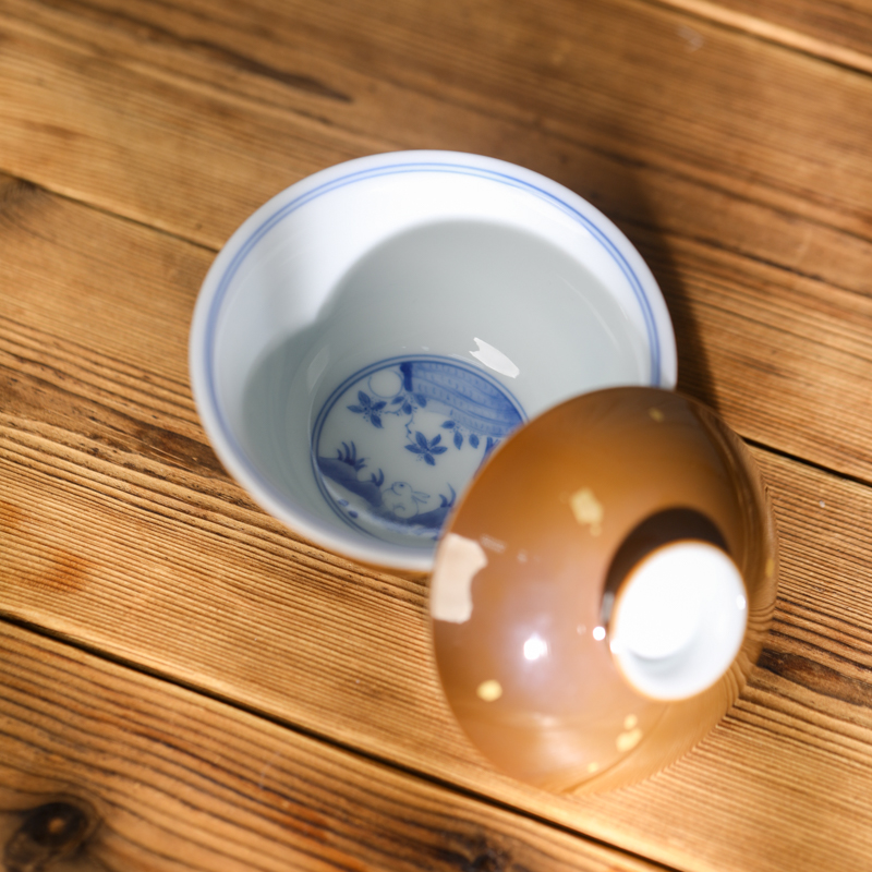 【忘言】 紫金釉青花圆满盖碗 曰何文人器