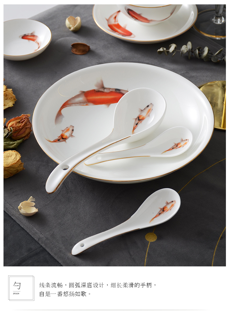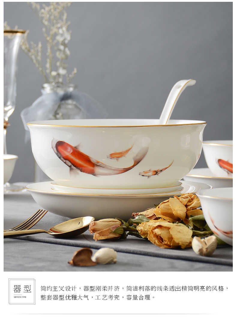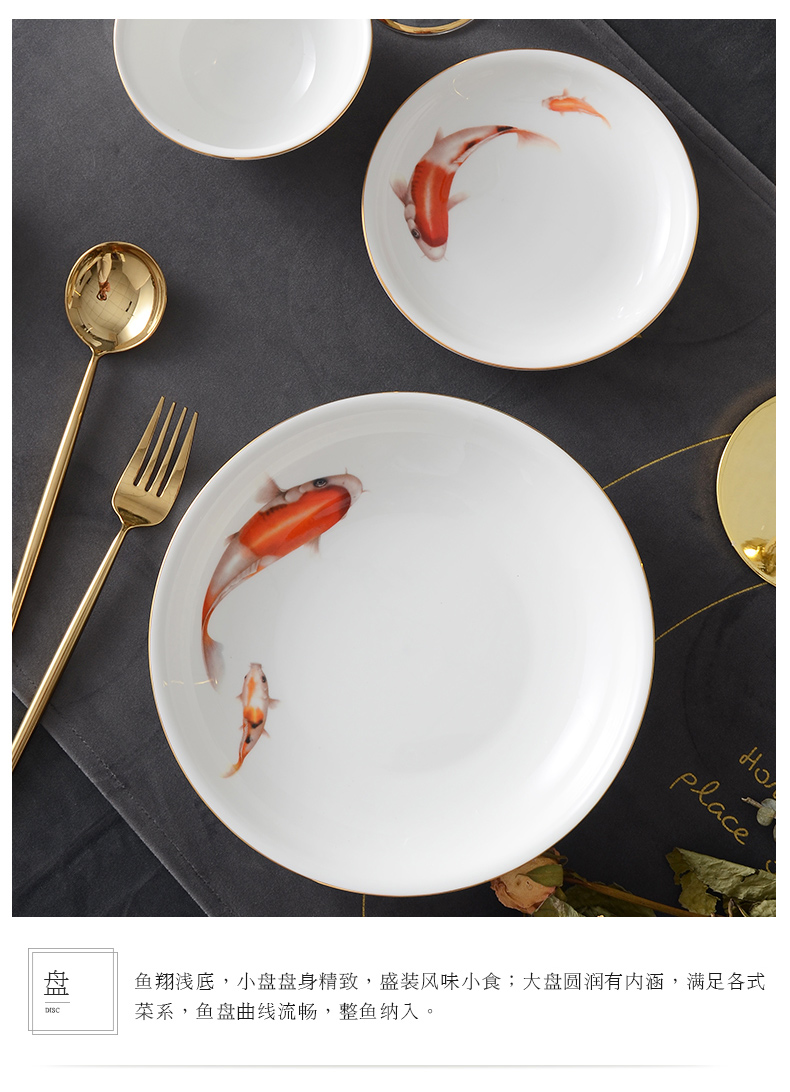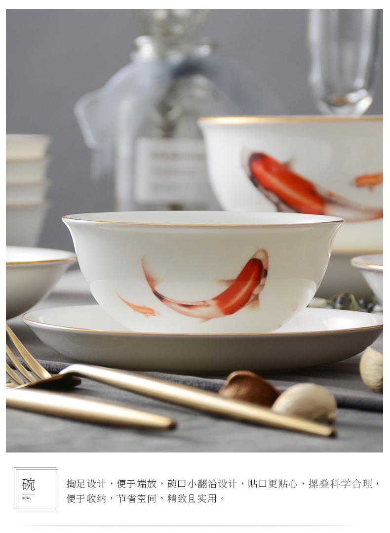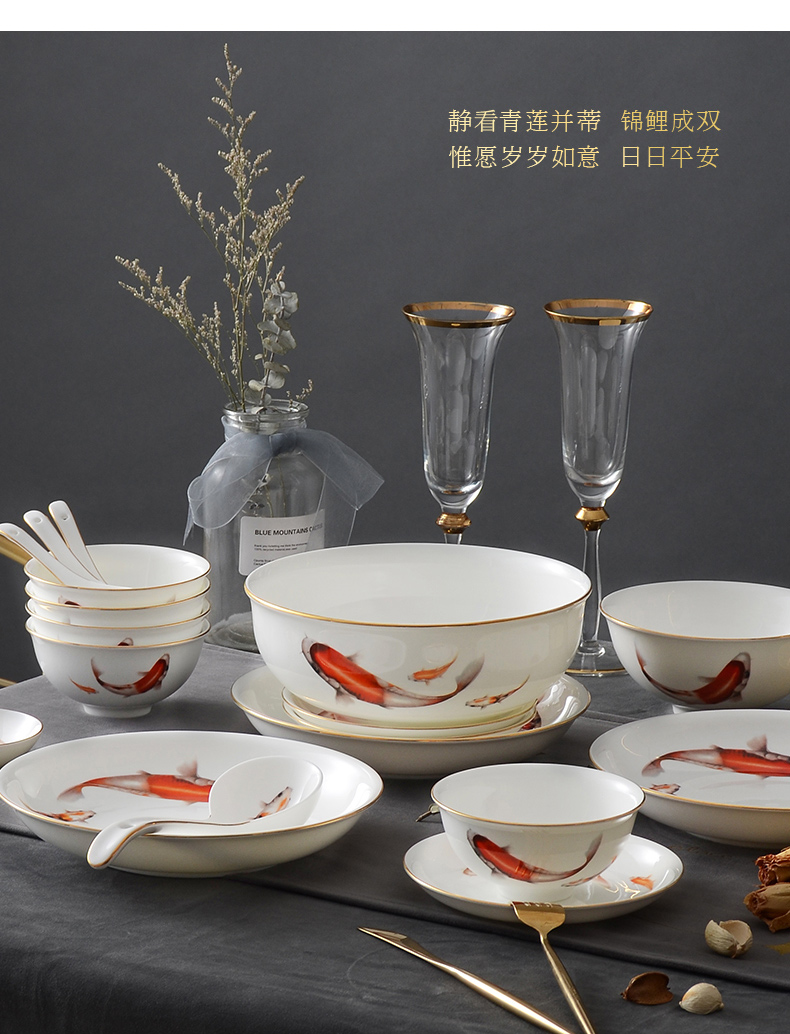 华光国瓷 碗碟套装骨瓷餐具套装家用 高温釉中彩礼盒装 福鱼贺岁