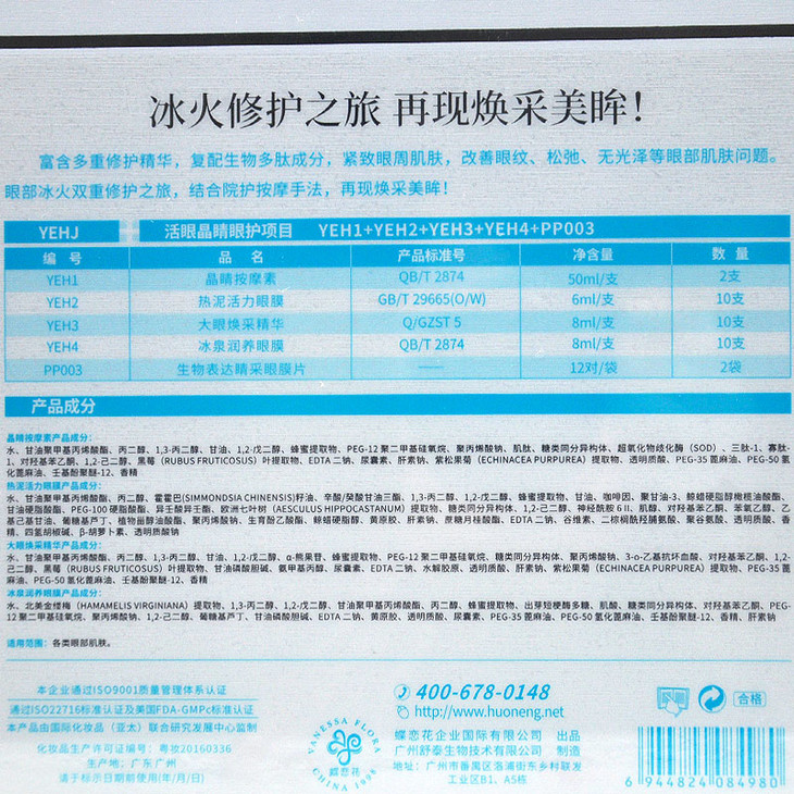 敷膜:热泥活力眼膜 6ml (取适量浸透生物表达睛采眼膜片敷于眼部,停留10-15分钟后用温水清洗干净。)